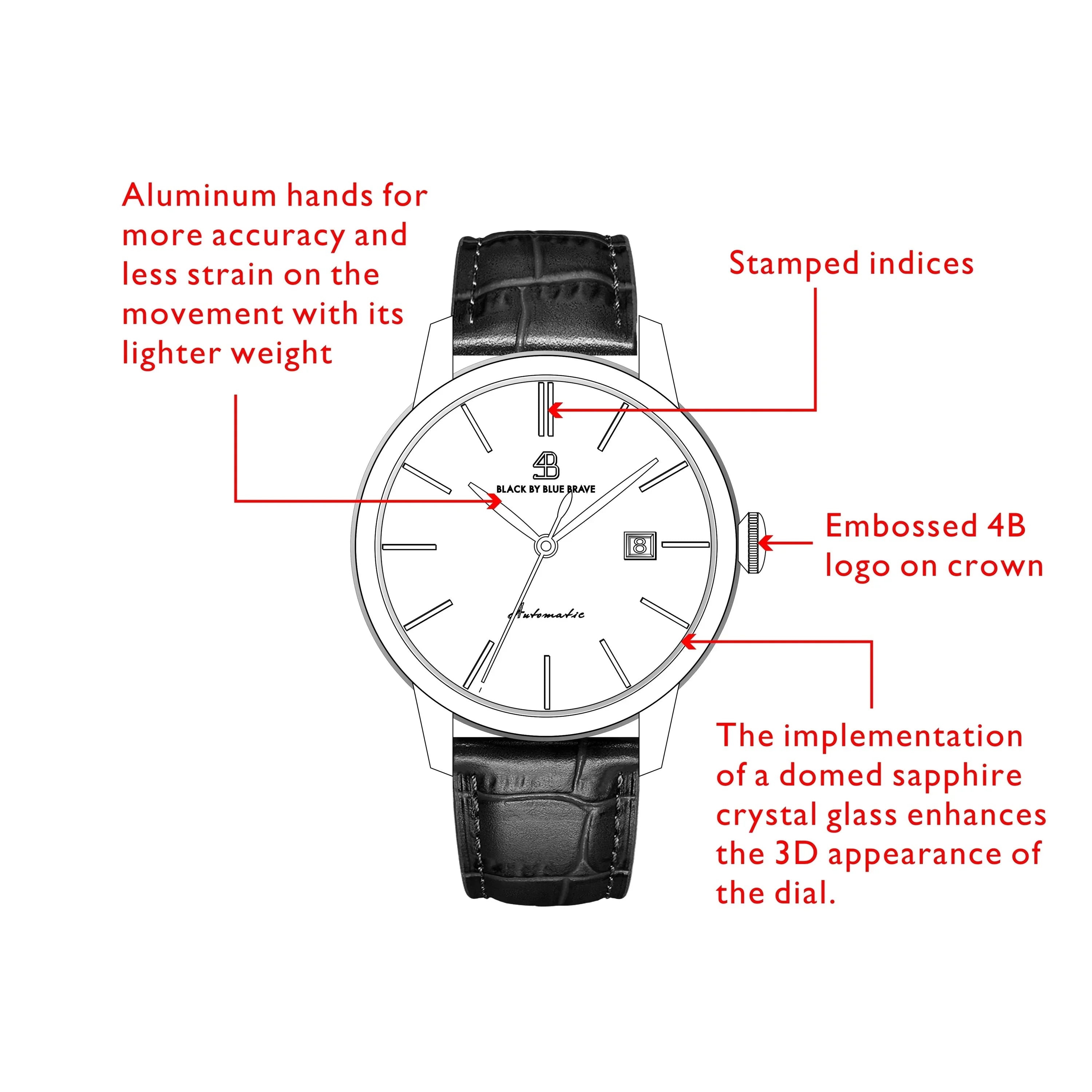 The BLACK BY BLUE BRAVE Classic 1986 Automatic Watch captures the essence of timeless simplicity, inspired by the designer’s birth year. Crafted with a domed sapphire glass and a refined 316L stainless steel case, this 40mm timepiece offers understated elegance and enduring appeal for daily wear.Versatile enough for both formal occasions and everyday moments, the Classic 1986 pairs effortlessly with business attire or casual ensembles. Its classic design complements existing accessories, making it a seamless addition to any watch collection.