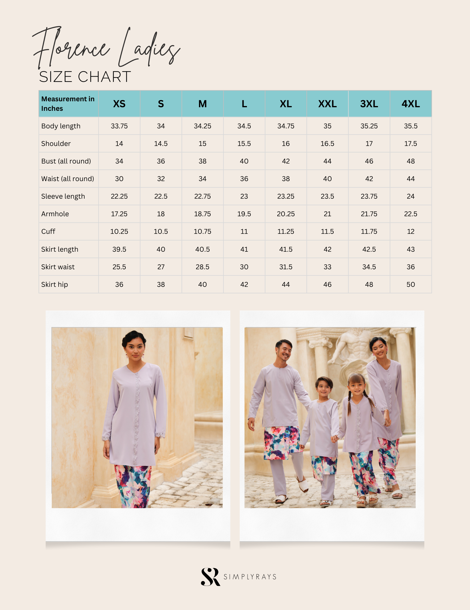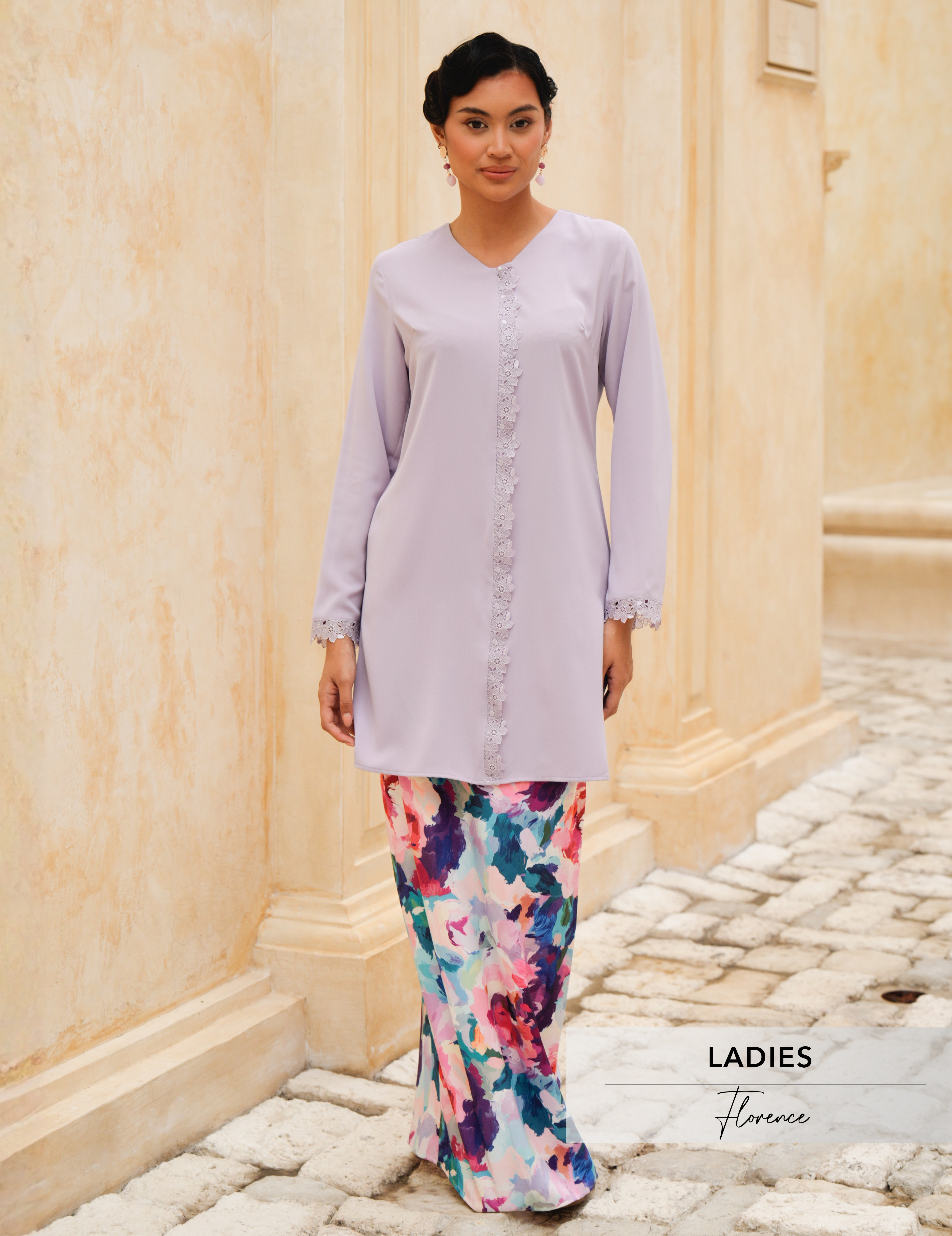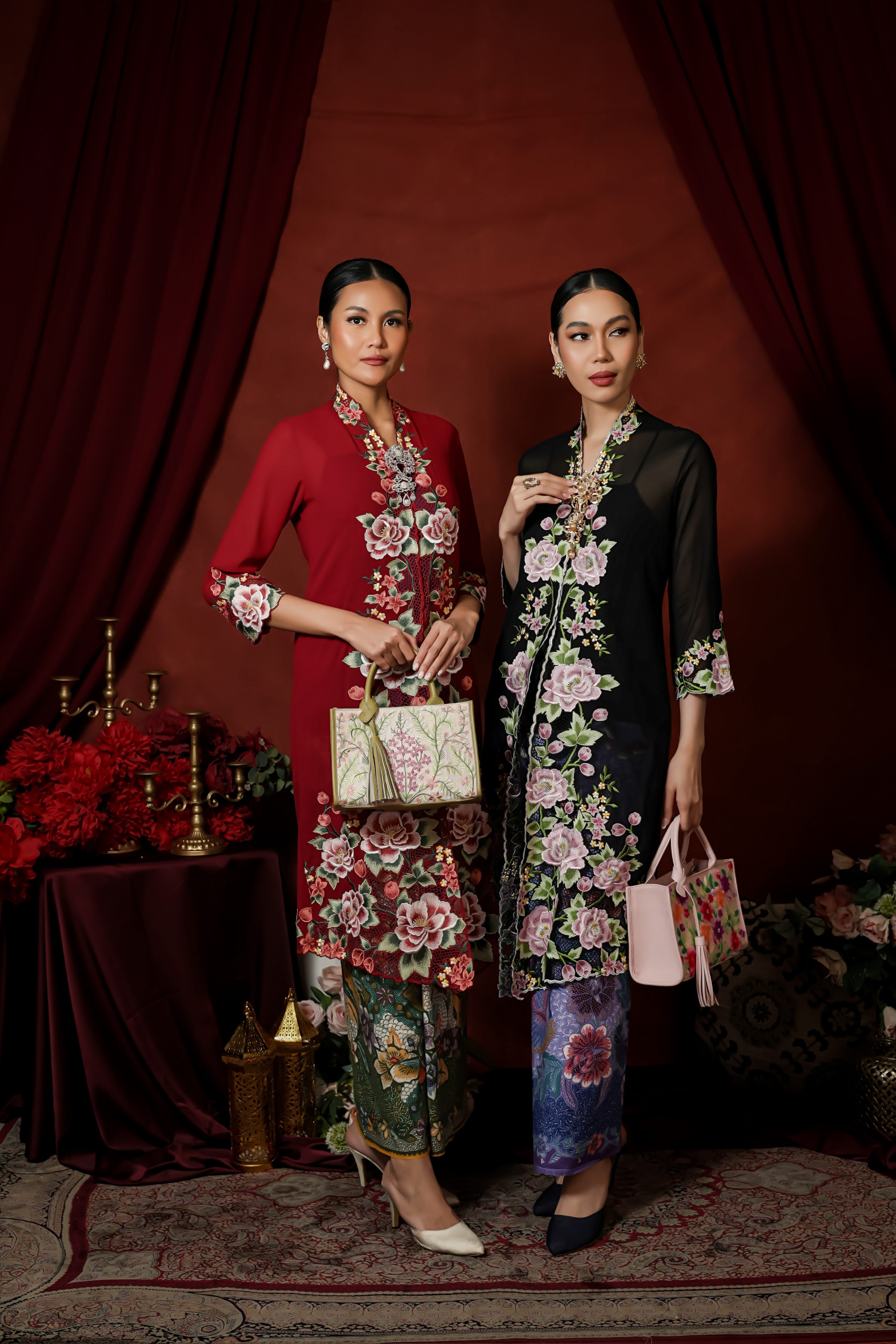 A graceful Amalfi kebaya set defined by intricate prints and a refined, feminine silhouette. Designed for comfort, ease and refined Raya moments.