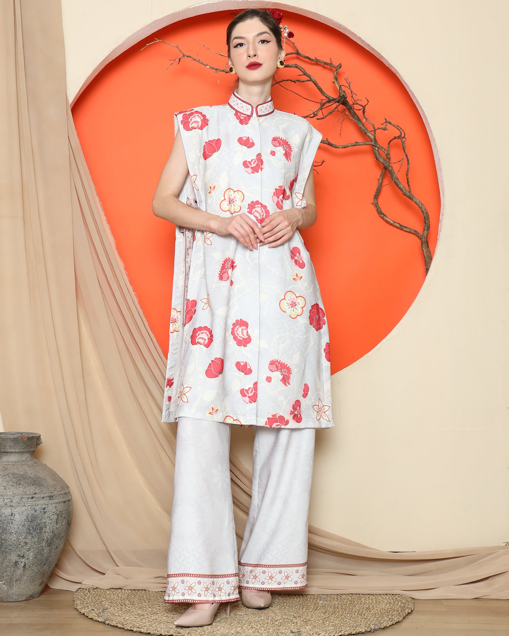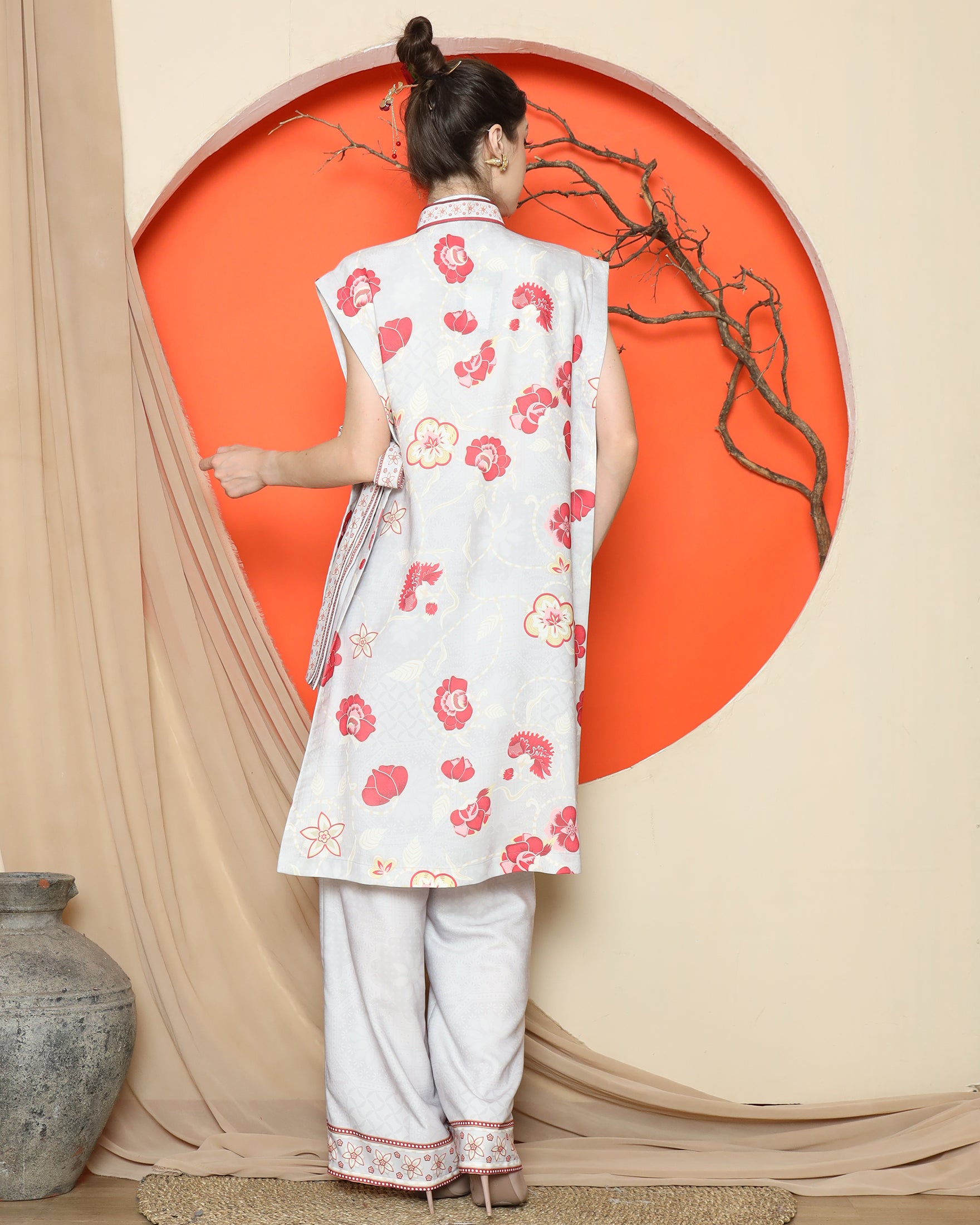 KANZI COLLECTION | Flower Jacquard Kimono Vest