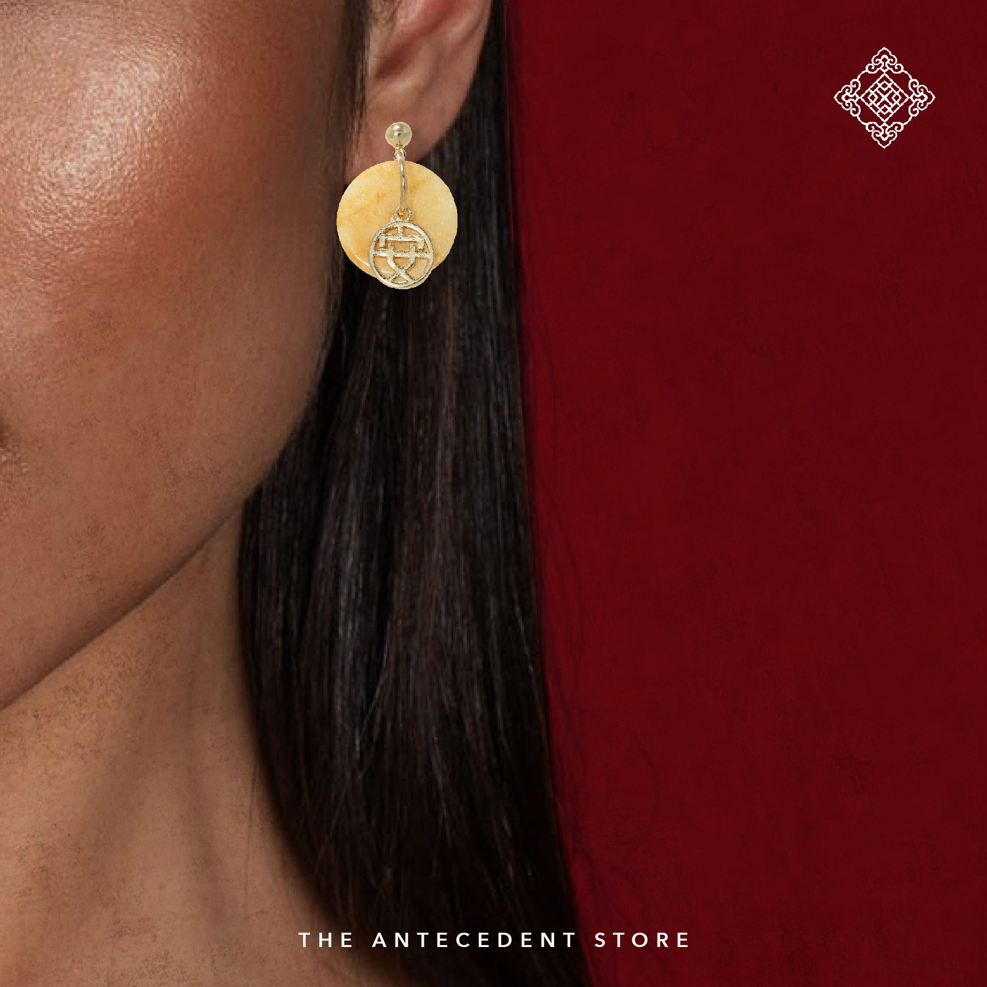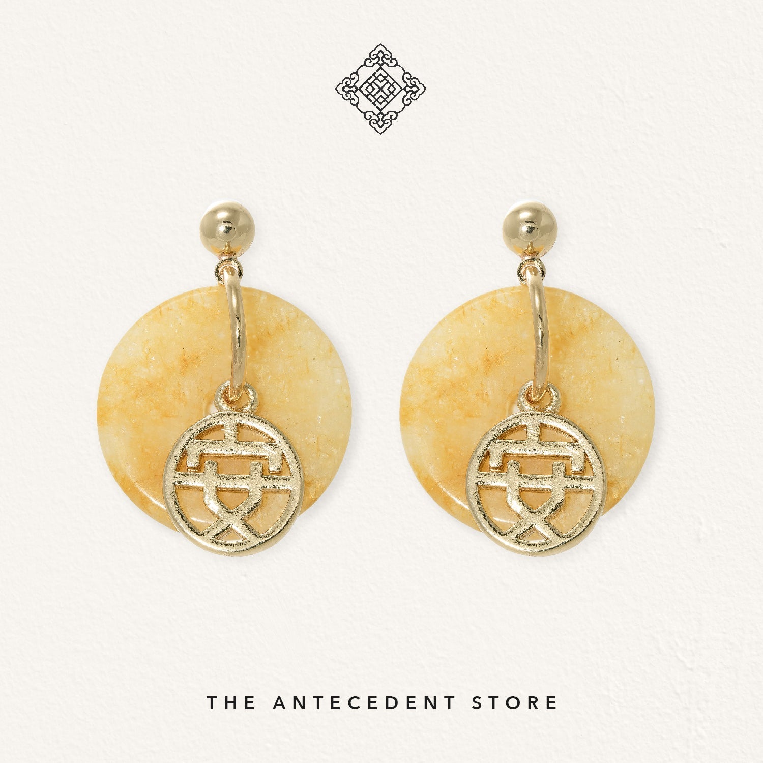 Experience timeless elegance with THE ANTECEDENT STORE 【安】Yellow Topaz Earrings, crafted in 14K real gold plating. The earrings feature a 平安扣-shaped yellow topaz, a symbol of security and prosperity, inspired by the auspicious character "安" for peace and safety.These earrings transition effortlessly from day to evening, adding a refined touch to both casual and formal ensembles. Their classic design complements a variety of jewellery collections, making them a versatile addition to your accessories.