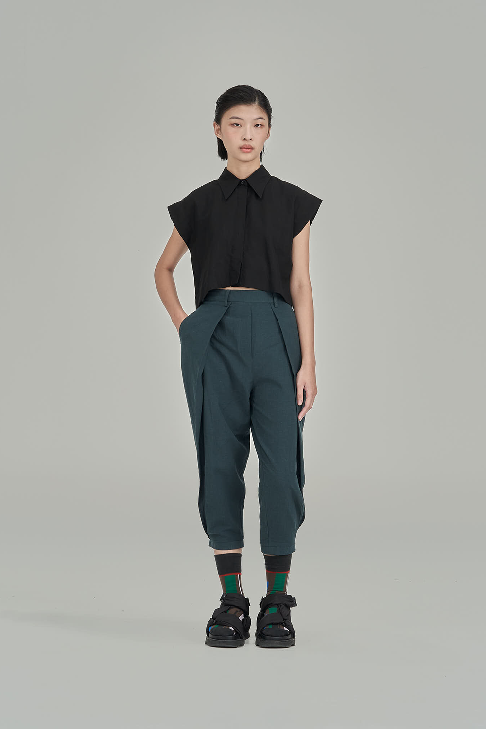 The SABRINAGOH Ayla Crop Shirt is a contemporary statement piece, inspired by the Kebaya Reimagined Runway Showcase. Crafted from a blend of eco-friendly TENCEL and linen, its cropped silhouette offers a modern twist on classic elegance while ensuring comfort and breathability.Effortlessly versatile, the Ayla Crop Shirt transitions from casual daywear to sophisticated evening looks. Pair it with high-waisted trousers or skirts for a polished ensemble, or layer over your favourite basics for a relaxed yet refined style.