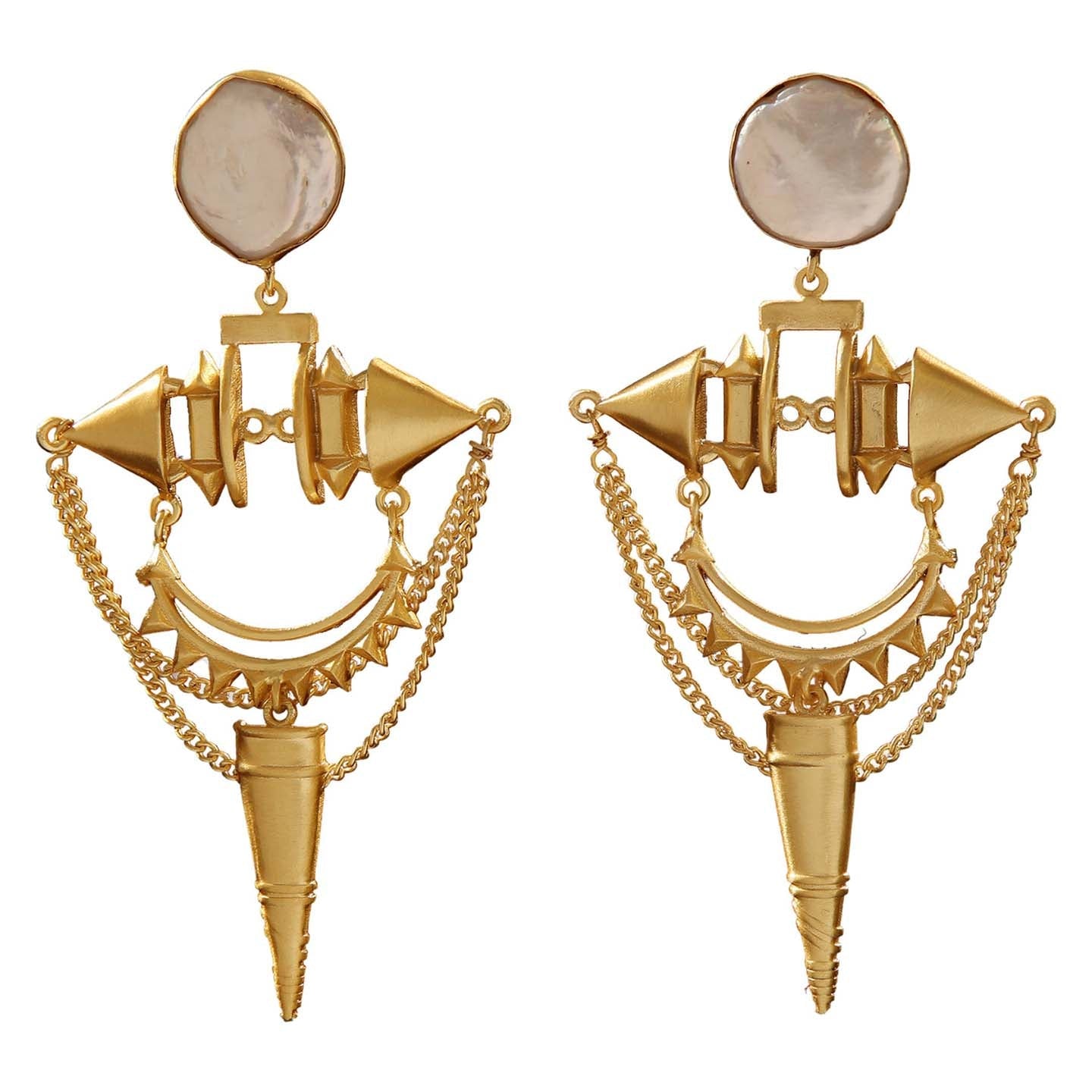 Tesvo Earrings – Warrior-Inspired Artistry in Recycled Gold-Plated Brass