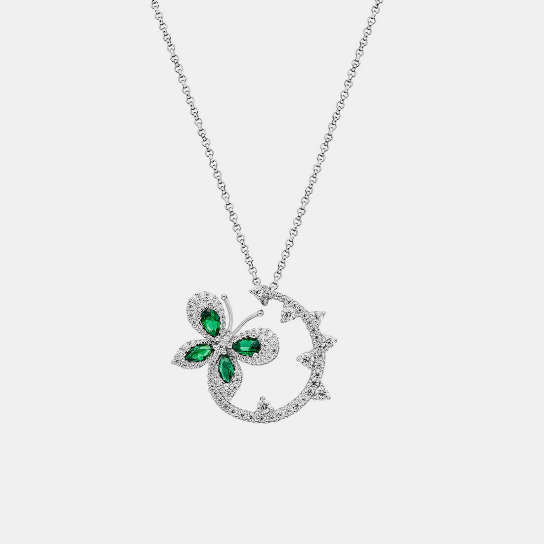 Classic Emerald Butterfly Necklace – Timeless Charm in Sterling Silver and Zirconia
