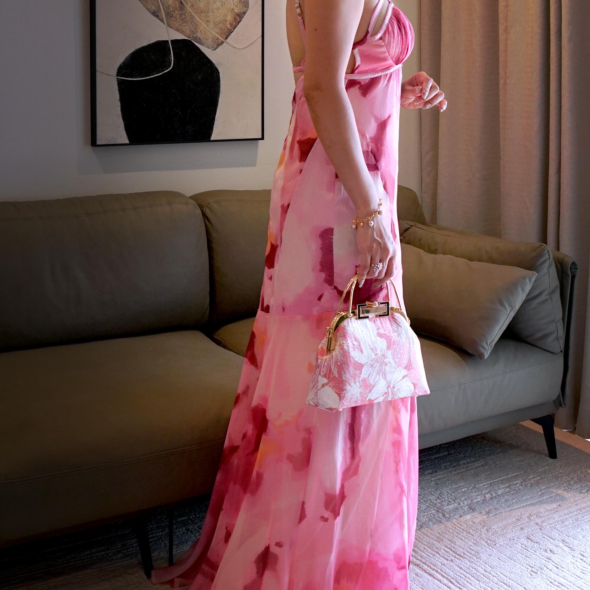 Elevate your accessory collection with the Clasp Crossbody Bag - Gold Lily(PK) by COCOONESE, a refined piece distinguished by its elegant jacquard textile and signature gold tag. The structured silhouette and shimmering finish offer a sophisticated touch, making it a standout for both day and evening occasions.Versatile in design, this bag can be styled as a chic handheld piece using the short metal handle or worn crossbody with the detachable chain strap. Its ideal size and interior pocket make it perfect for carrying daily essentials, seamlessly complementing both casual and formal outfits.