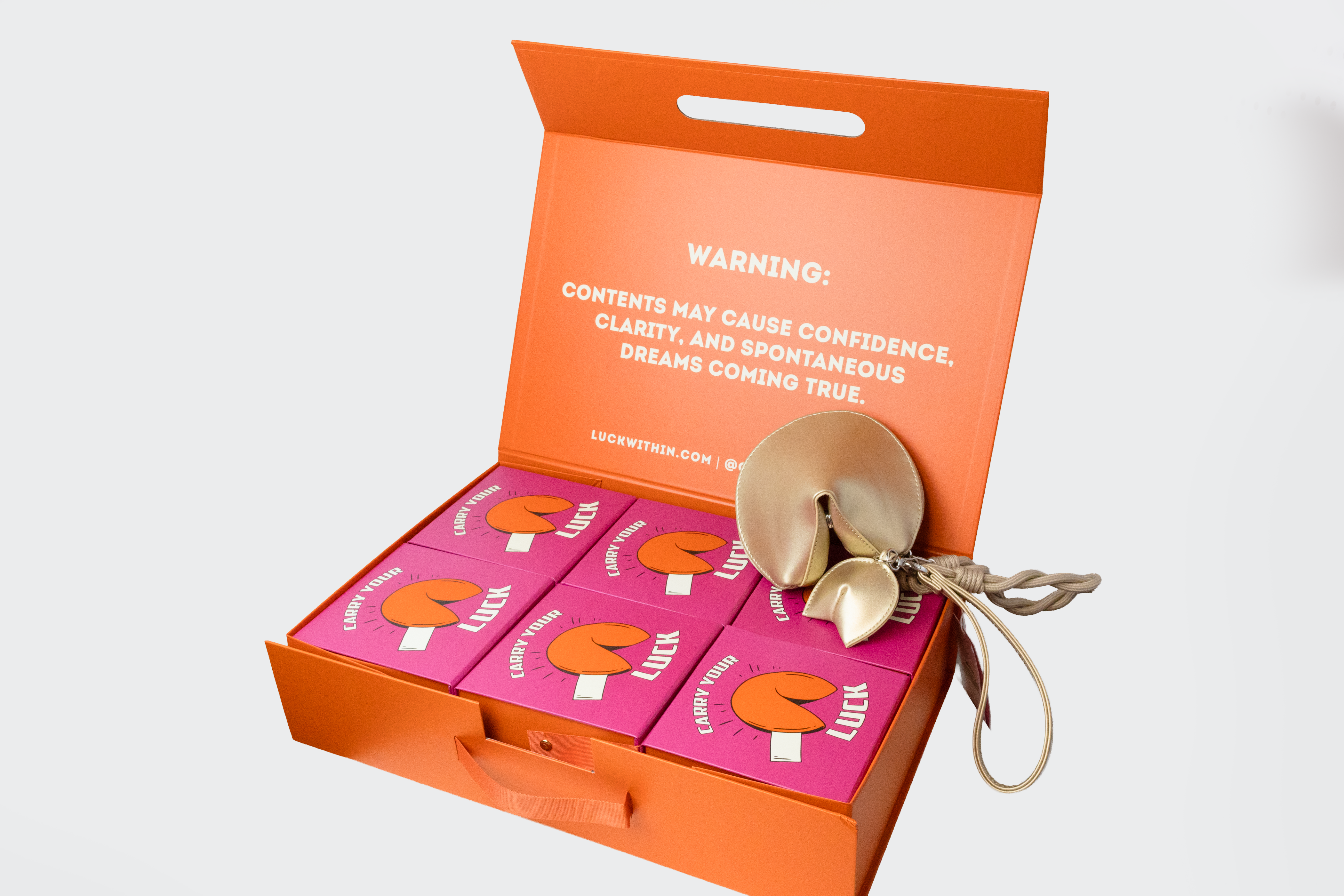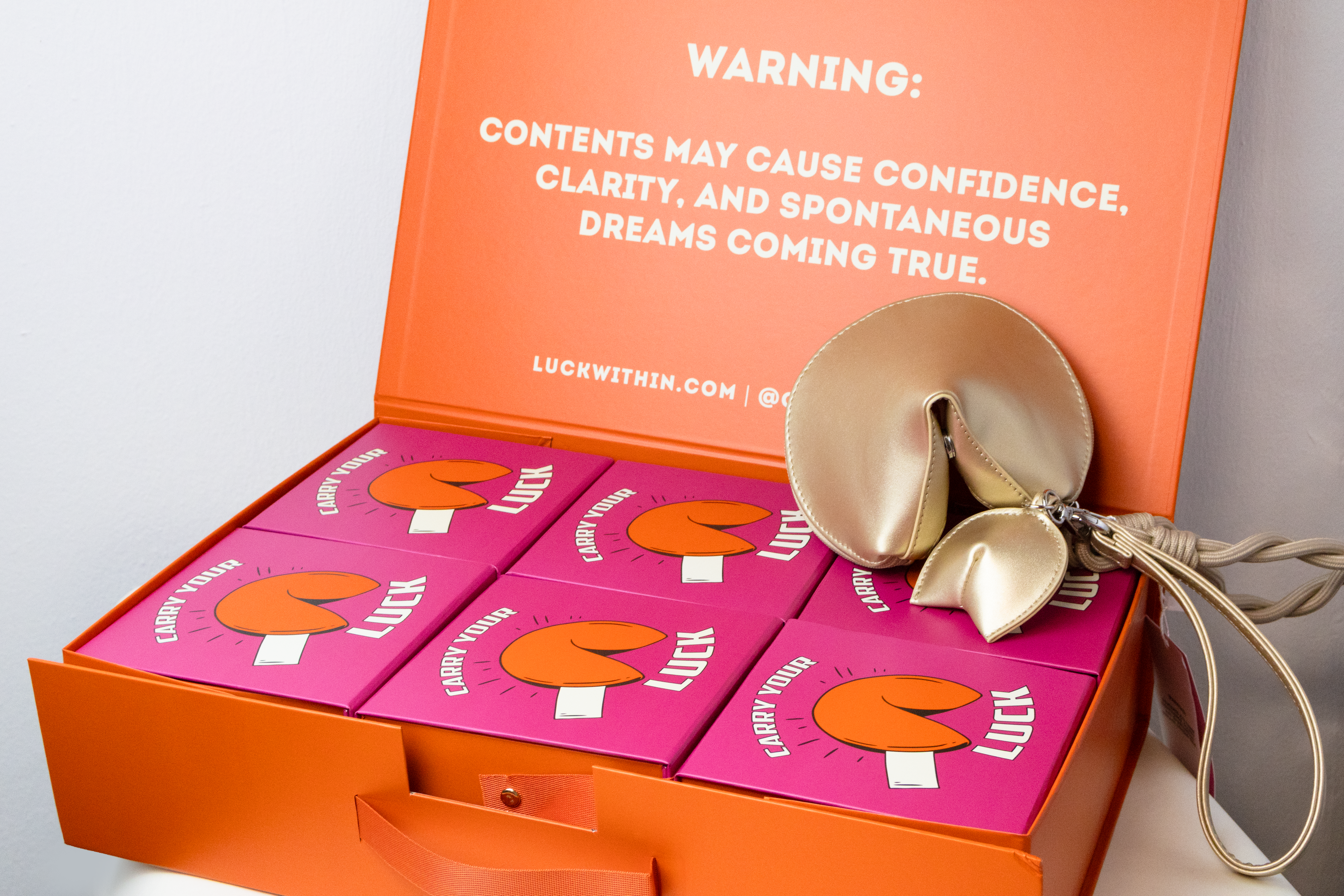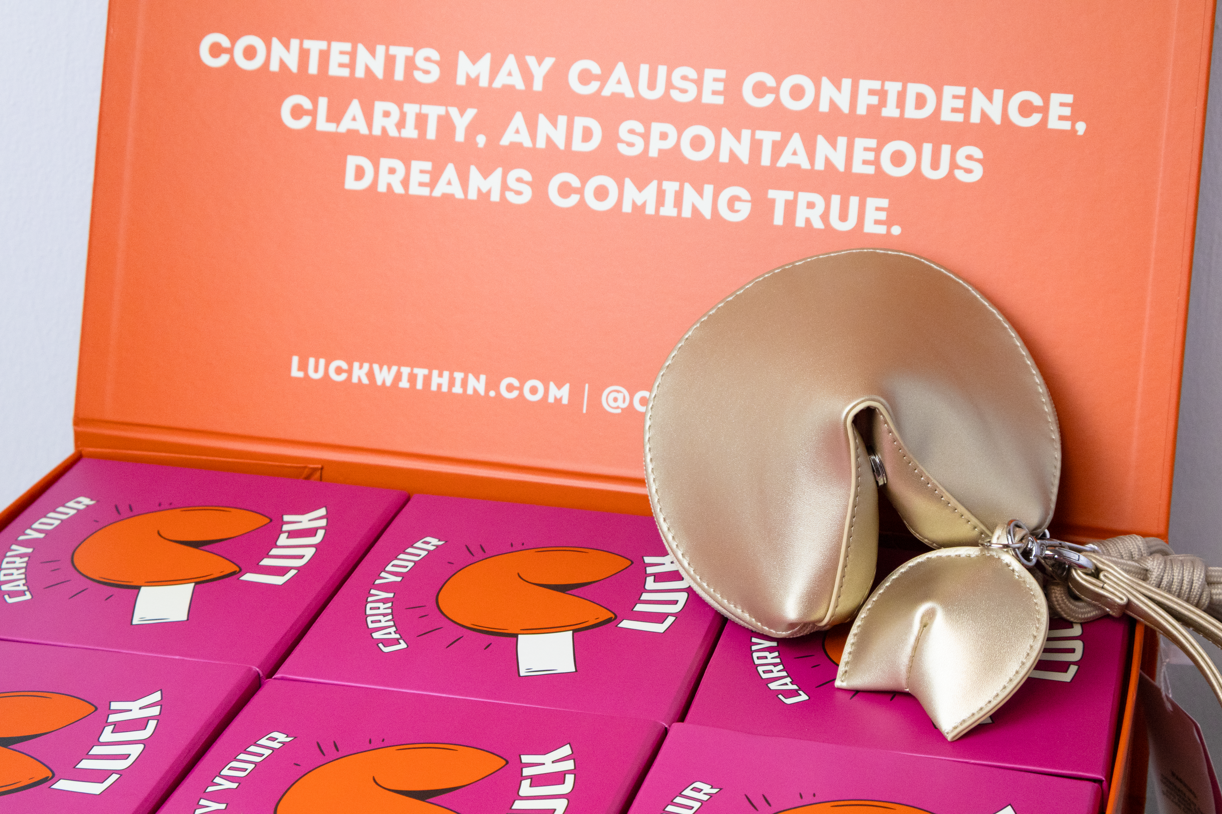Bonus: Gold bag includes a mini fortune cookie keychain