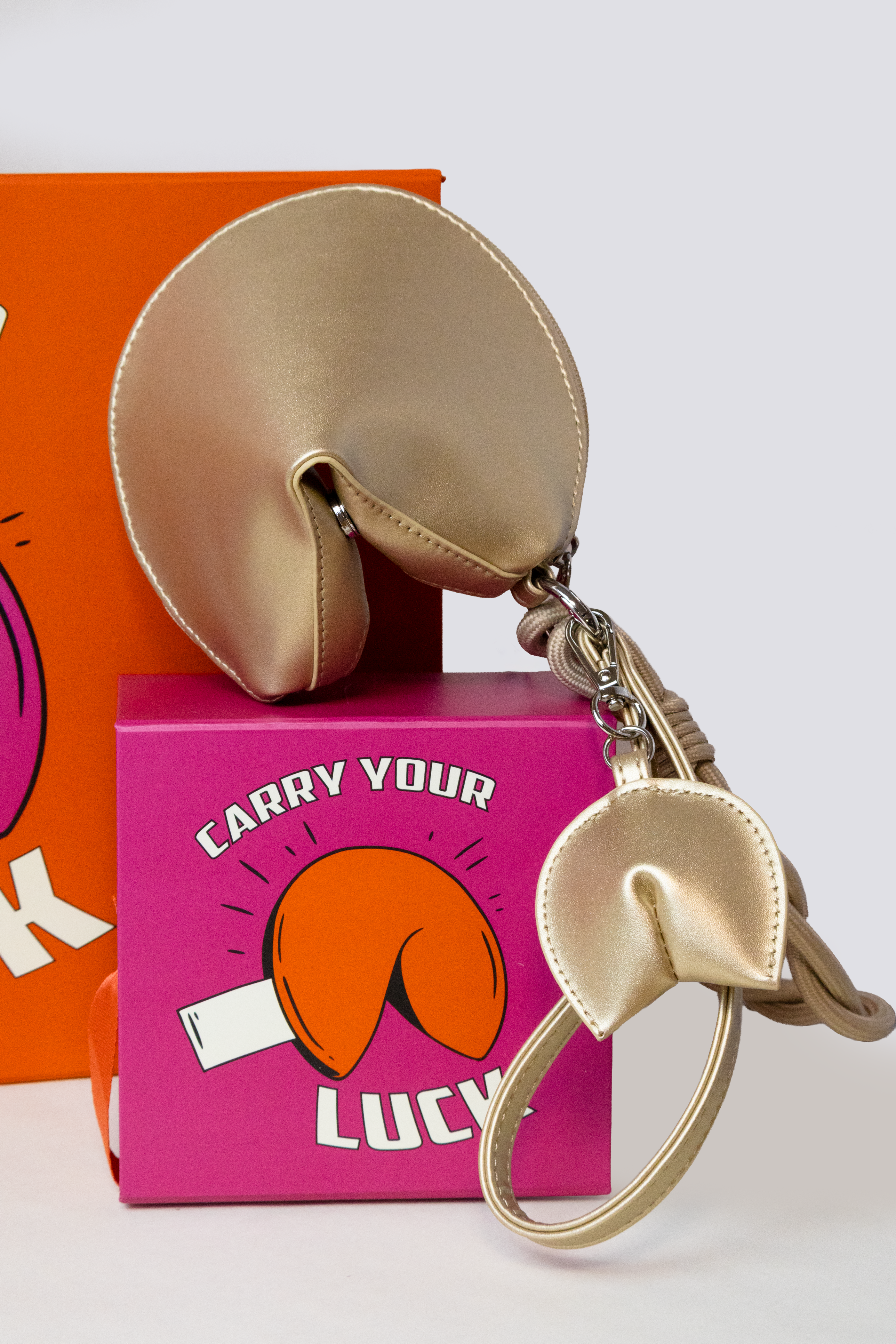 Add a playful touch of positivity to your day with the Golden Mini Fortune Bag by DUXTON, designed in a vibrant fortune cookie silhouette. Each bag conceals one of 22 empowering mantras, blending bold style with a daily reminder of confidence and luck.Perfect for carrying coins, sunglasses, or small essentials, this mini bag transitions effortlessly from a cheerful accessory to a thoughtful gift or lucky charm. Its compact size and detachable wrist straps make it easy to pair with your favourite outfits or display as a unique keepsake.