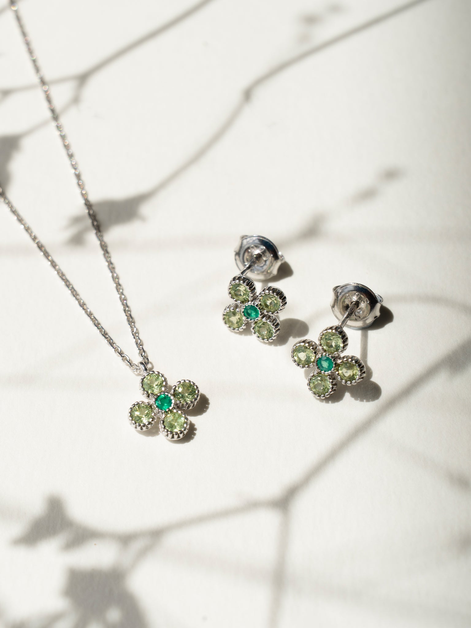 Gem Bloom Studs With Peridot – Delicate Florals in Lustrous Sterling Silver