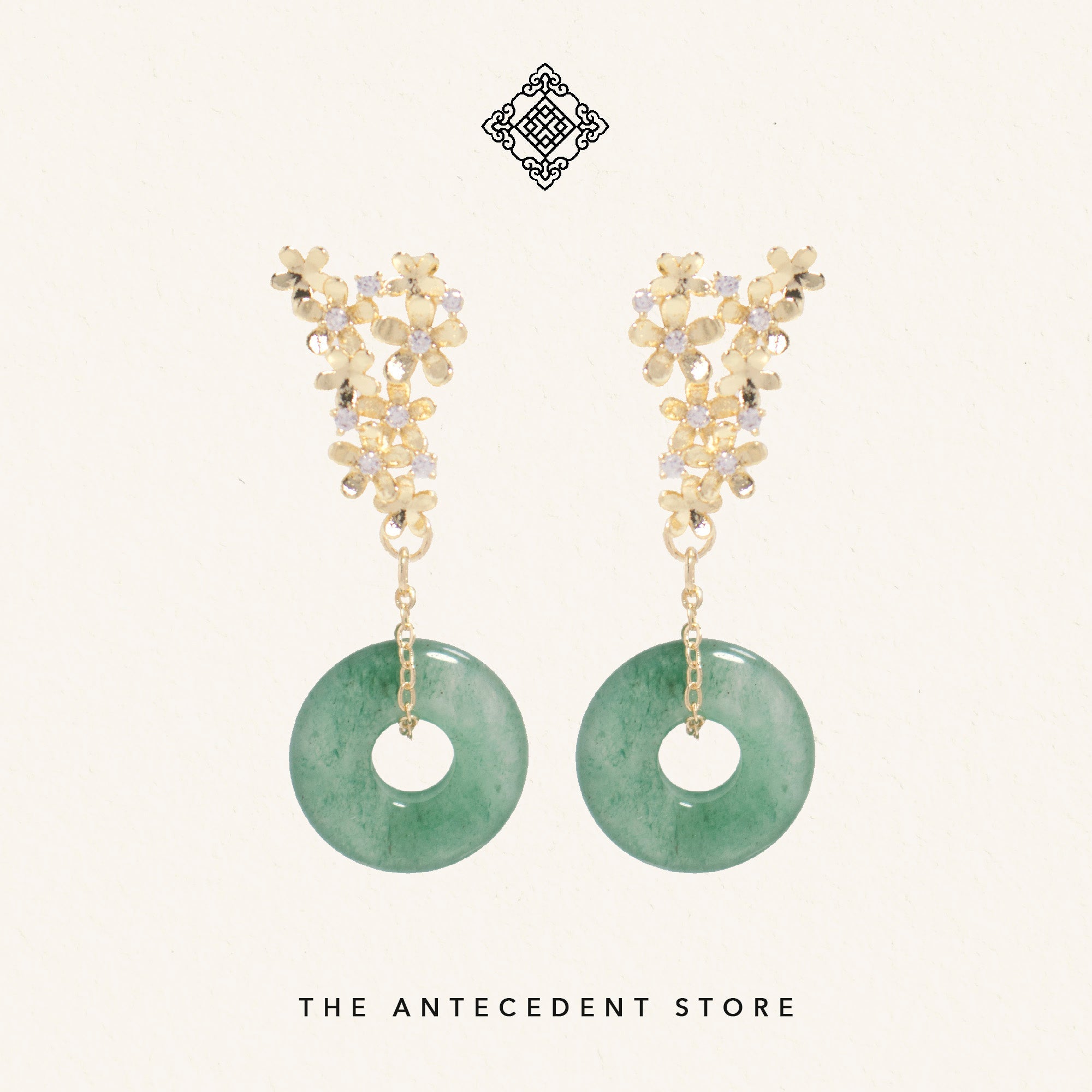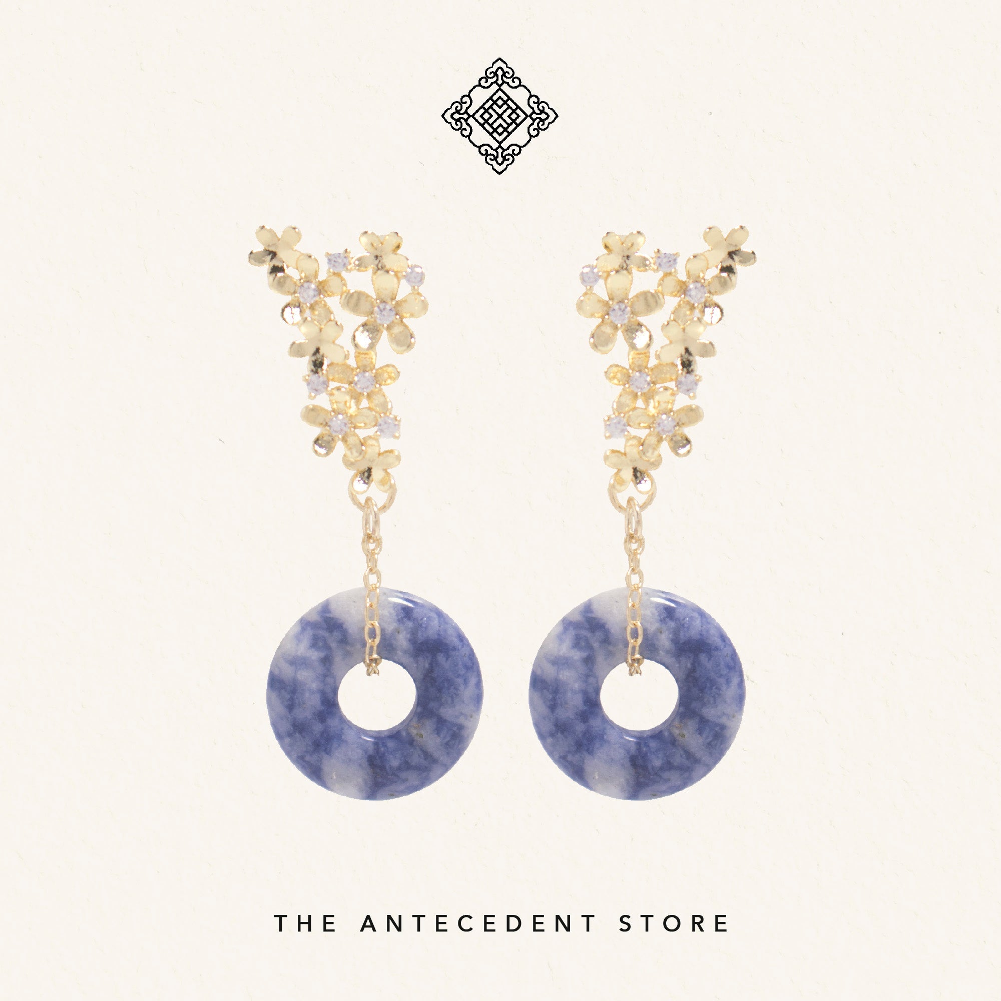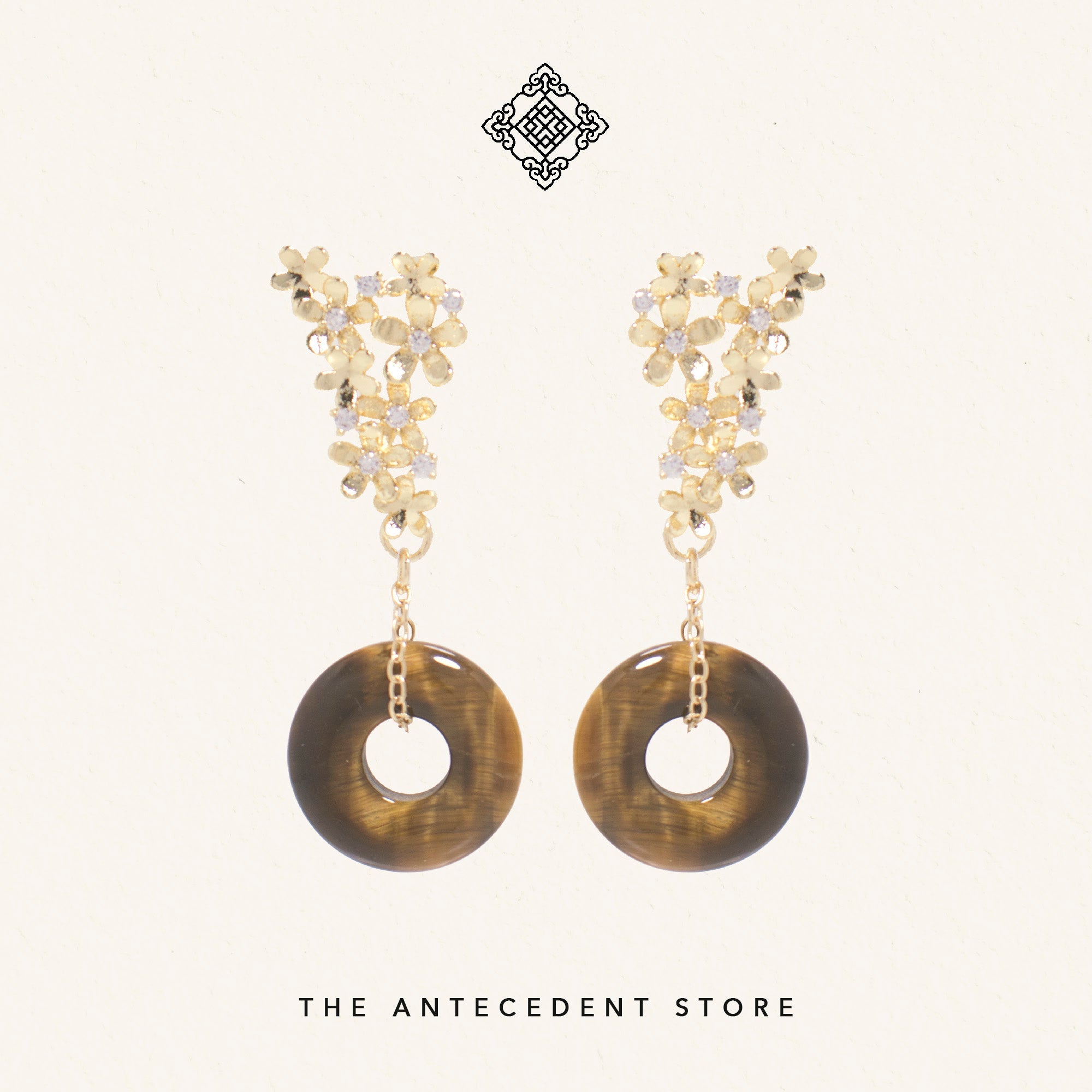 Celebrate timeless elegance with THE ANTECEDENT STORE Floral Donut Earrings, featuring the iconic round 平安扣 crystal shape that symbolises abundance, safety, and peace. Each pair is meticulously crafted, blending traditional symbolism with contemporary style for a refined statement.Versatile and meaningful, these earrings are available in green aventurine, blue sodalite, and brown tiger’s eye crystal, making them a thoughtful gift or a sophisticated accent for both everyday wear and special occasions. Their classic design complements a wide range of jewellery collections.