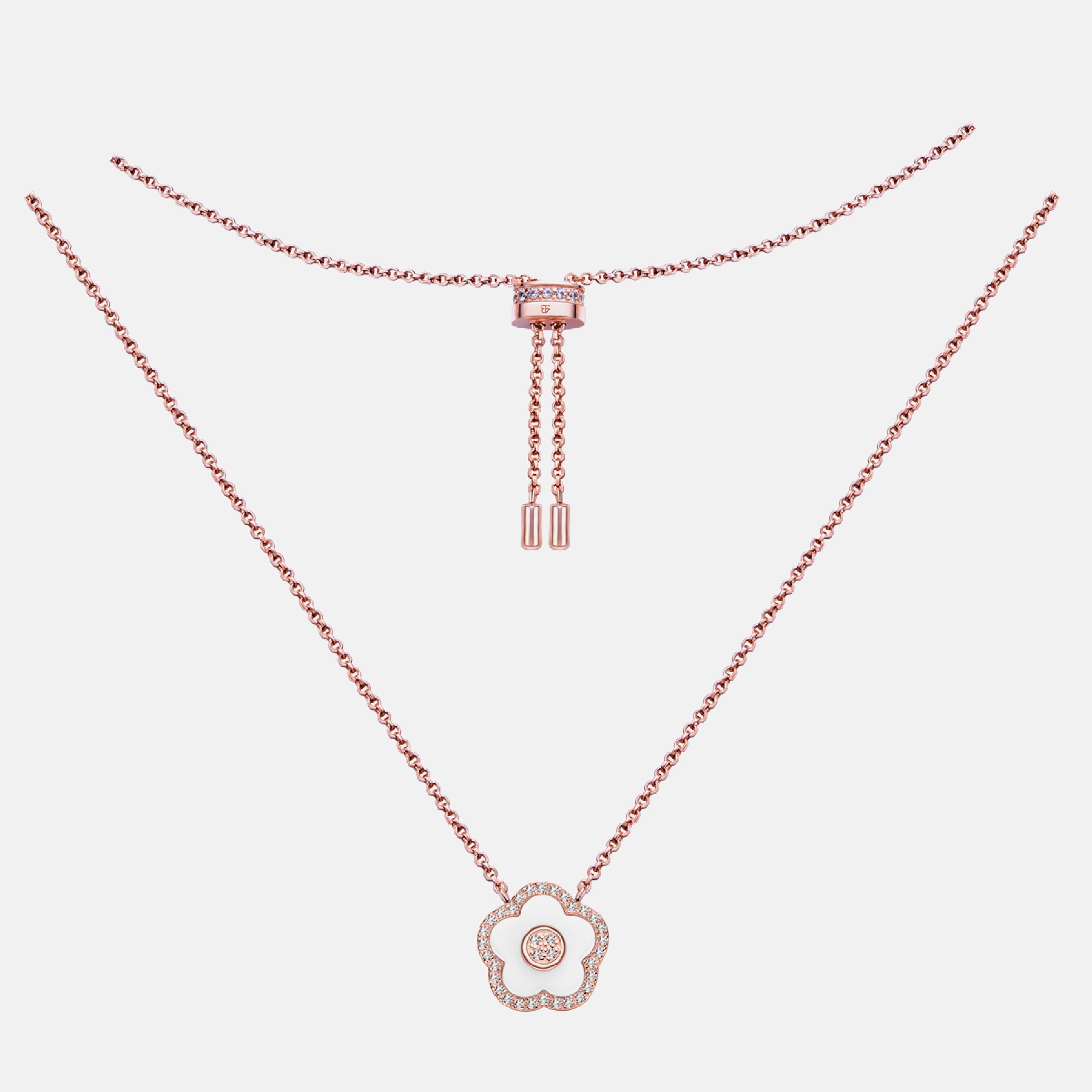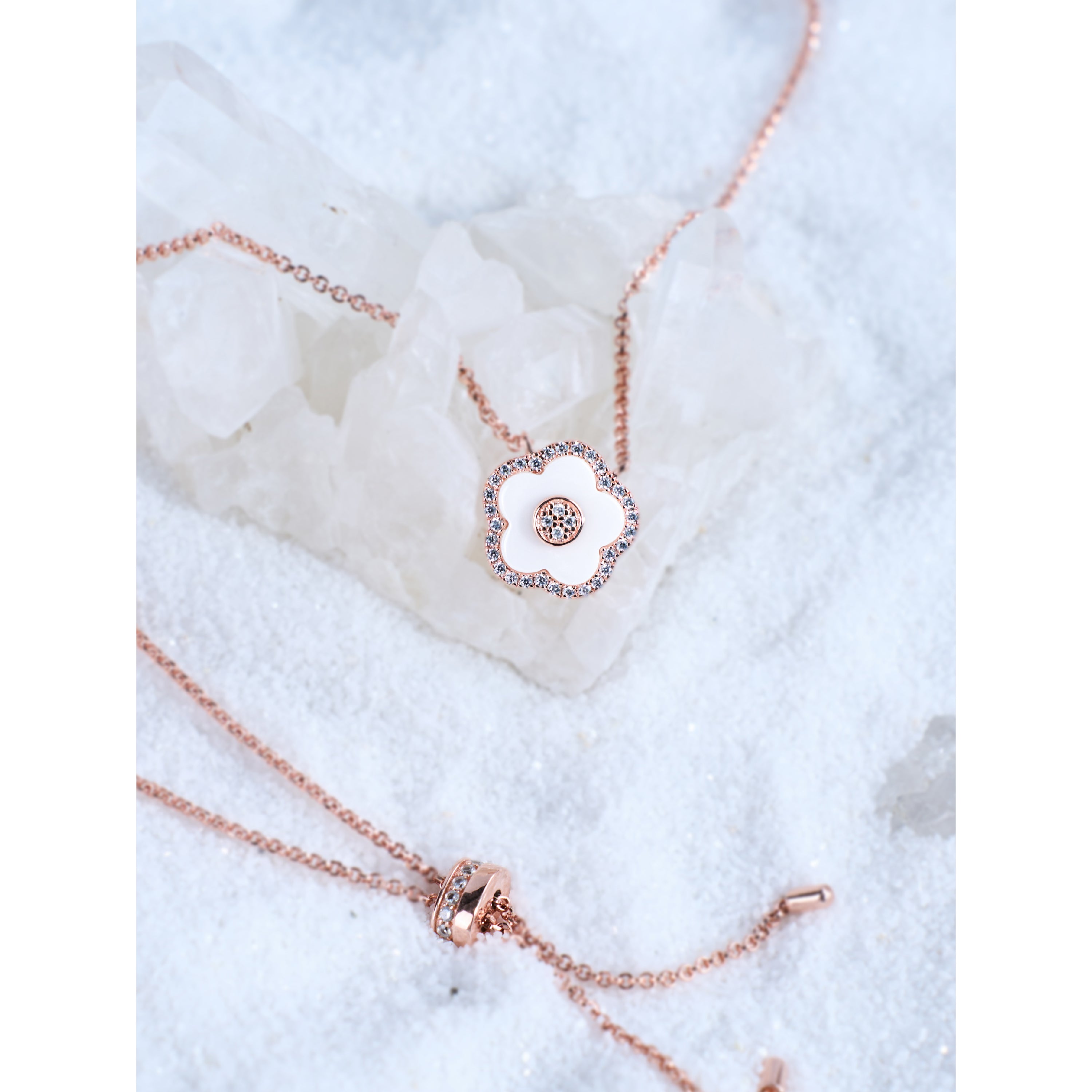 BLACK BY BLUE BRAVE | Classic Flower Necklace Brass 18k Rosegold Plating & White Ceramic 420-650mm With Sliding Clasp