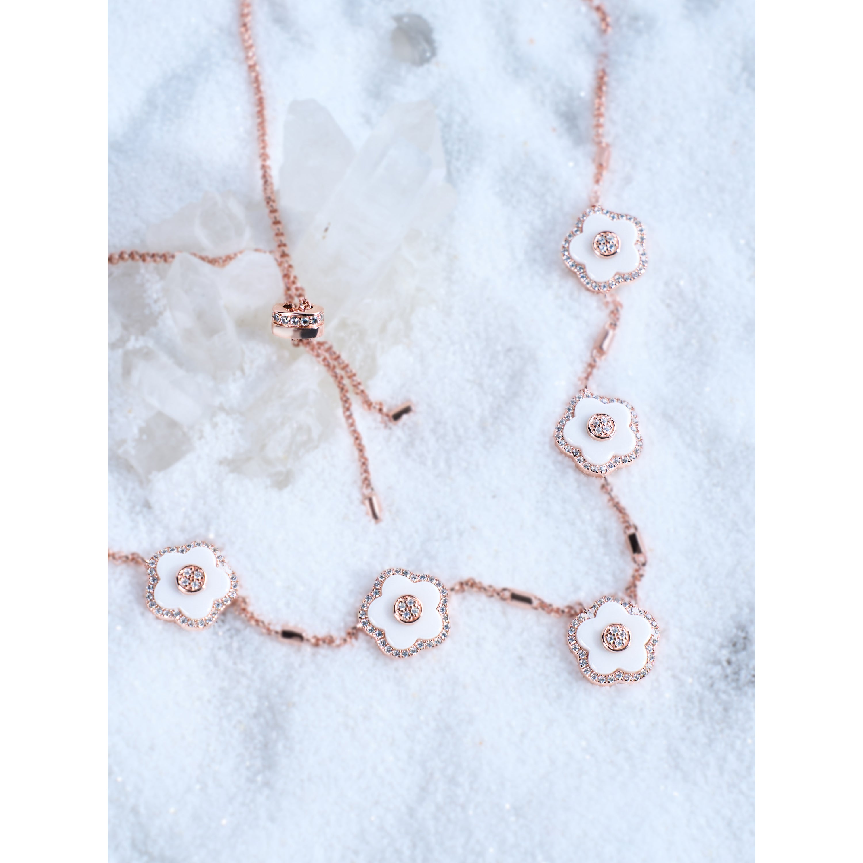 BLACK BY BLUE BRAVE | Classic Flower Necklace Brass 18k Rosegold Plating & White Ceramic 420-650mm With Sliding Clasp
