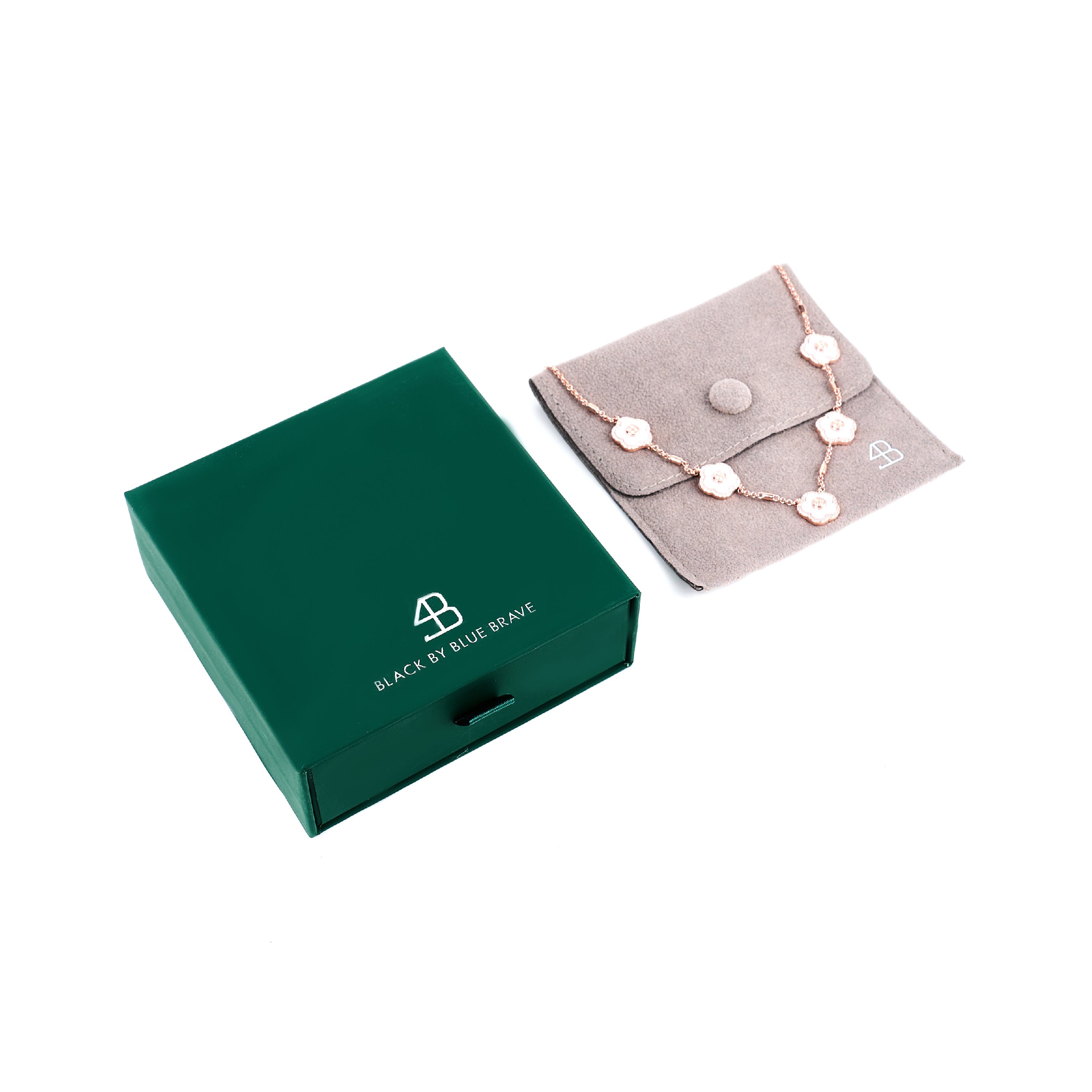 Elevate your style with the Classic Flower Necklace from BLACK BY BLUE BRAVE, featuring a refined blend of 18k rose gold-plated brass and luminous white ceramic. The sliding clasp design allows for effortless adjustment, offering both versatility and a touch of modern elegance.This necklace transitions seamlessly from day to night, making it a sophisticated accent for both casual ensembles and formal attire. Its timeless floral motif complements a variety of jewellery pieces you already own, enhancing your personal collection.