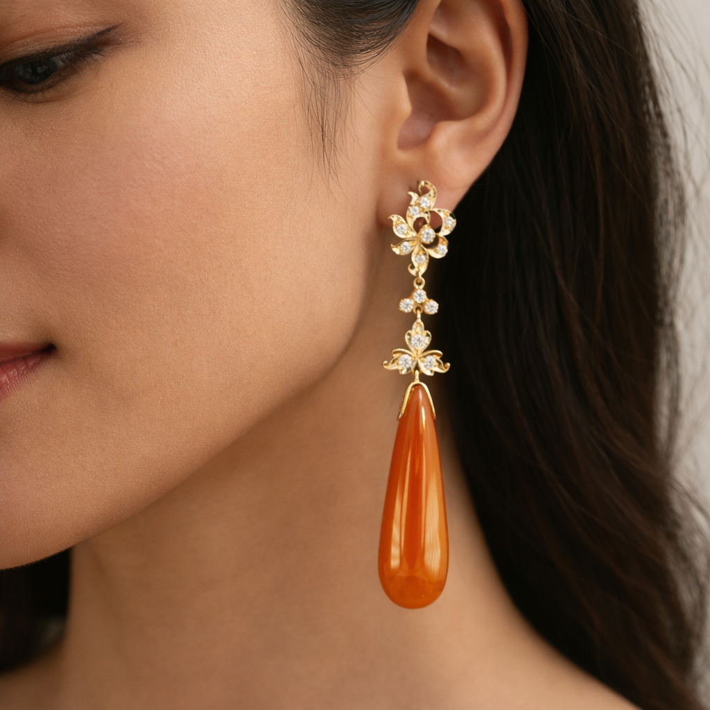Peranakan Diamond & Brown Jade Flower Earrings – Timeless Heritage with Luxurious Sparkle