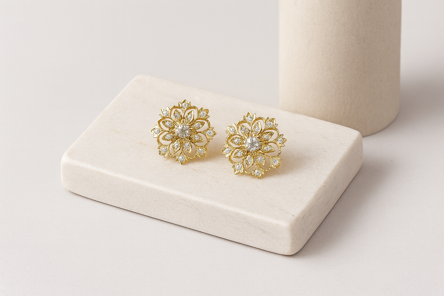 750 Y/G Peranakan Natural Diamond Ear Stud "Flower" – Heritage Craftsmanship Shines with Timeless Sparkle