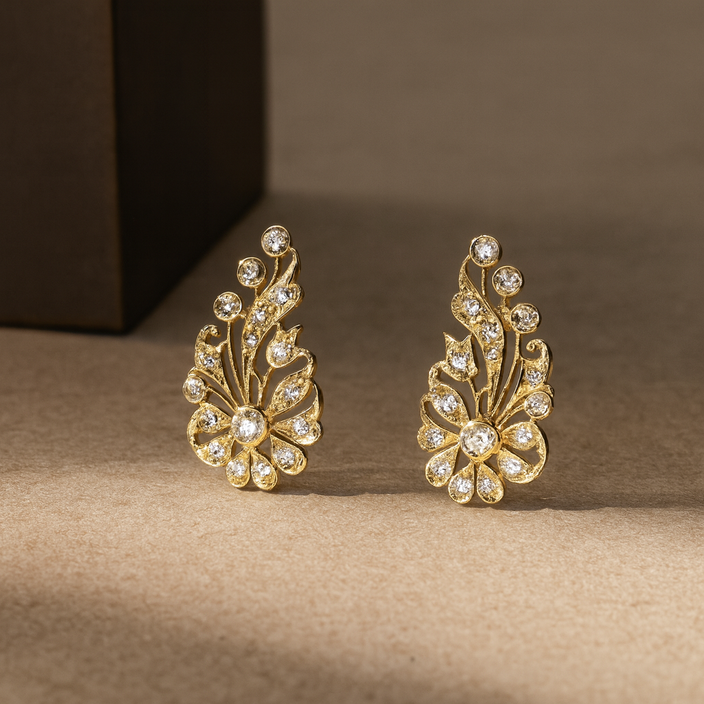 FOUNDATION JEWELLERS | 750 Y/G Peranakan Natural Diamond Ear Stud "Flower" 7.61gm D34-1.04ct