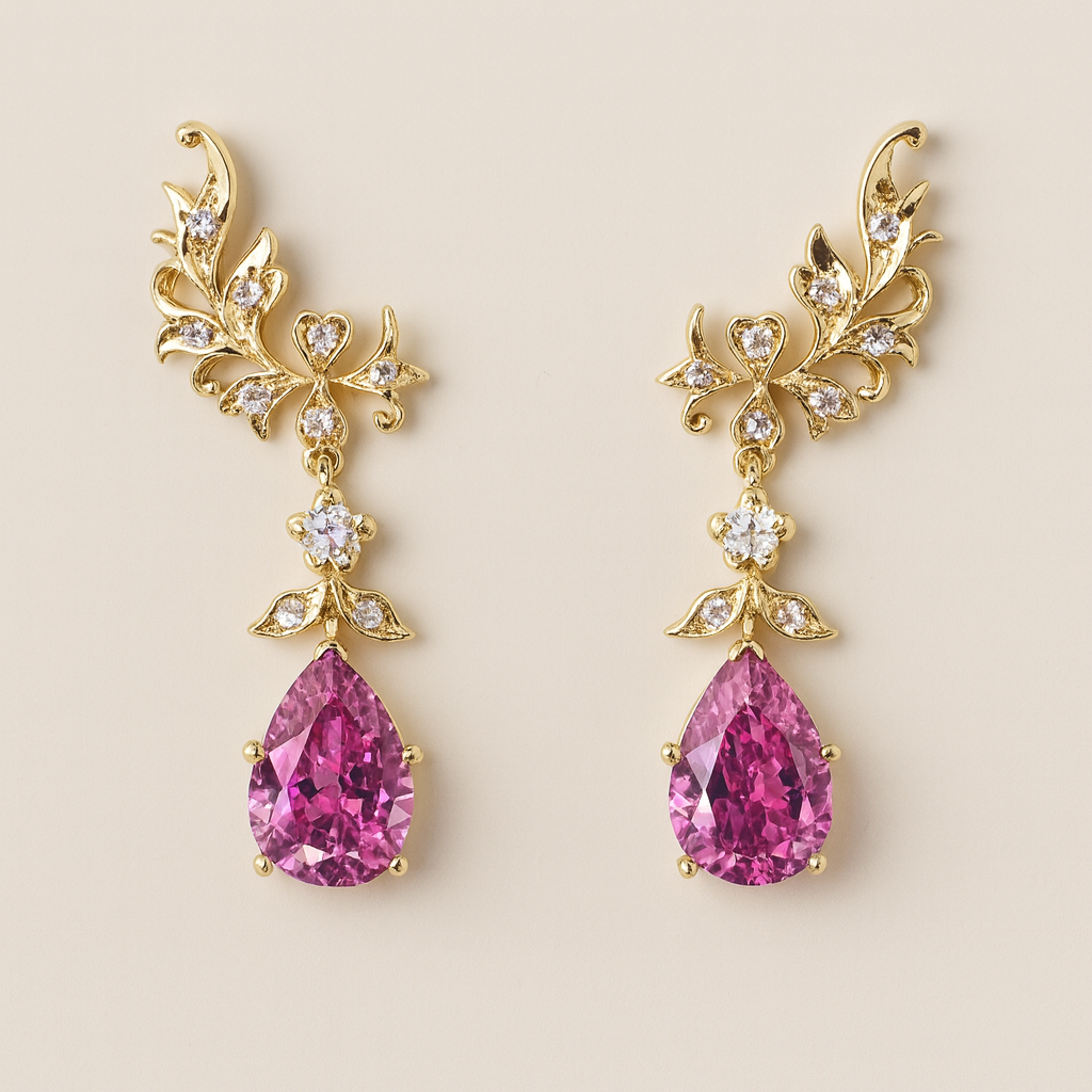 750 Y/G Peranakan Natural Diamond & Kunzite Earrings – Heritage Craftsmanship Meets Modern Luxury