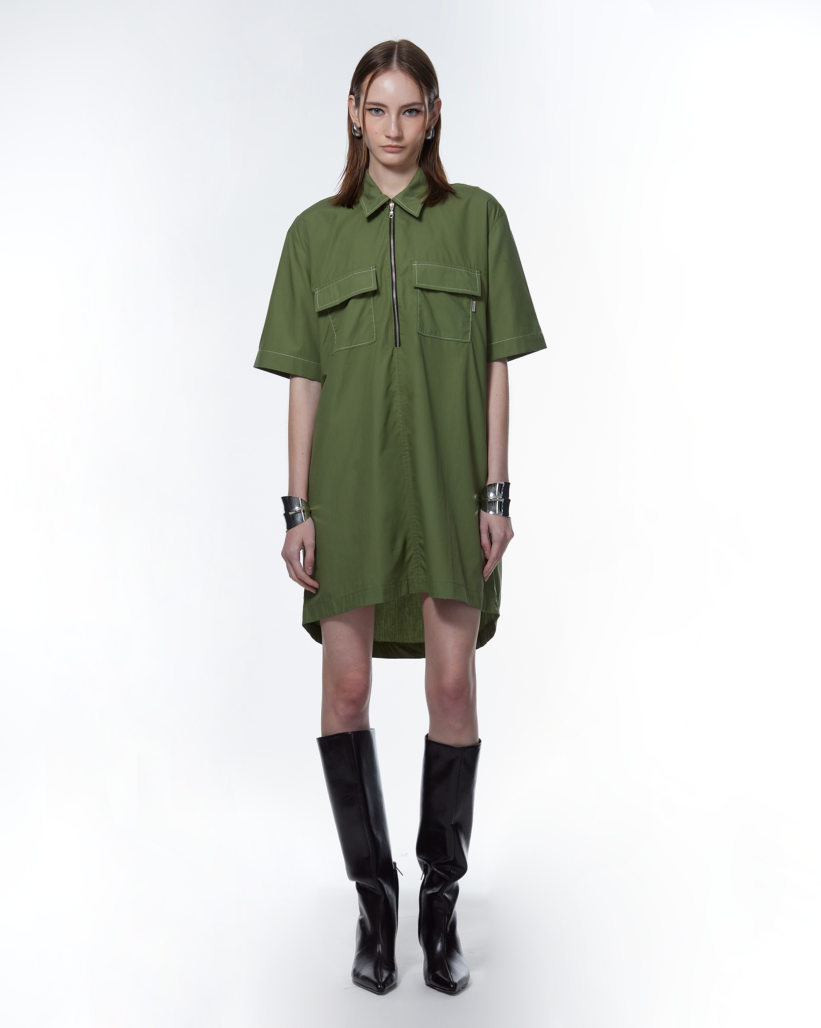 Combining all our design codes, Geri is boxy oversized bliss. The contrast topstitch, rolled collar, and elbow sleeves define the lines, while the dropped shoulder and back box-pleat ensure your comfort. Made from our signature poplin TENCEL™ fabric, Geri is breathable and light, and trust the exposed YKK front zipper to bring the aesthetic hardness. We've got you covered in utility as well, with front pockets with pocket flap and side seam pockets.