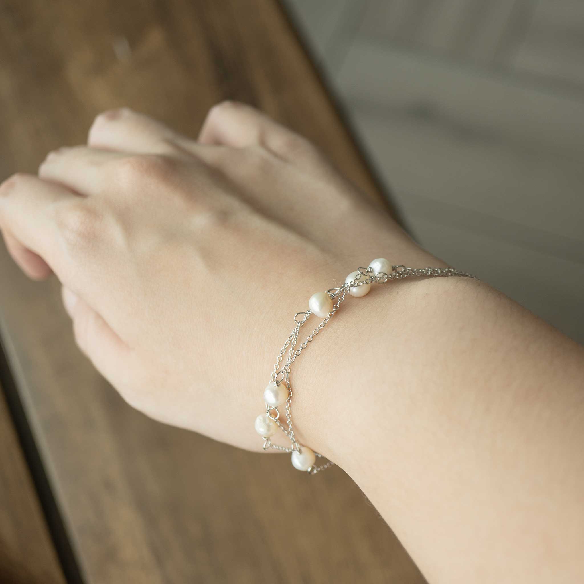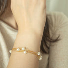 Treat yourself to this exquisite double layer handmade bracelet featuring freshwater pearls. Skilfully crafted with 18K Gold Vermeil with a recycled 925 Sterling Silver base, this bracelet exudes elegance, elevating any outfit, making it the perfect accessory for weddings and other noteworthy events.
