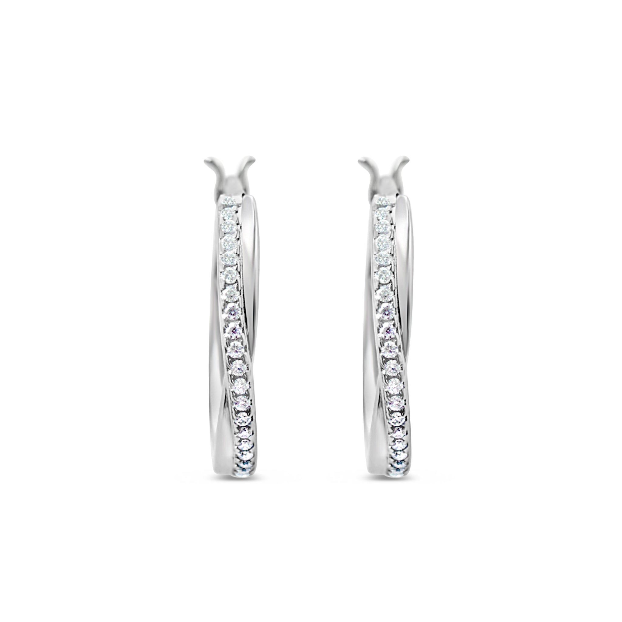 A refined take on everyday sparkle. These moissanite pavé hoops feature a subtle twist in their silhouette—adding just the right touch of dimension and shine. Understated yet eye-catching, they’re perfect for both day and night.