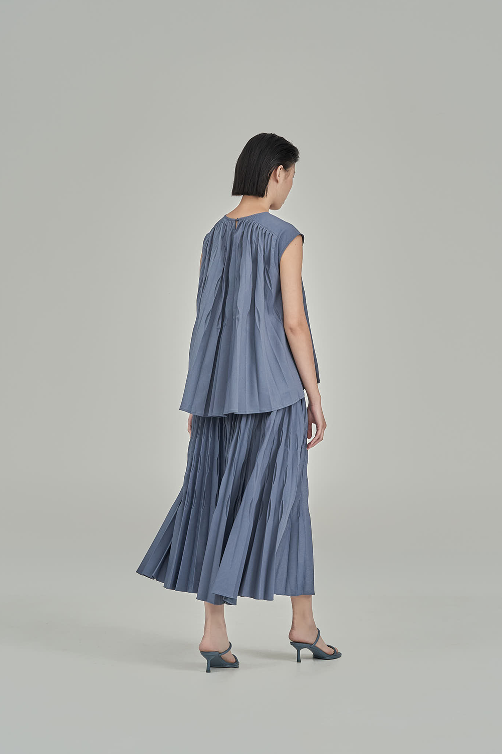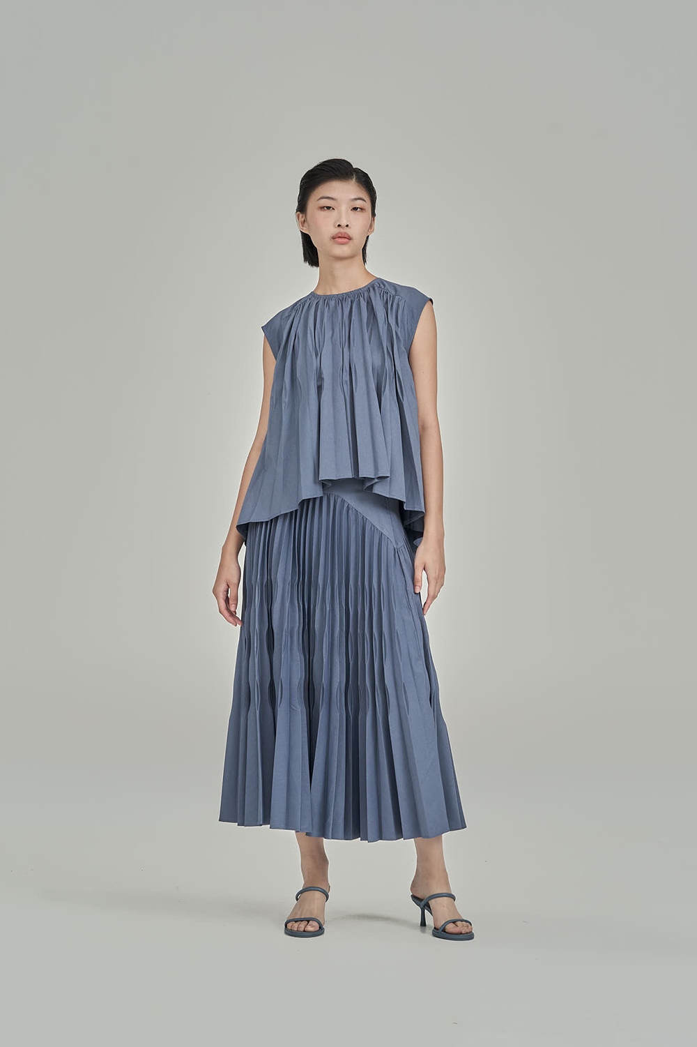 Expertly constructed from a blend of polyester, recycled polyester, and spandex, this top offers durability and lasting shape. Proper care ensures the pleats remain crisp and the garment retains its quality over time.