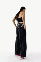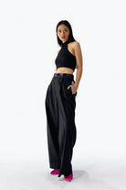 Elevate your wardrobe with the Ink Pants by KHAAR, expertly crafted from a premium linen, viscose, and spandex blend. These wide-leg trousers stand out with a unique, hand-applied patchwork panel at the back, offering both visual intrigue and a nod to sustainable design.Versatile enough for both work and weekend, the Ink Pants pair effortlessly with crisp shirts, upcycled blazers, or fitted tanks. Their fluid silhouette and distinctive detailing complement a range of existing wardrobe staples, making them a timeless addition.