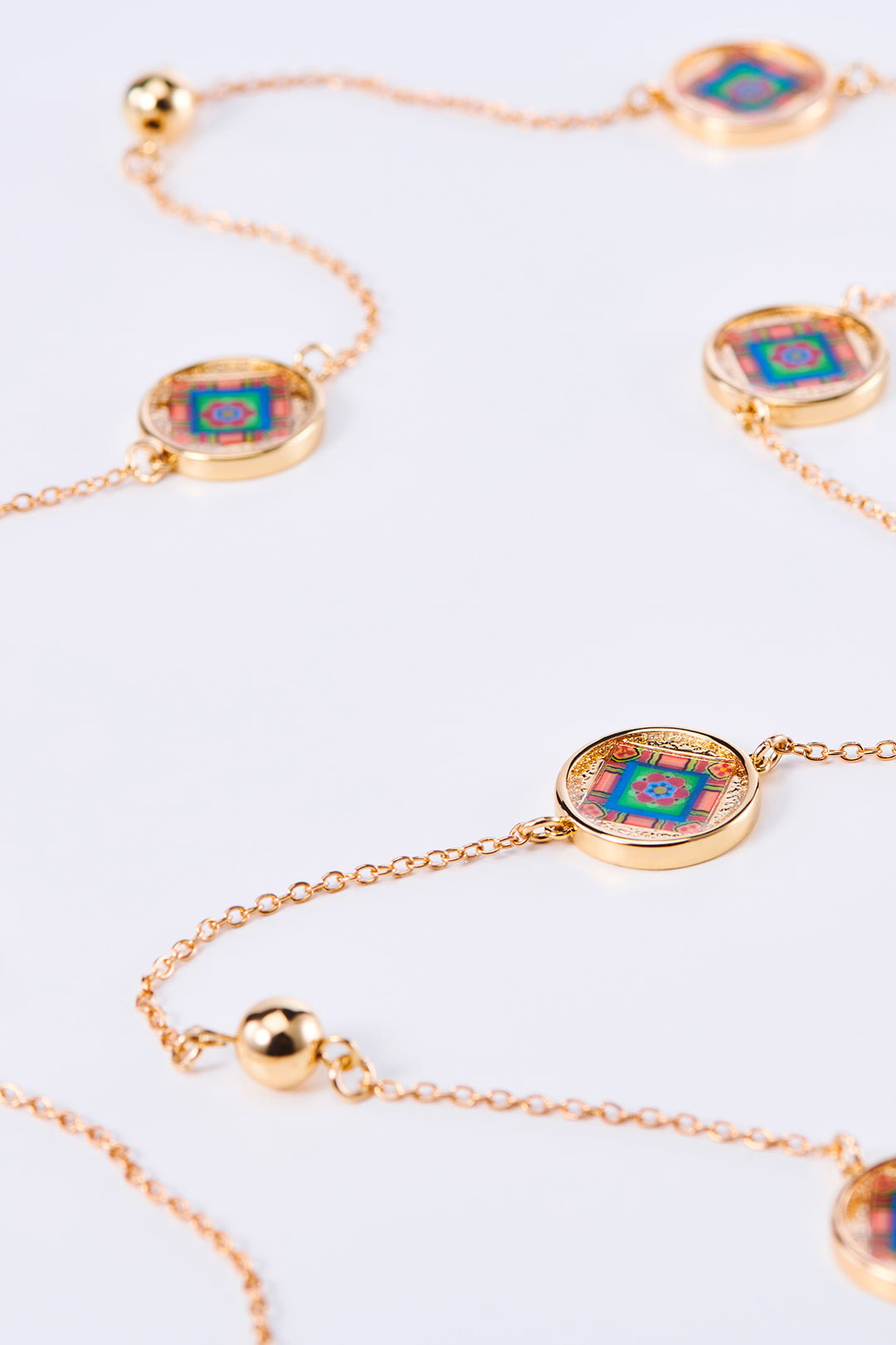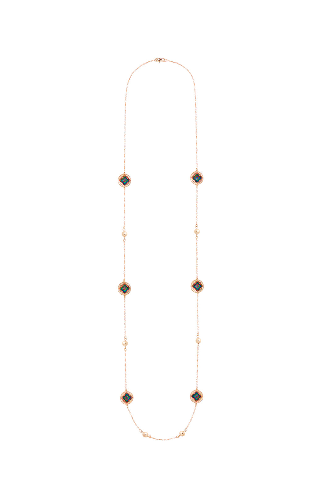 The Korean Dancheong Charm Necklace by RARE BIRD COLLECTION brings together traditional artistry and modern refinement. Inspired by the vibrant geometric patterns of dancheong, this necklace features delicately spaced golden balls that lend a subtle, elegant shimmer to any look.Its 48 cm length offers versatile styling options, making it an ideal accessory for both casual and formal outfits. Wear it alone for a statement of cultural sophistication or layer it with other pieces to complement your existing jewelry collection.