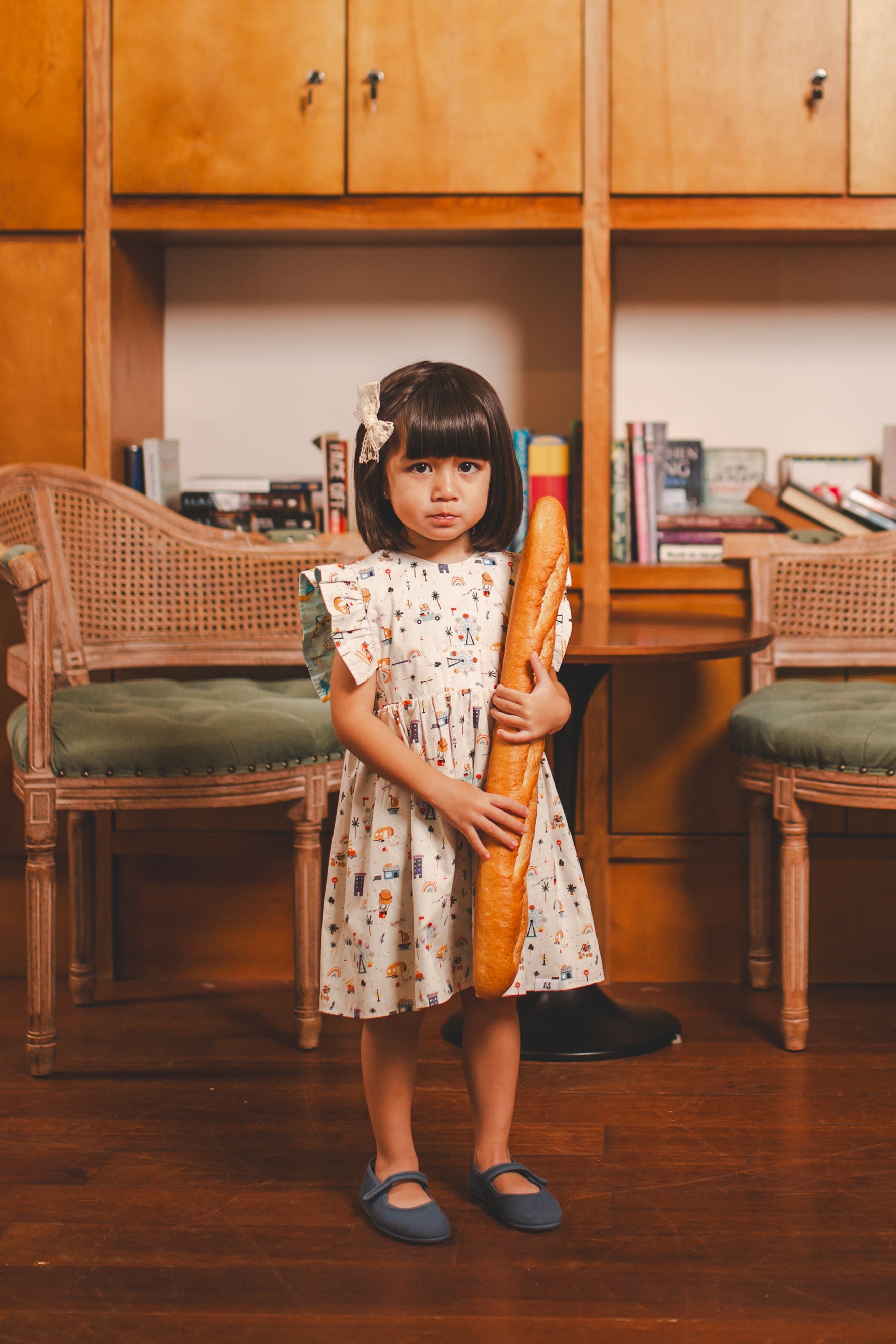 Crafted from 100% cotton, the dress promises breathable comfort and lasting quality. Snap closure buttons down the back provide ease of wear, while careful care will help maintain its shape and colour.
