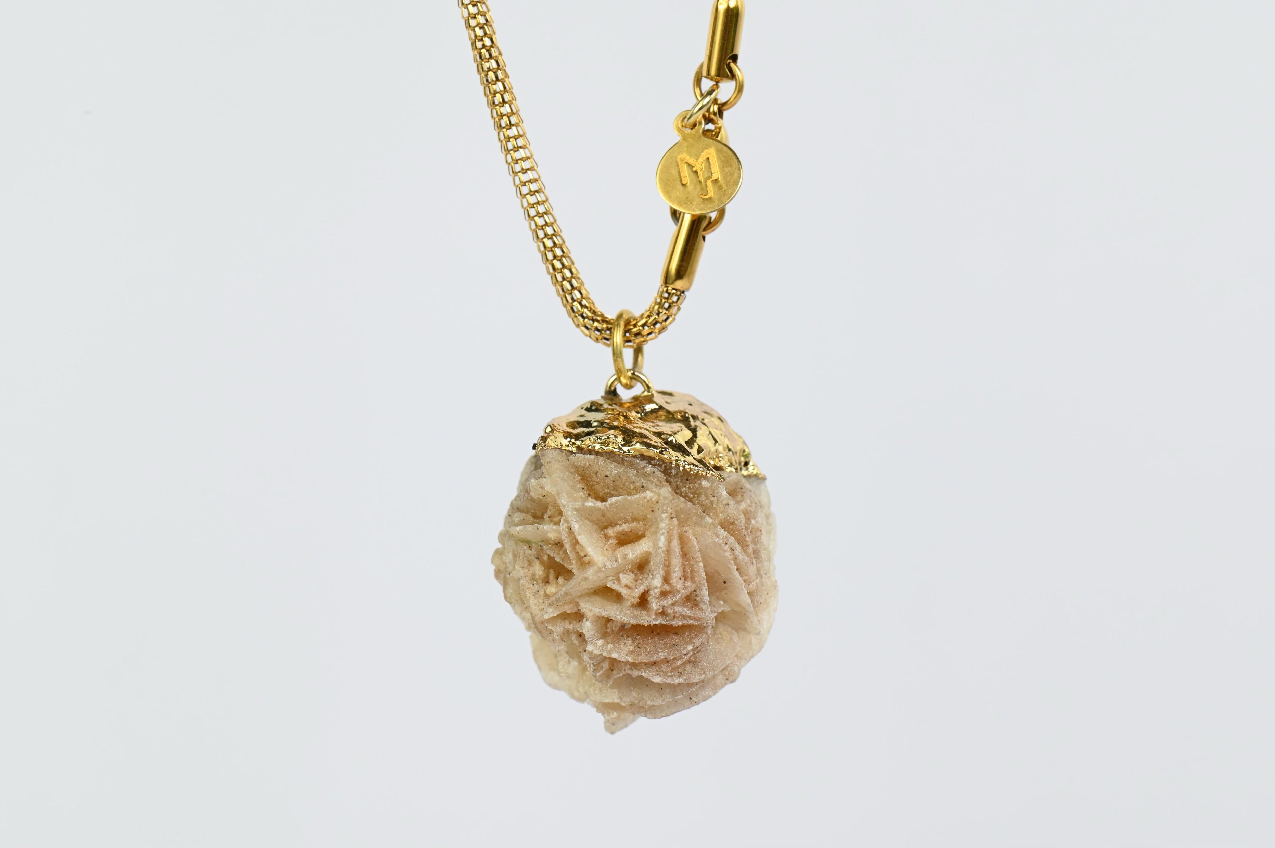 Desert Rose Natural Gemstone Pendant Necklace – Nature’s Unique Beauty in Luxe Gold