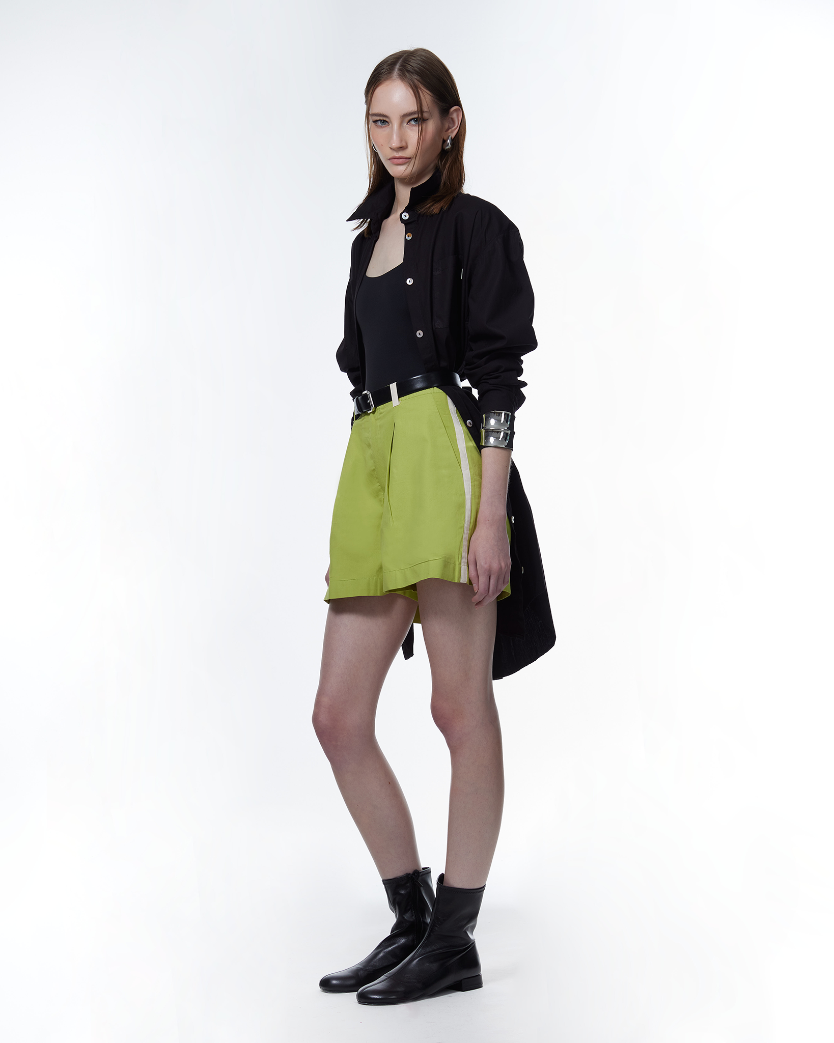 When looking for something that is tailored yet casual, nothing beats the Natalie shorts. A classic silhouette gets a touch of cool-factor through contrast side stripes, upcycled with fabric offcuts from our first collection. Made from our signature lightweight TENCEL™ poplin, we add a thin 100% TENCEL™ voile lining as well to guarantee comfort and structure. Natalie is fitted at the waist and roomy everywhere else, thanks to the single-pleated design, and functionality all around with front and back pockets.