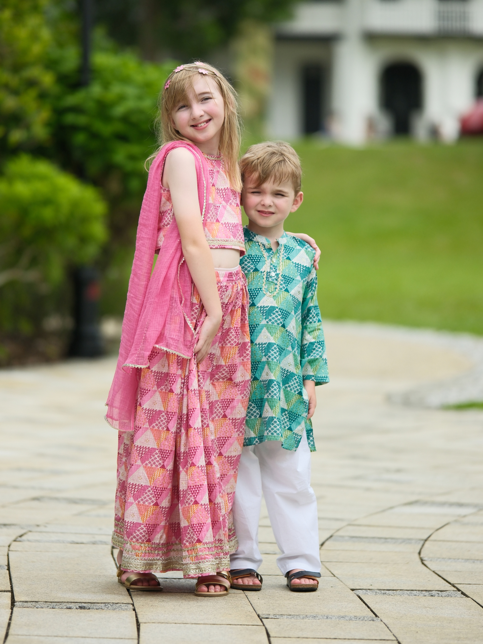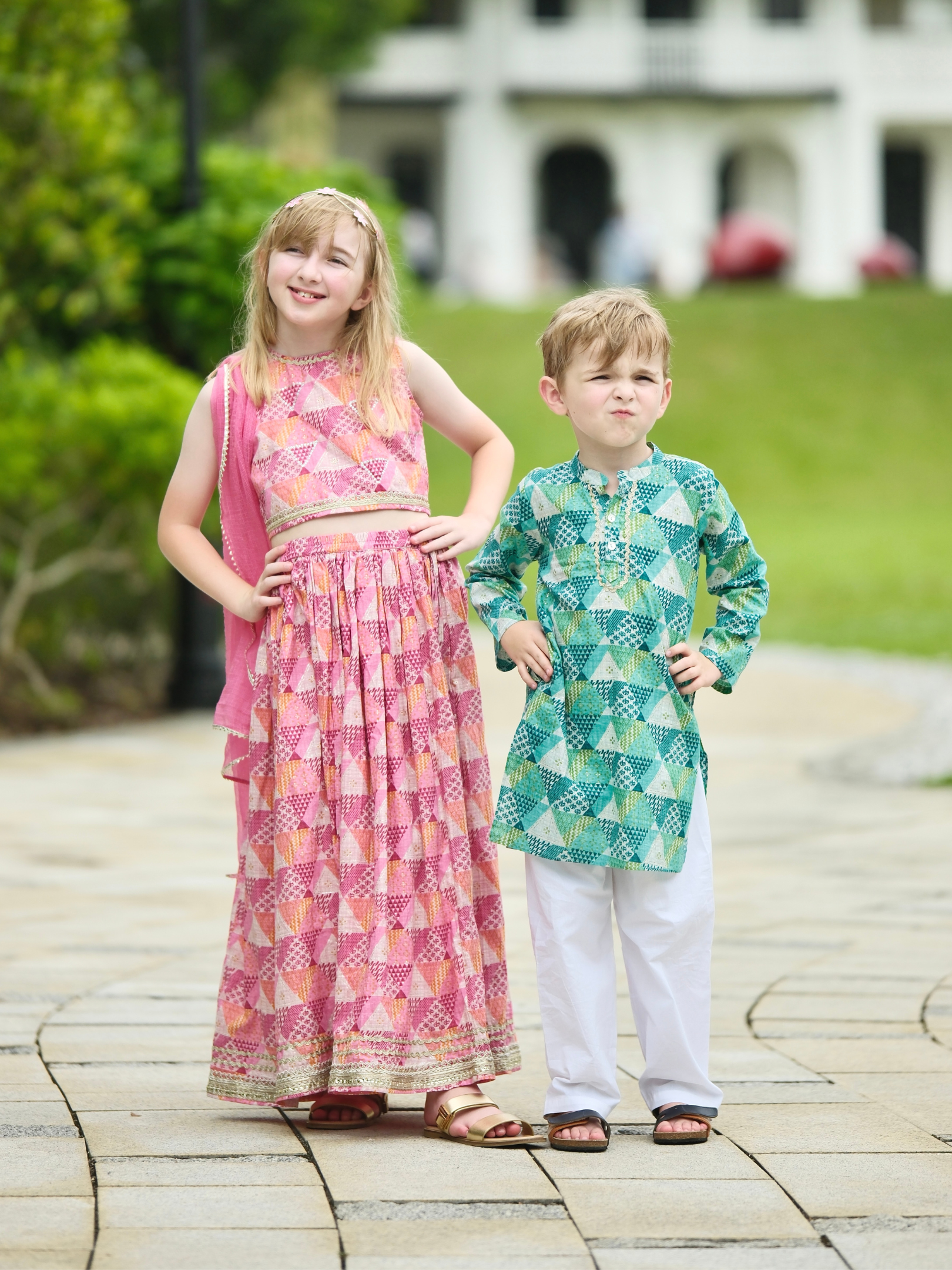 Infuse her festive wardrobe with vibrant charm through the Mehak Pink Girls Sleeveless Sequinned Lehenga Set with Dupatta by NIMBU. Crafted in soft muslin cotton, this set stands out with its playful sequins, delicate gotta hem, and bold tassel accents, ensuring she feels both elegant and comfortable at every celebration.Perfect for Deepavali and other special occasions, the sleeveless blouse offers a modern silhouette, while included unstitched sleeves provide styling flexibility. The set pairs beautifully with her favourite accessories and can be mixed with other festive pieces for a fresh look each time.