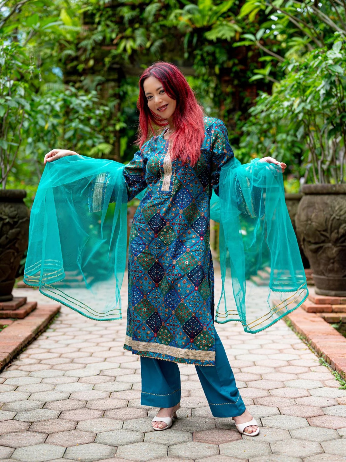 Includes: Kurta, pants, and dupatta