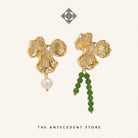 Celebrate refined elegance with THE ANTECEDENT STORE’s Orchid Opulence Earrings, inspired by Singapore’s iconic Vanda Miss Joaquim. This striking design pairs green chalcedony crystal and freshwater pearls with 14K gold-plated brass or silver, capturing the city’s vibrant spirit in every detail.Perfect for both special occasions and everyday sophistication, these earrings add a touch of artistry to any ensemble. Their unique blend of modern and traditional elements complements both contemporary and classic wardrobes.