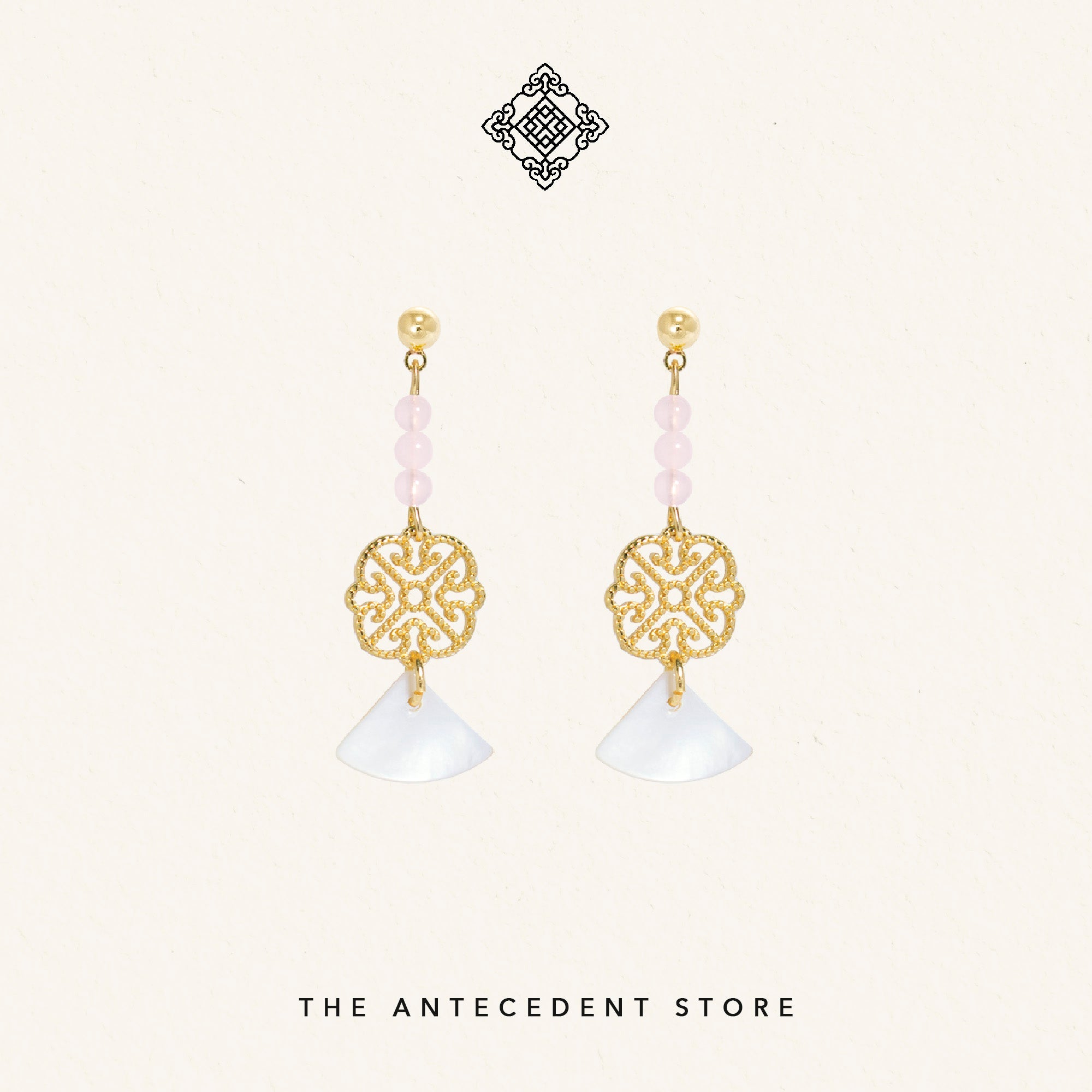 THE ANTECEDENT STORE | Oriental Motif Earrings With Rose Quartz