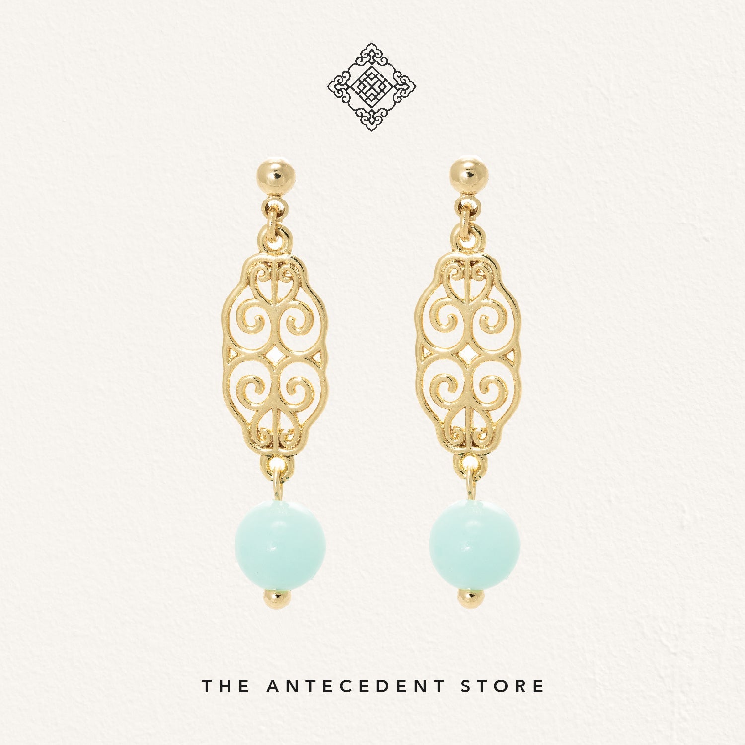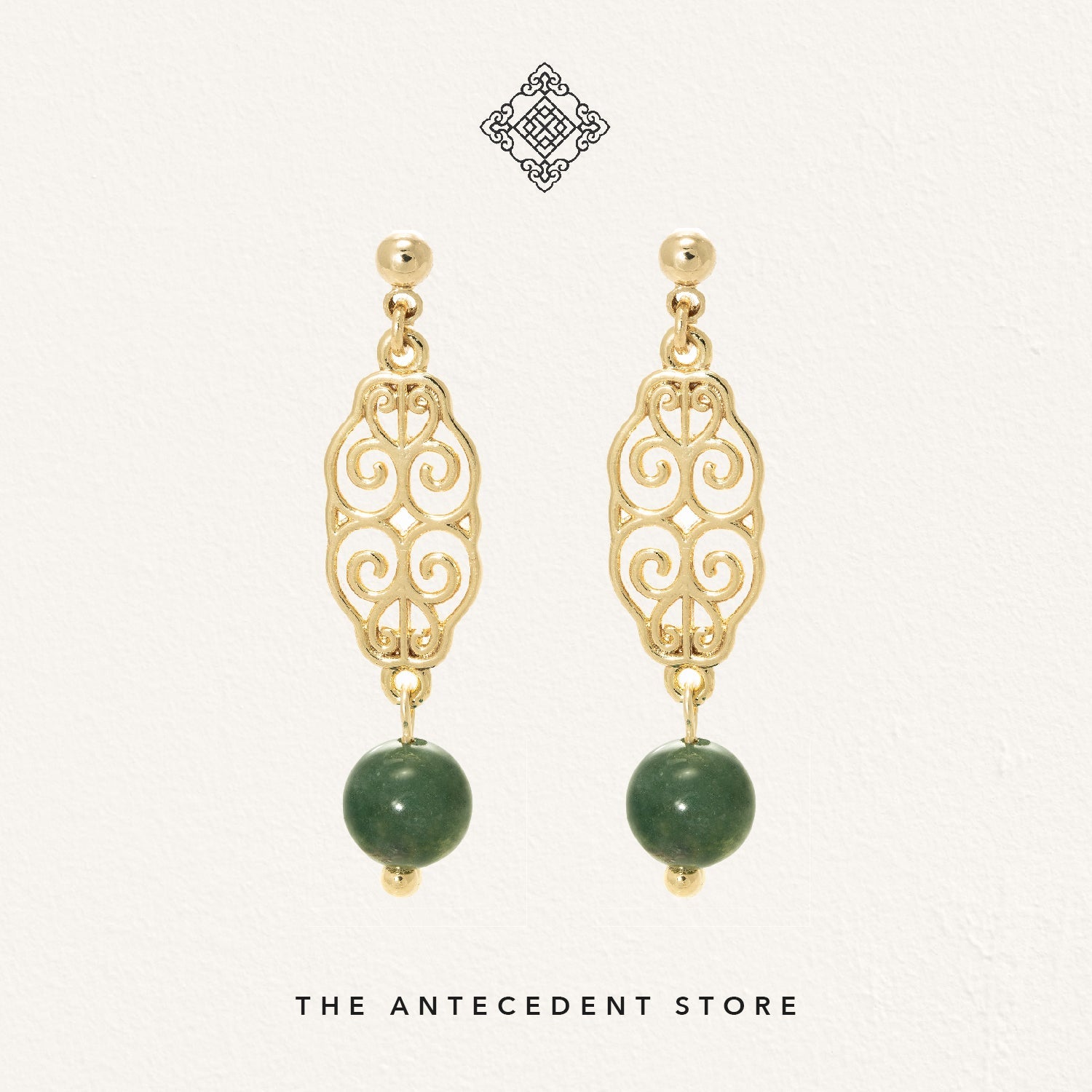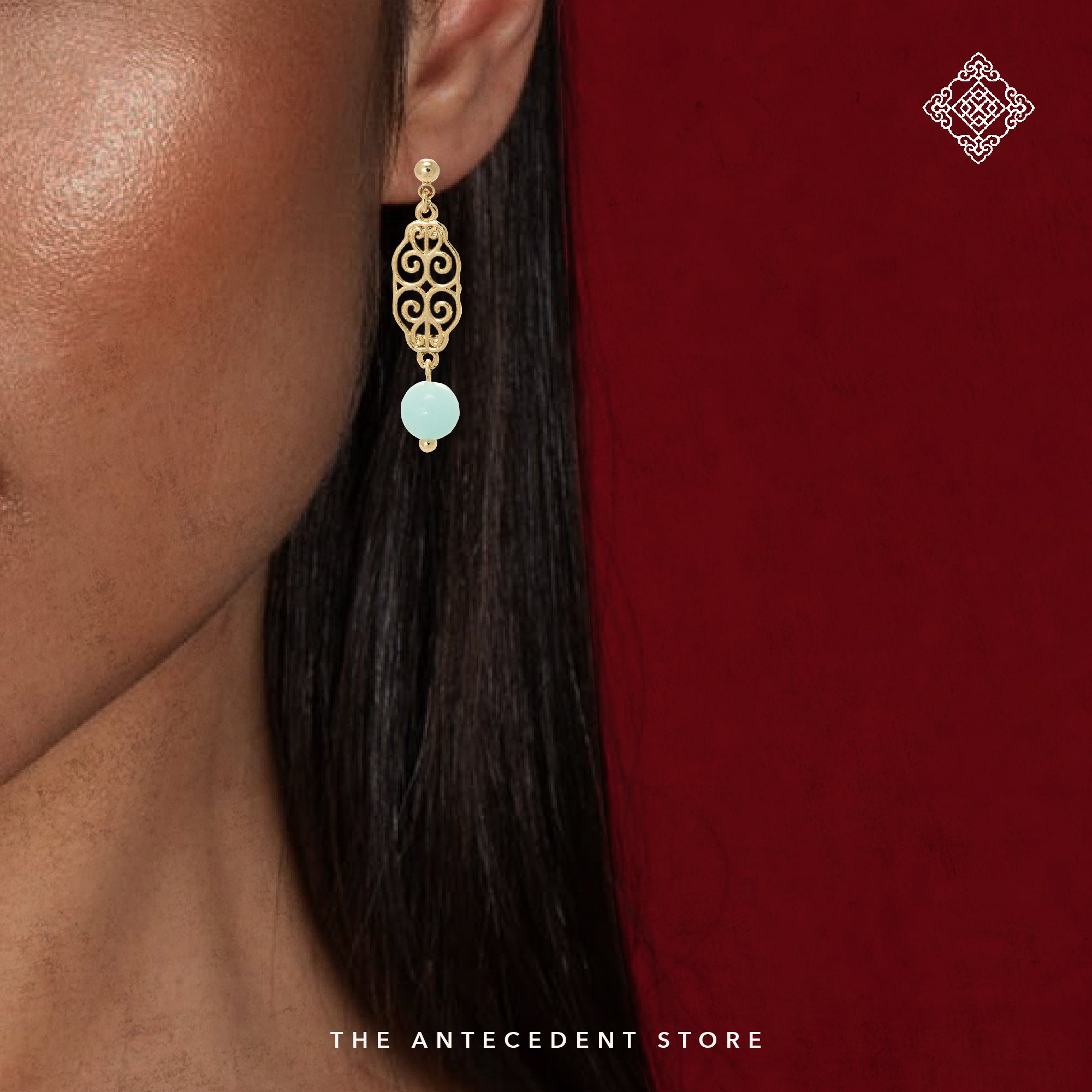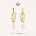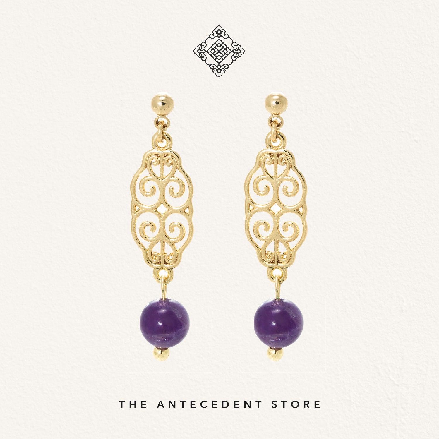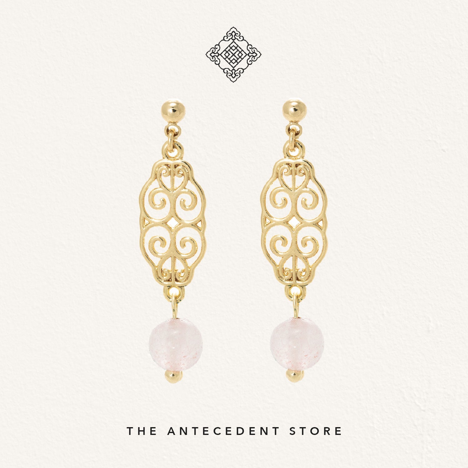 Elevate your look with the Oriental Motif Earrings with Crystals from THE ANTECEDENT STORE, featuring 14K real gold plating and a selection of distinctive stones. Each earring is thoughtfully designed to blend refined elegance with a touch of individuality, making it a standout accessory for any occasion.These earrings transition effortlessly from day to evening, pairing beautifully with both casual and formal ensembles. The variety of available stones—rose quartz, amethyst, agate, blue tiger eye, and pagodite crystal—ensures they complement your existing jewellery collection.