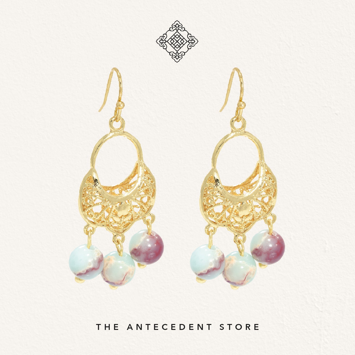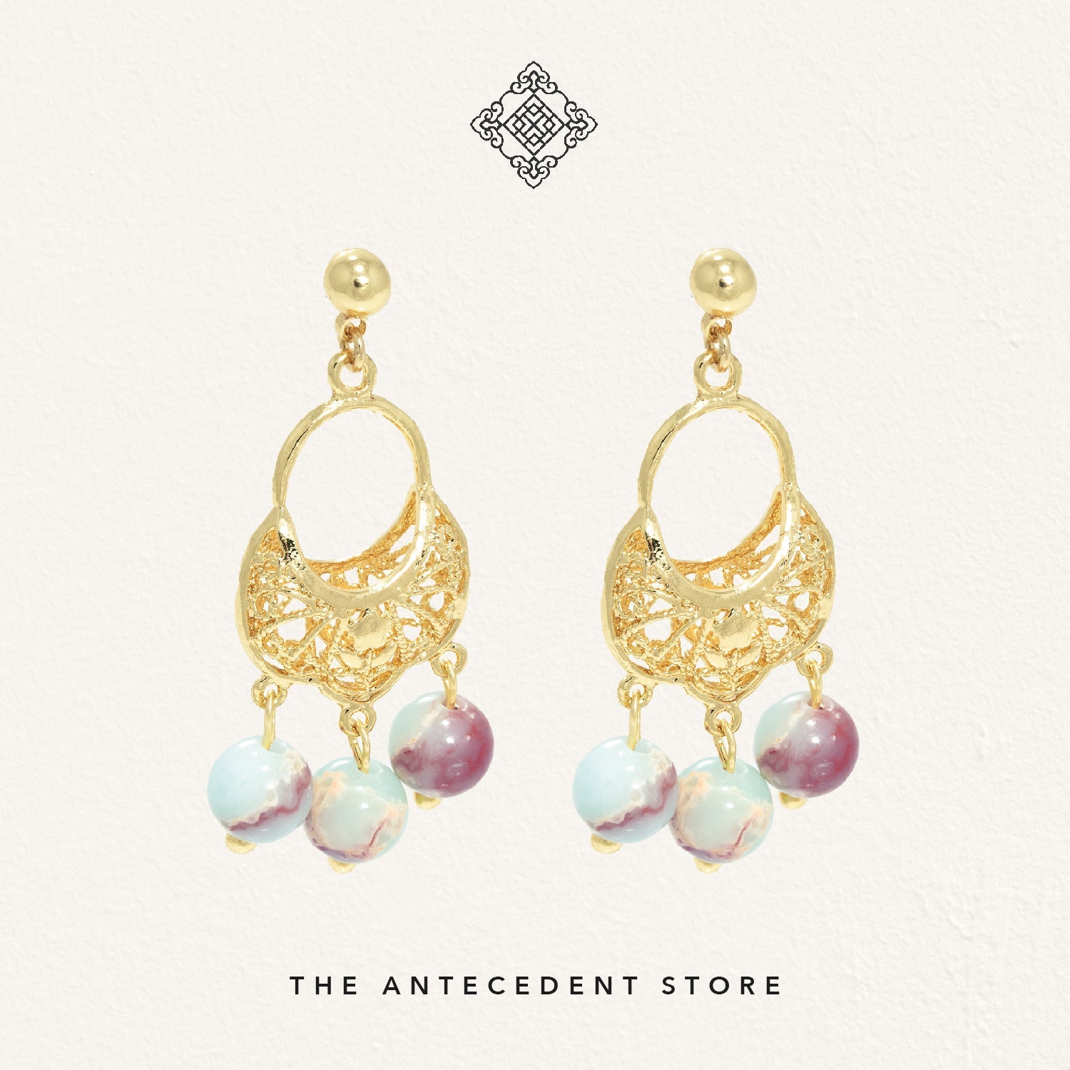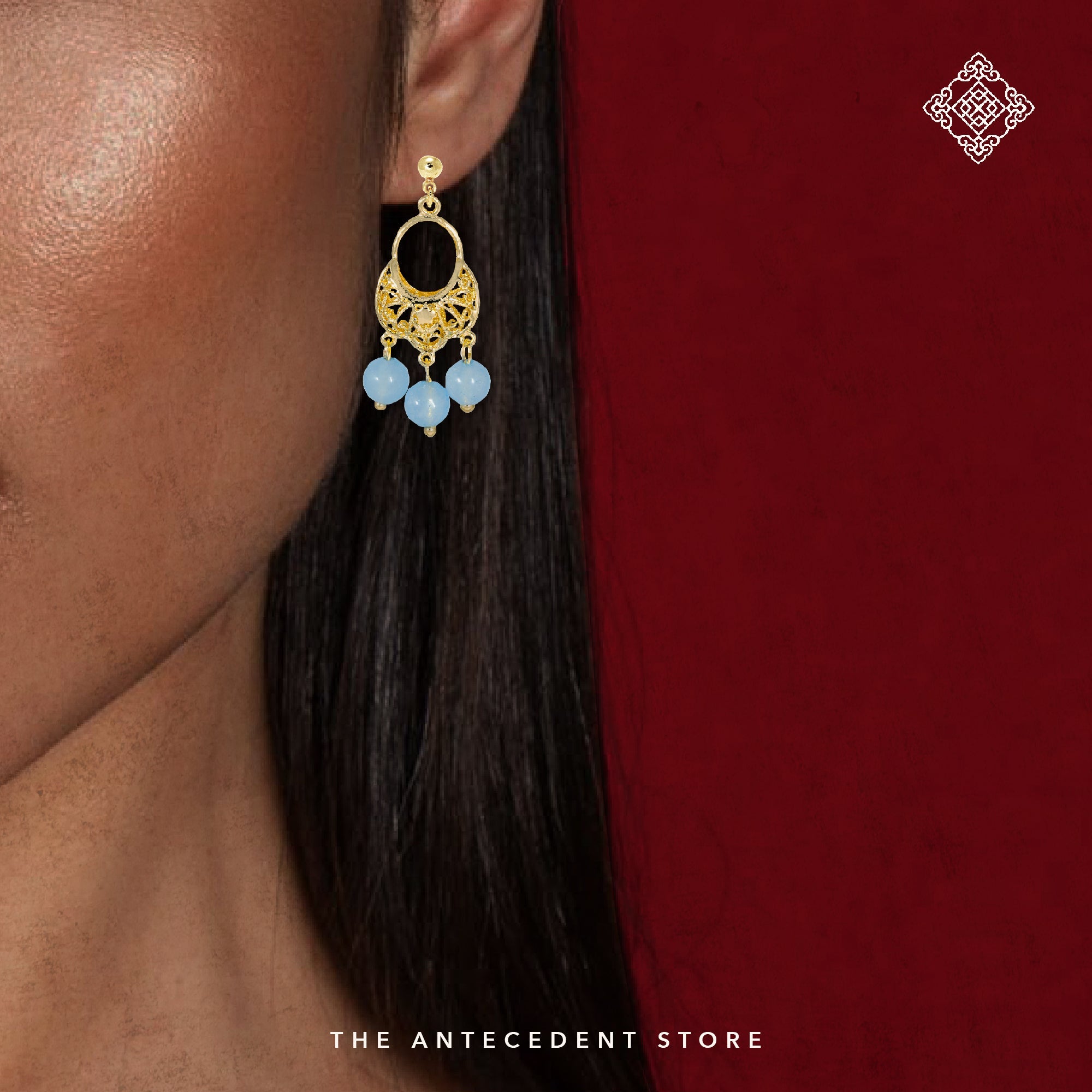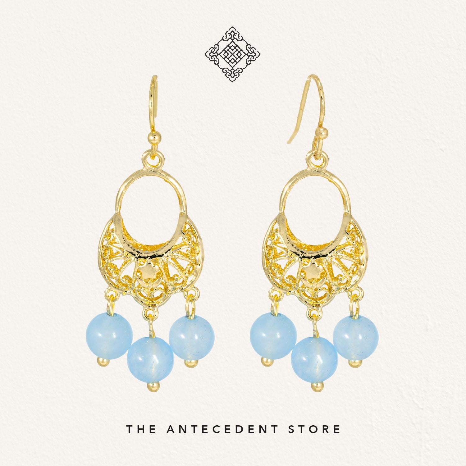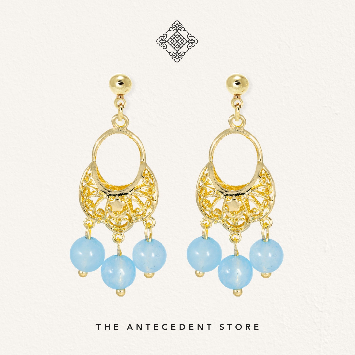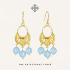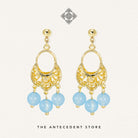 Elevate your look with the Oriental Motif Earrings With Crystals from THE ANTECEDENT STORE, featuring 14K real gold plating and a choice of aquamarine or pagodite crystals. These earrings blend refined craftsmanship with a distinctive, elegant design inspired by timeless oriental motifs.Perfect for both special occasions and everyday sophistication, these earrings pair beautifully with both modern and traditional ensembles. Their versatile style complements a range of jewellery collections, adding a touch of luxury to any outfit.