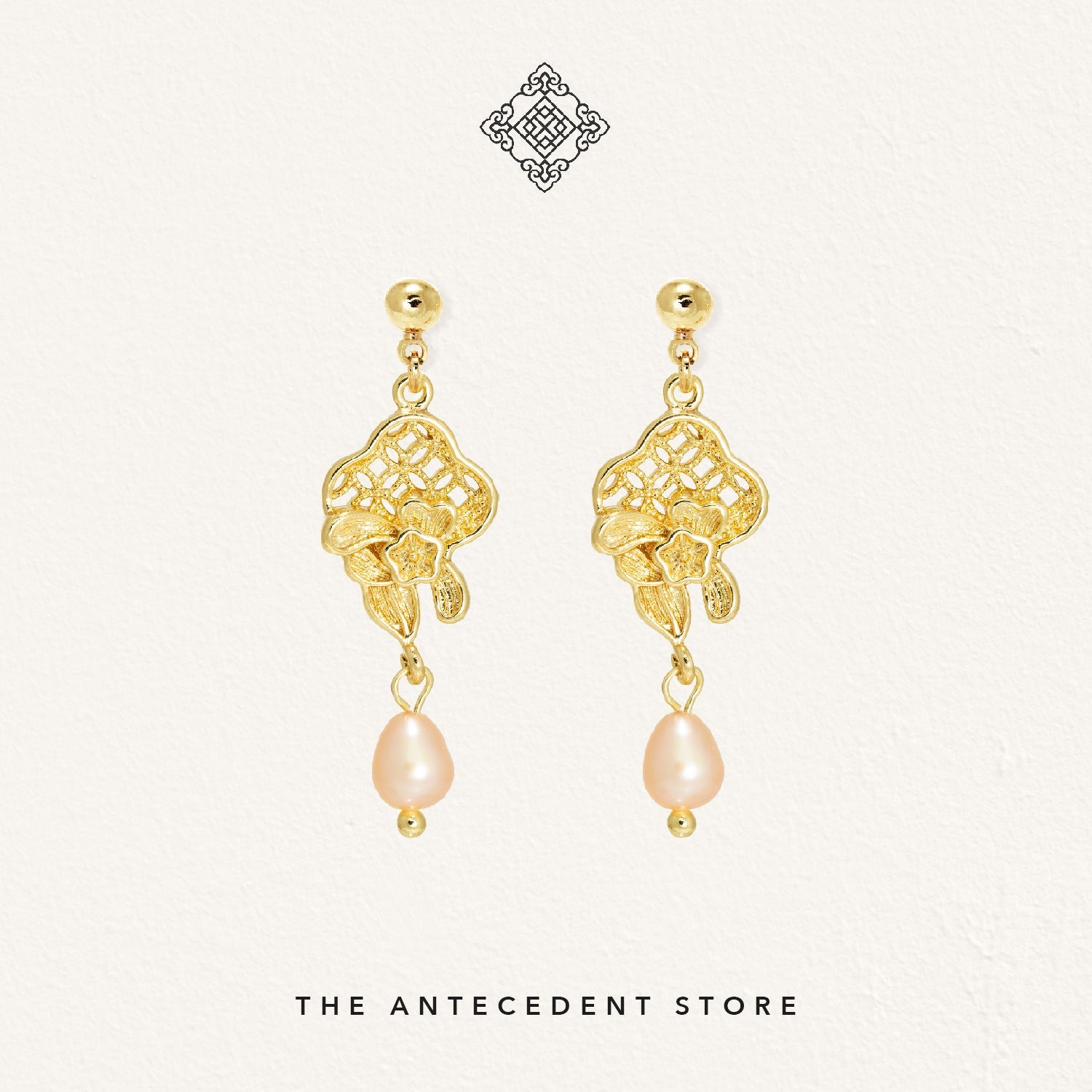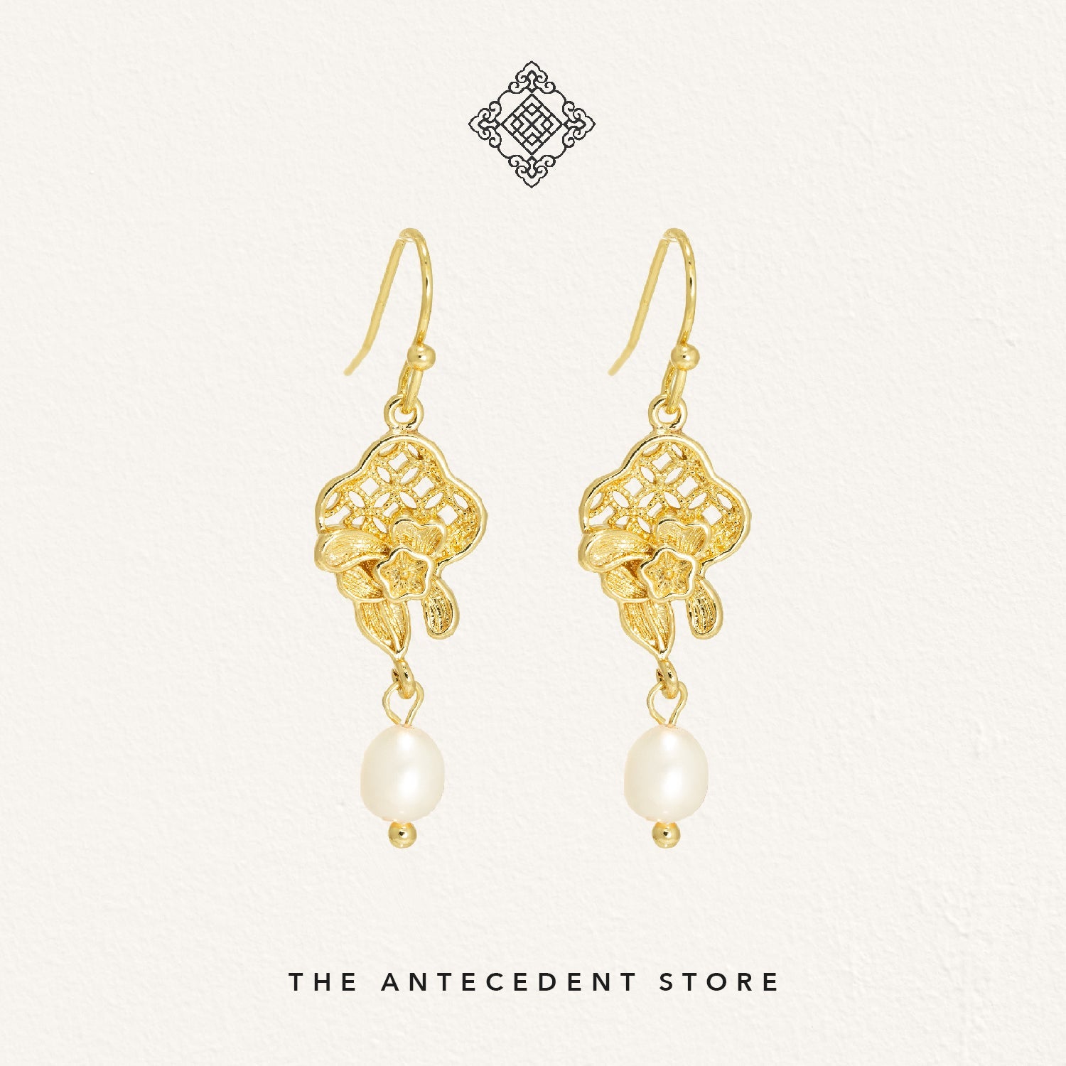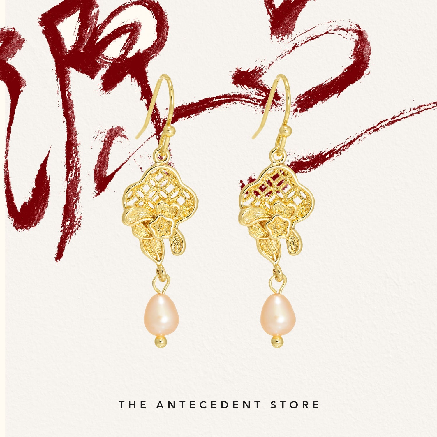 THE ANTECEDENT STORE | Oriental Motif Earrings With Freshwater Pearl