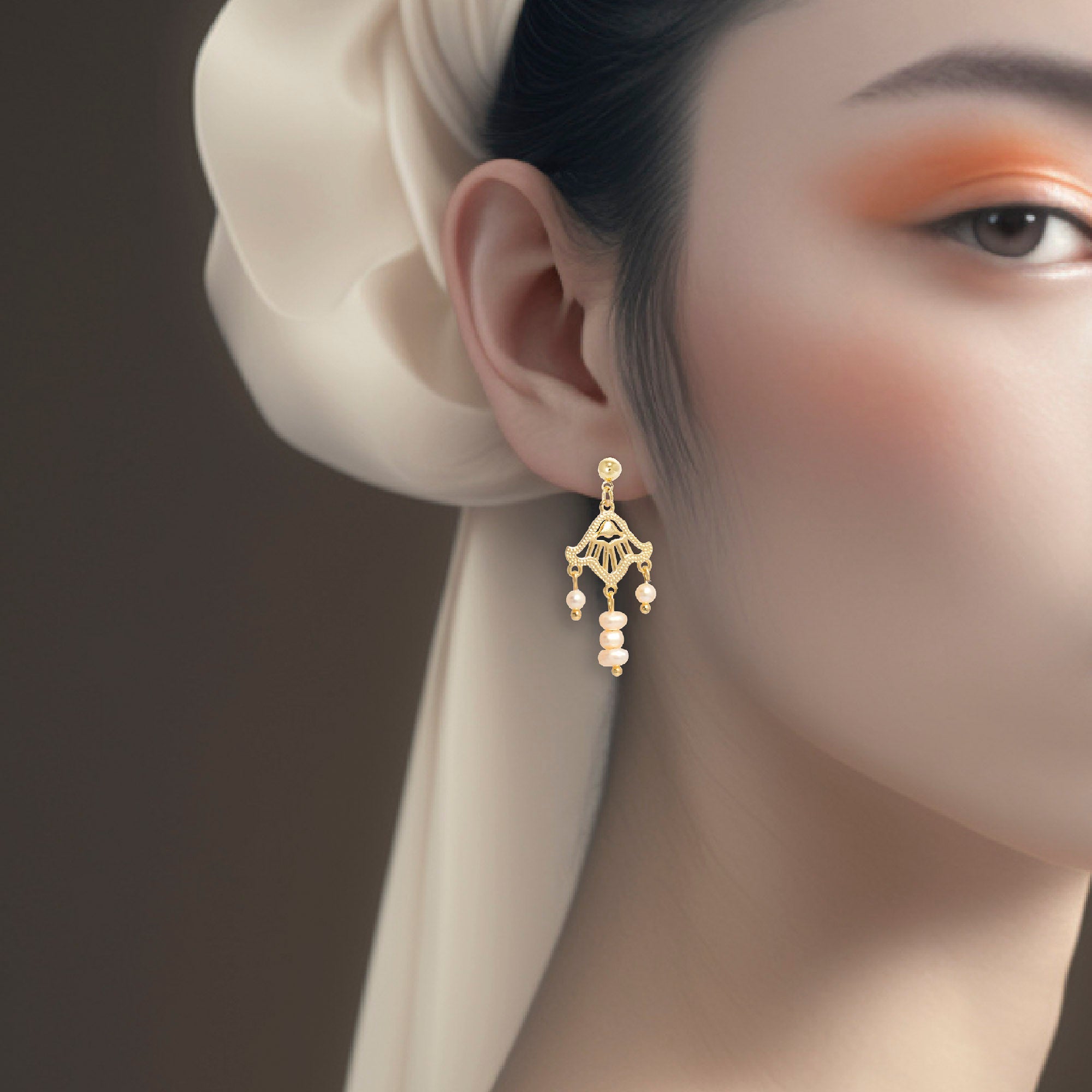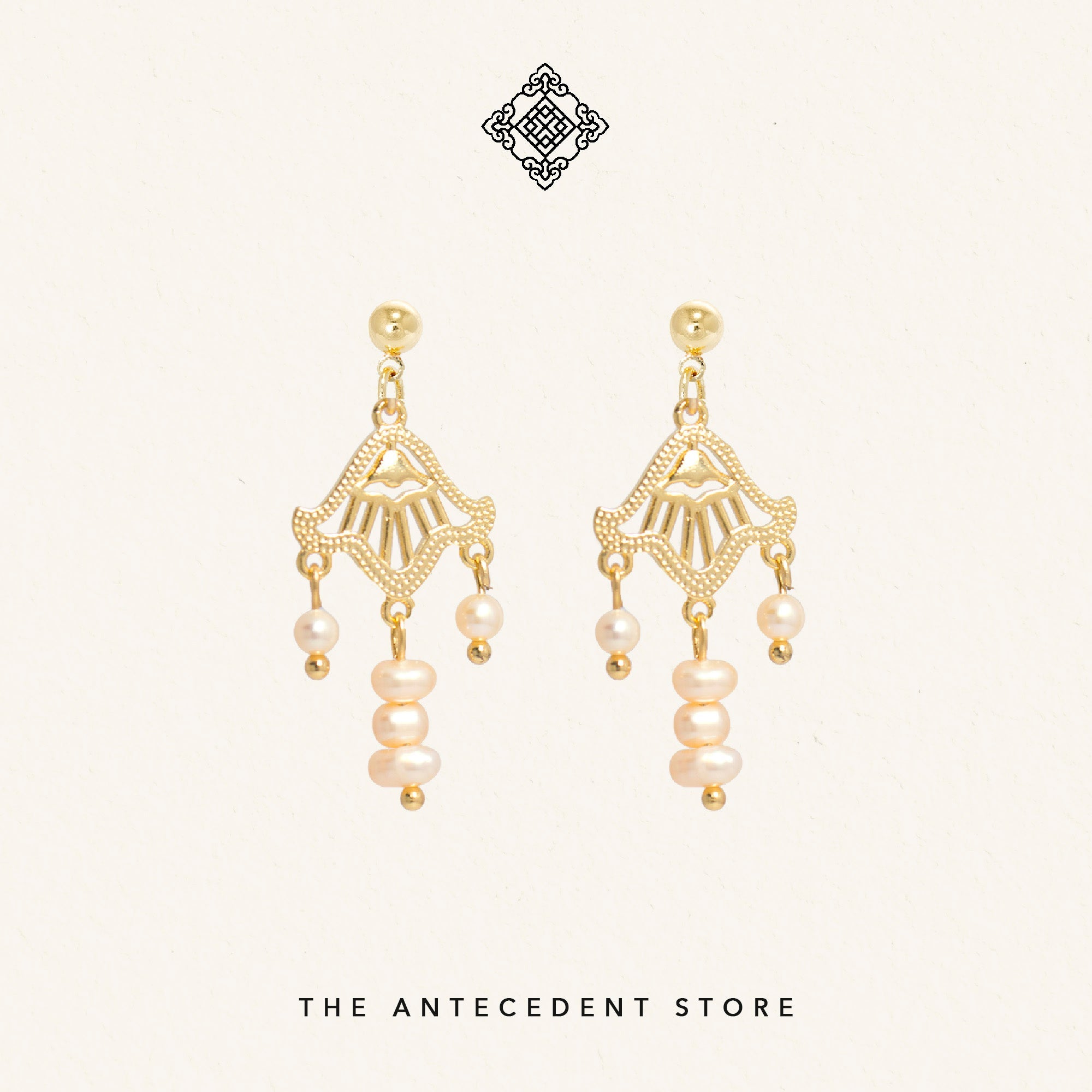 Elevate your jewellery collection with the Oriental Motif Earrings With Green Chalcedony Crystals by THE ANTECEDENT STORE, distinguished by their hypoallergenic 14K gold plating and lustrous freshwater pearls. The harmonious blend of green chalcedony crystals and intricate oriental motifs creates a refined statement piece that exudes timeless elegance.These earrings transition effortlessly from day to evening, complementing both casual ensembles and formal attire. Their versatile design pairs beautifully with other gold or pearl accessories, enhancing your existing collection with a touch of sophistication.
