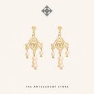THE ANTECEDENT STORE | Oriental Motif Earrings With Green Chalcedony Crystals - Hooks