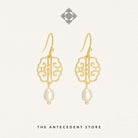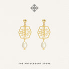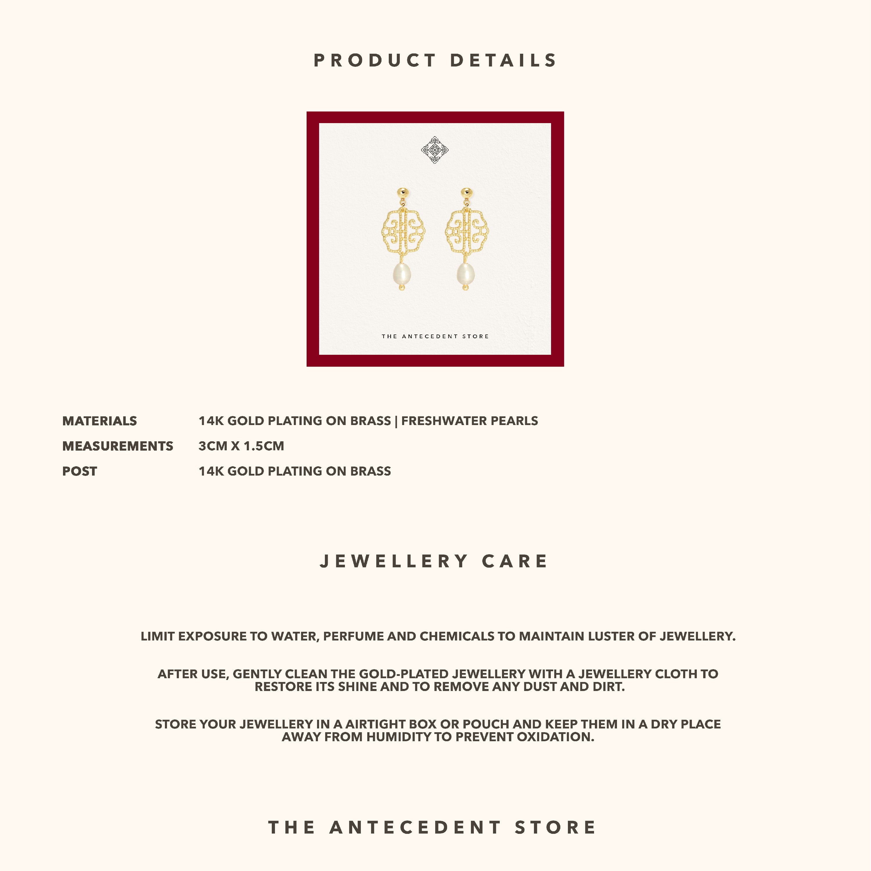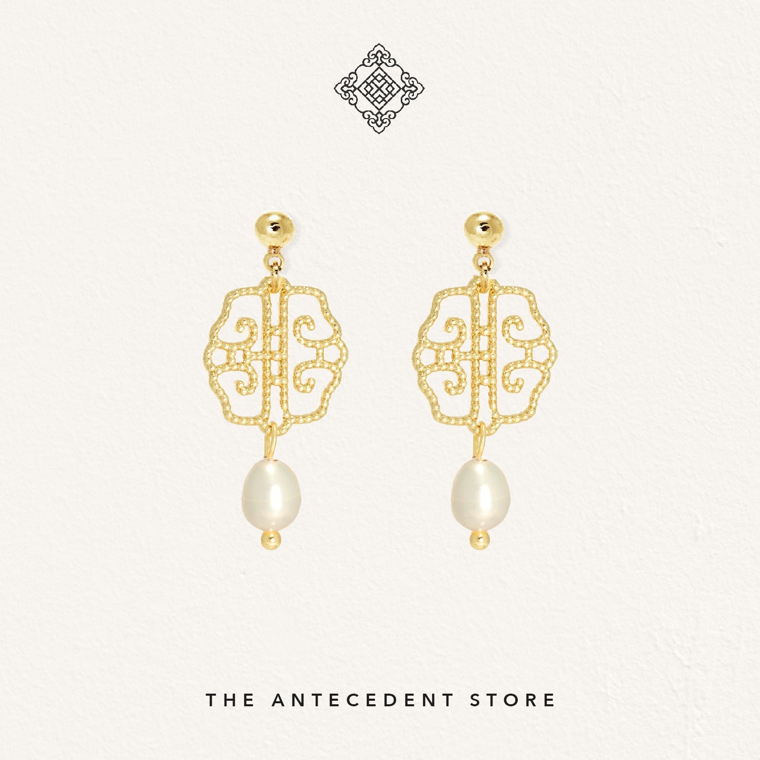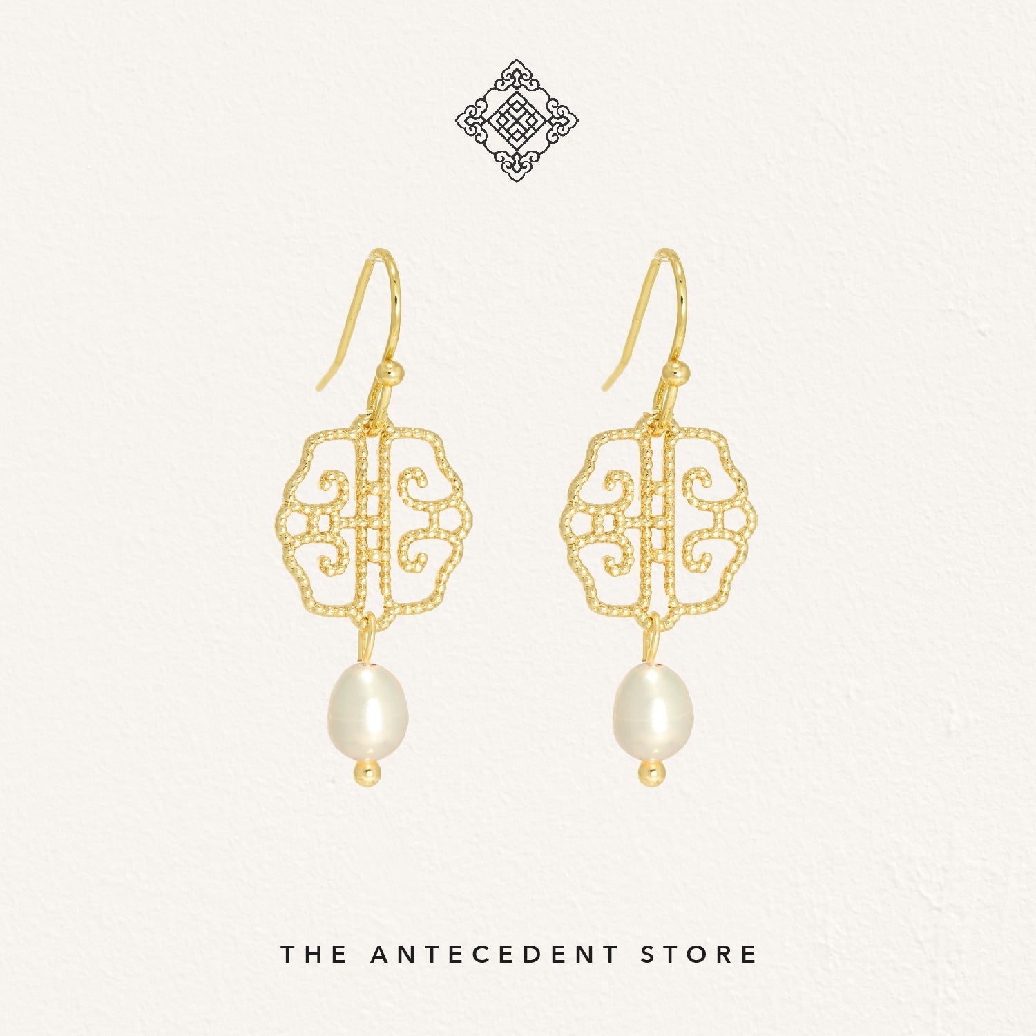 THE ANTECEDENT STORE | Oriental Motif Earrings With Freshwater Pearls (White Pearls)