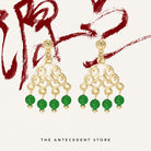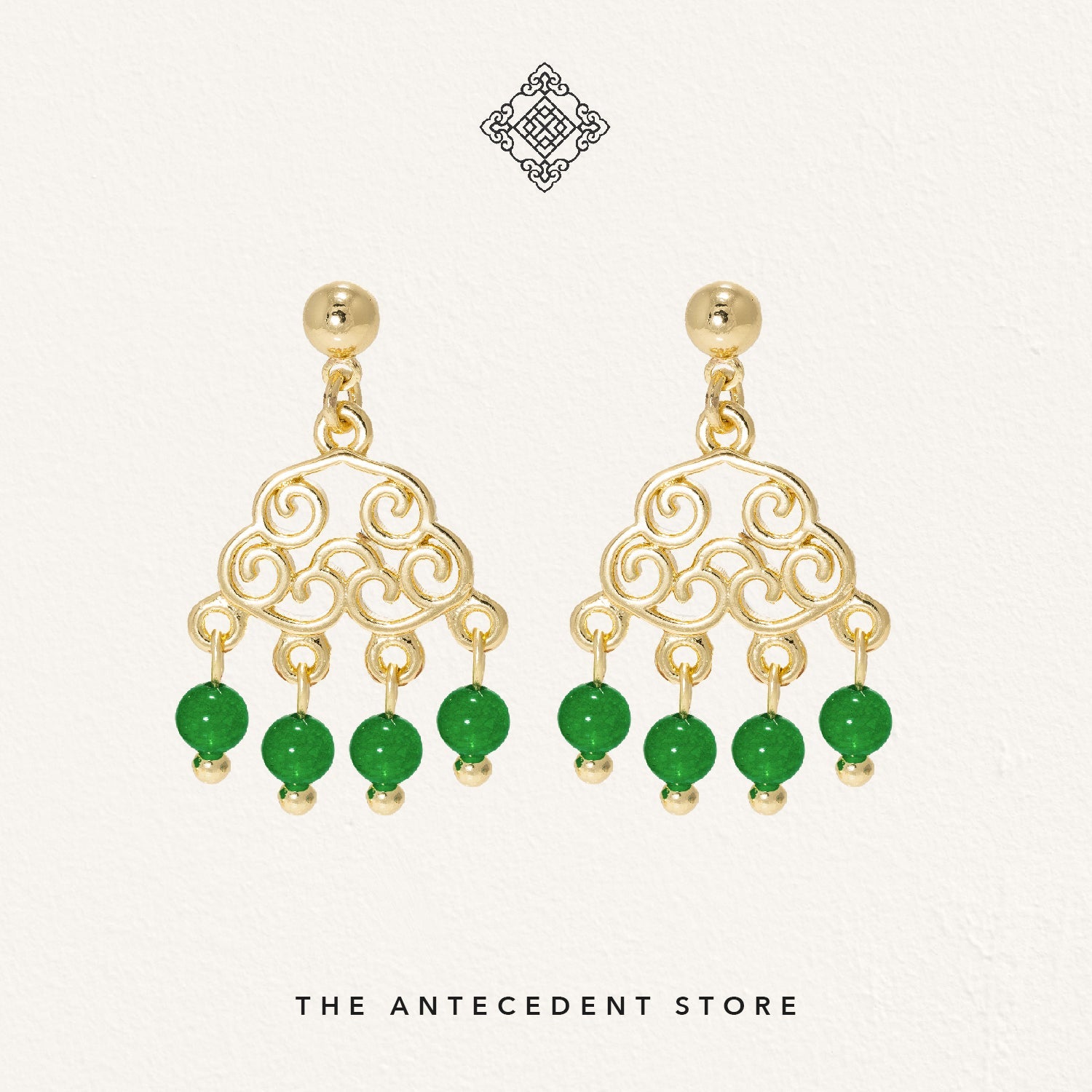 THE ANTECEDENT STORE | Oriental Motif Earrings With Green Chalcedony Crystals