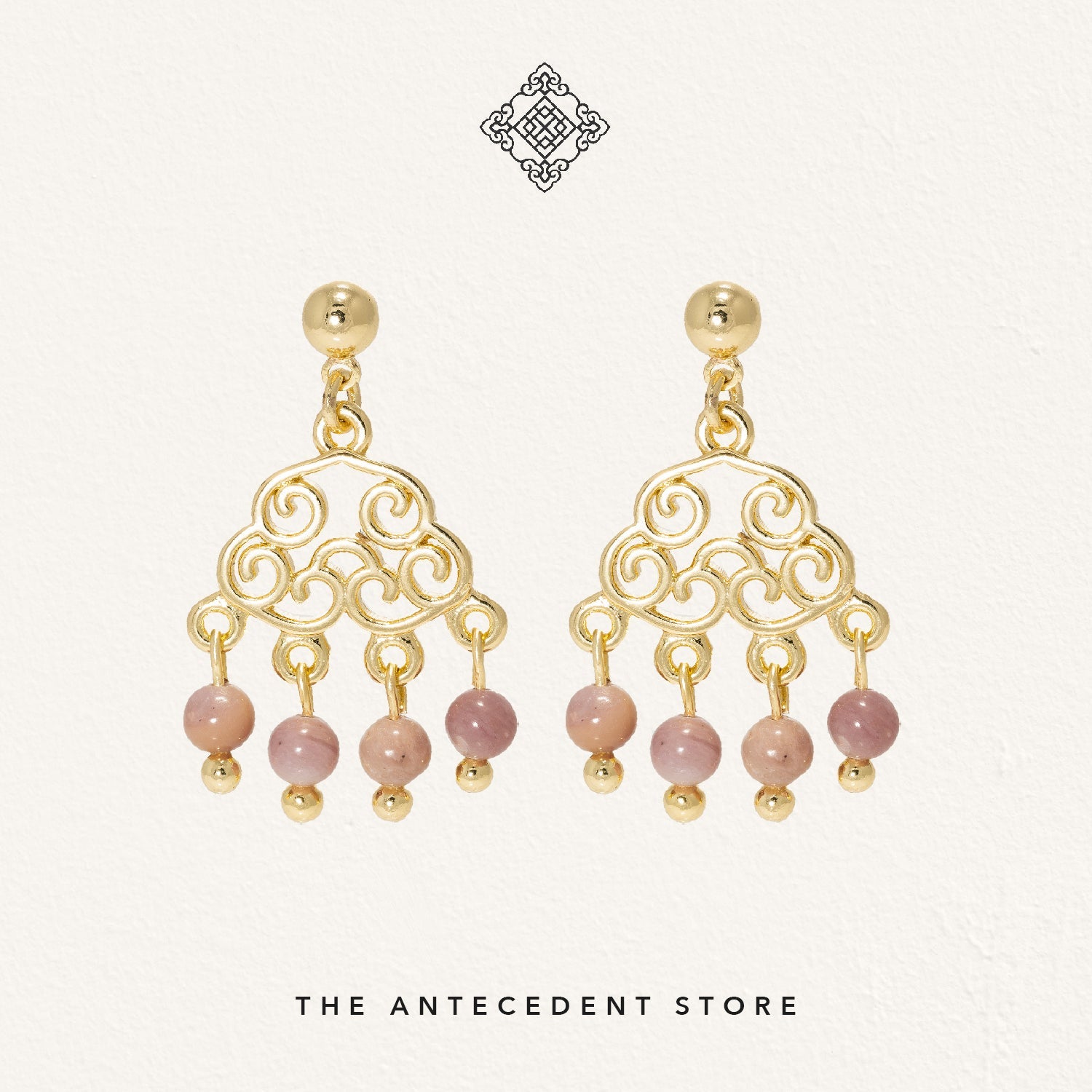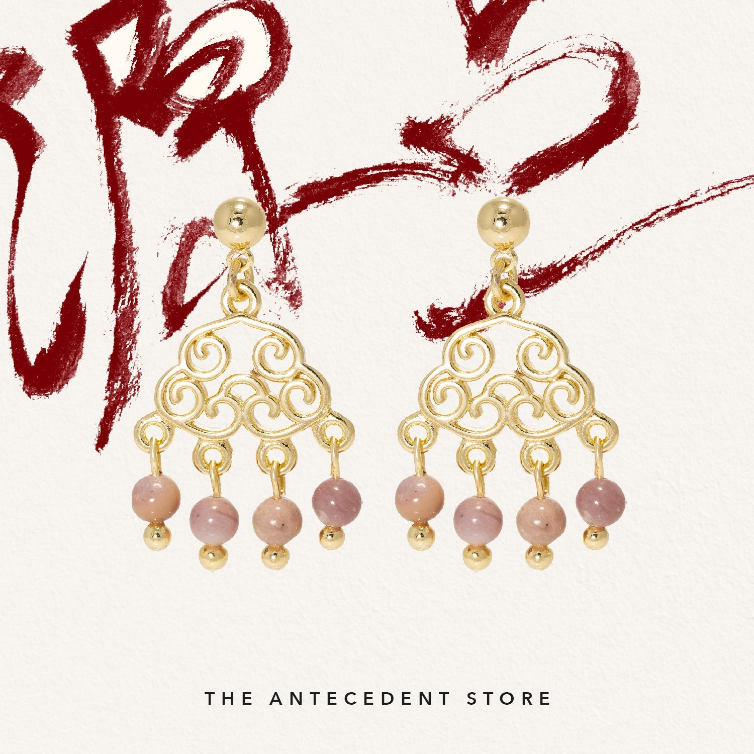 THE ANTECEDENT STORE | Oriental Motif Earrings With Pink Chalcedony