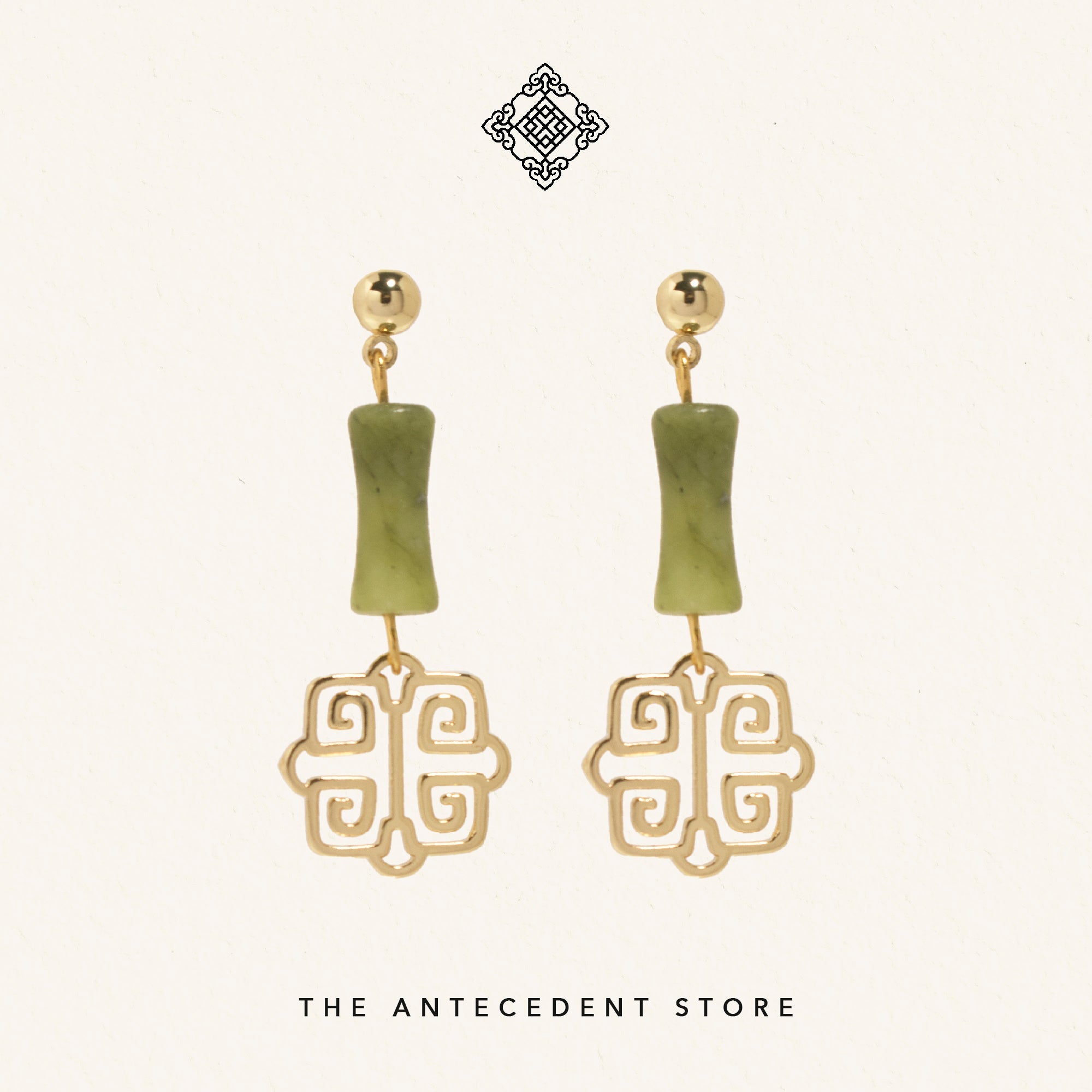 THE ANTECEDENT STORE | Oriental Motif With Nephrite Jade Earrings
