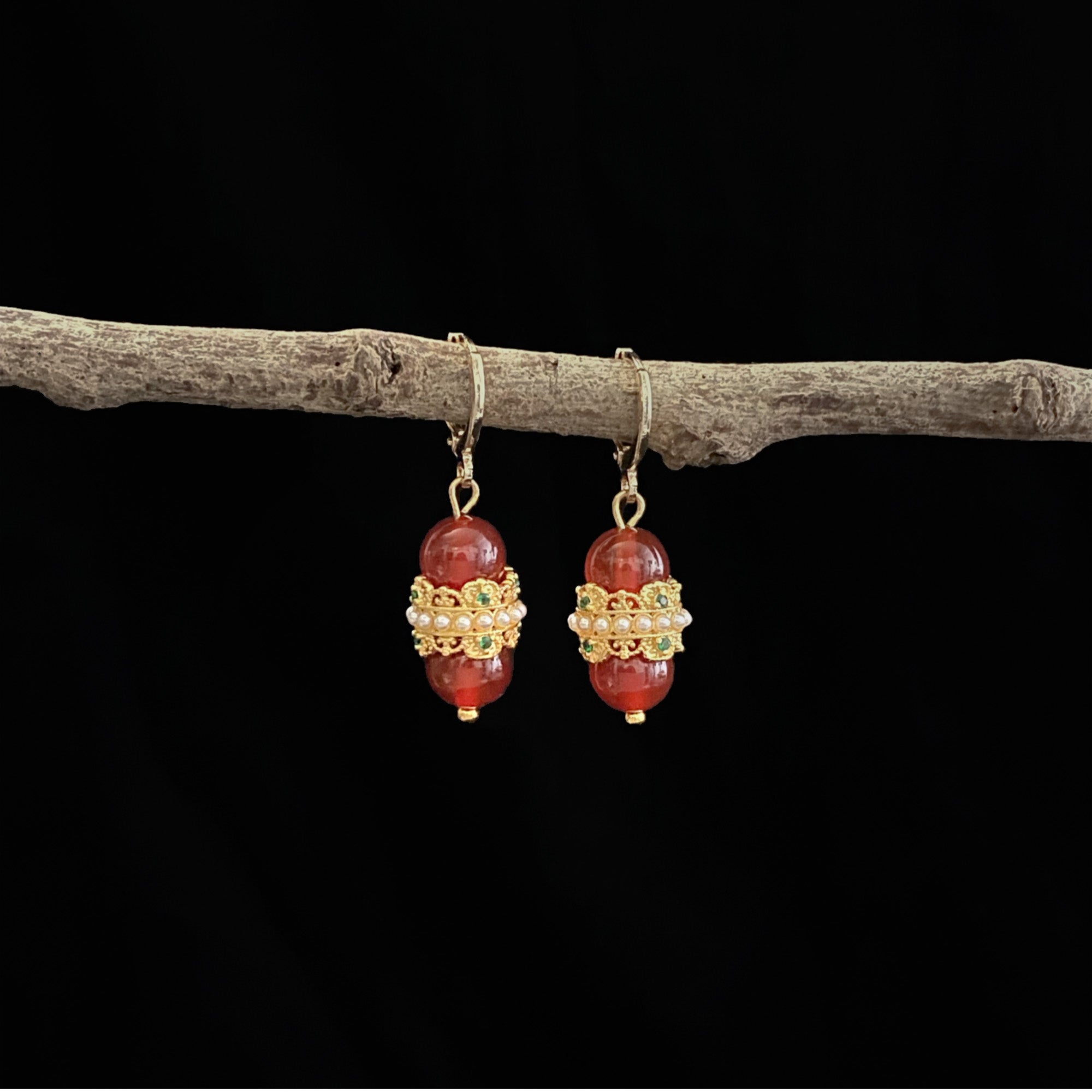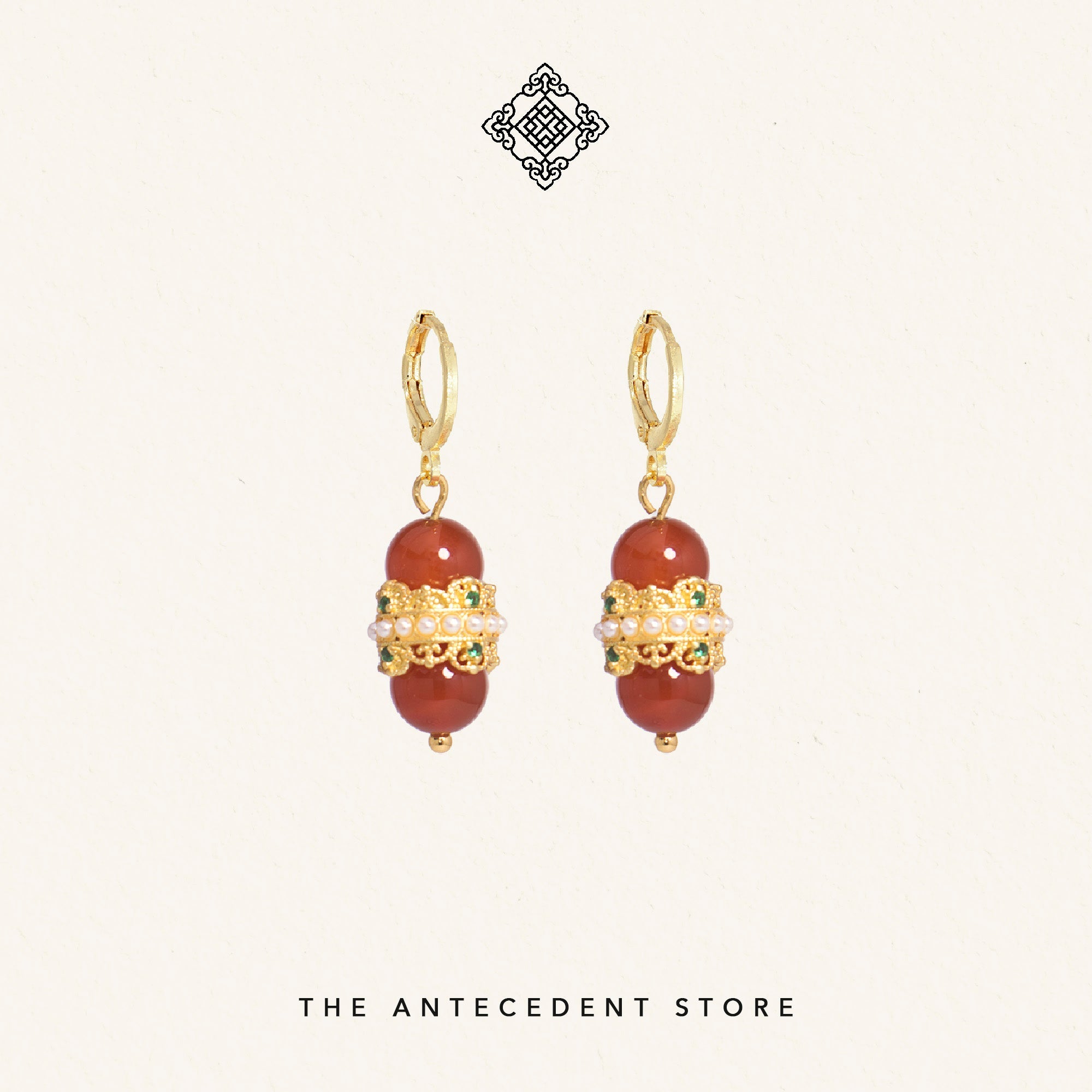 THE ANTECEDENT STORE | Oriental Motif With Red Agate Crystal Earrings
