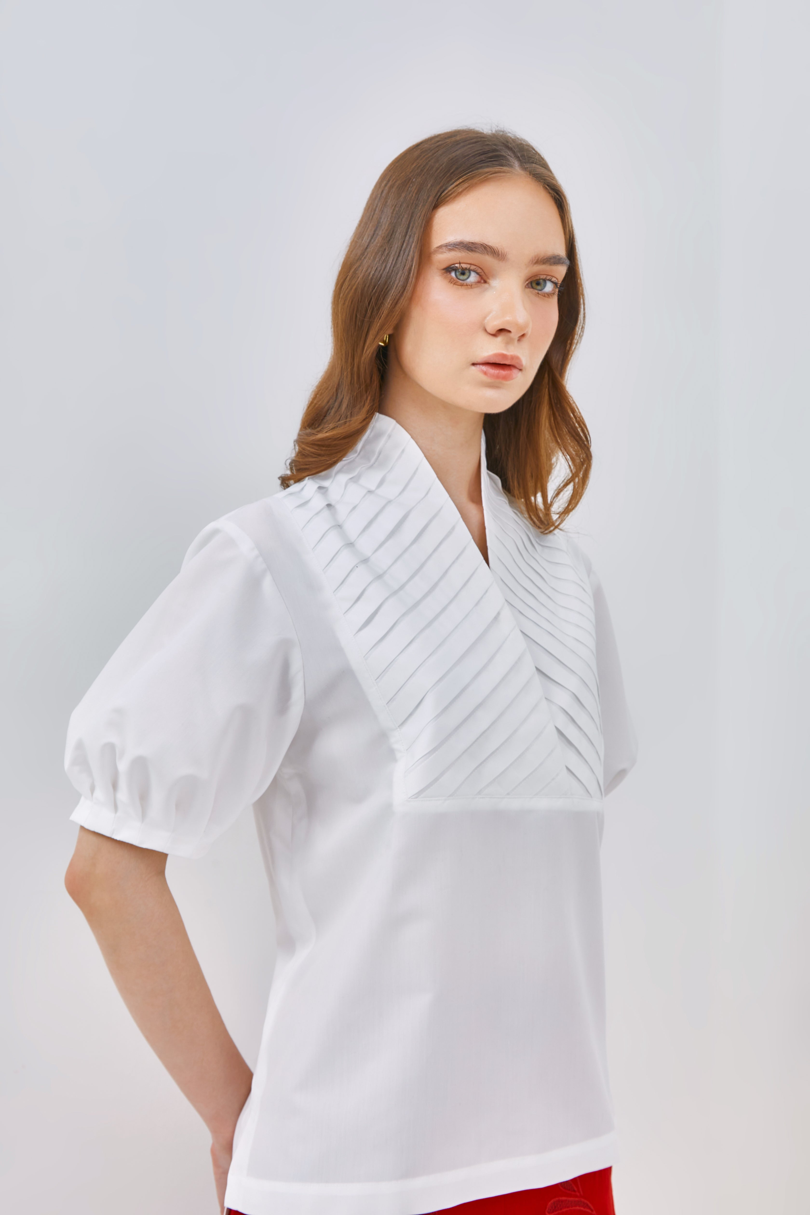 Pleated Top With High Collar – Timeless Sophistication Meets Modern Sustainability