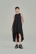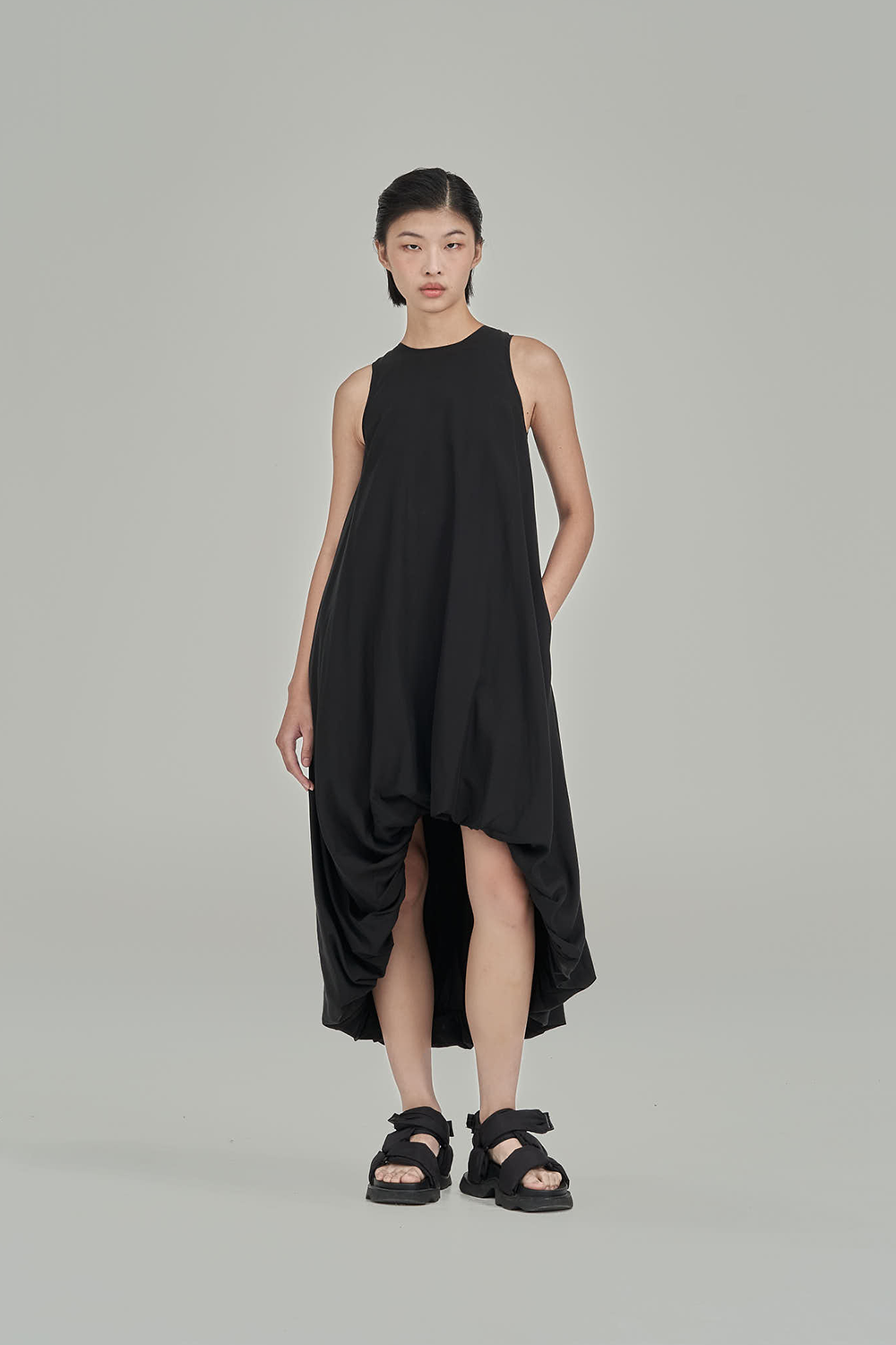 The SABRINAGOH Raquelle Balloon Dress reimagines a classic silhouette with a modern twist, featuring a distinctive hi-low hemline that adds movement and elegance. Crafted from 100% Tencel, this dress offers a luxurious feel and exceptional breathability for all-day comfort.Versatile enough for any occasion, the Raquelle Balloon Dress can be styled with heels for formal gatherings or paired with sandals for a relaxed daytime look. Its timeless design complements a variety of wardrobe staples, making it a valuable addition to your collection.