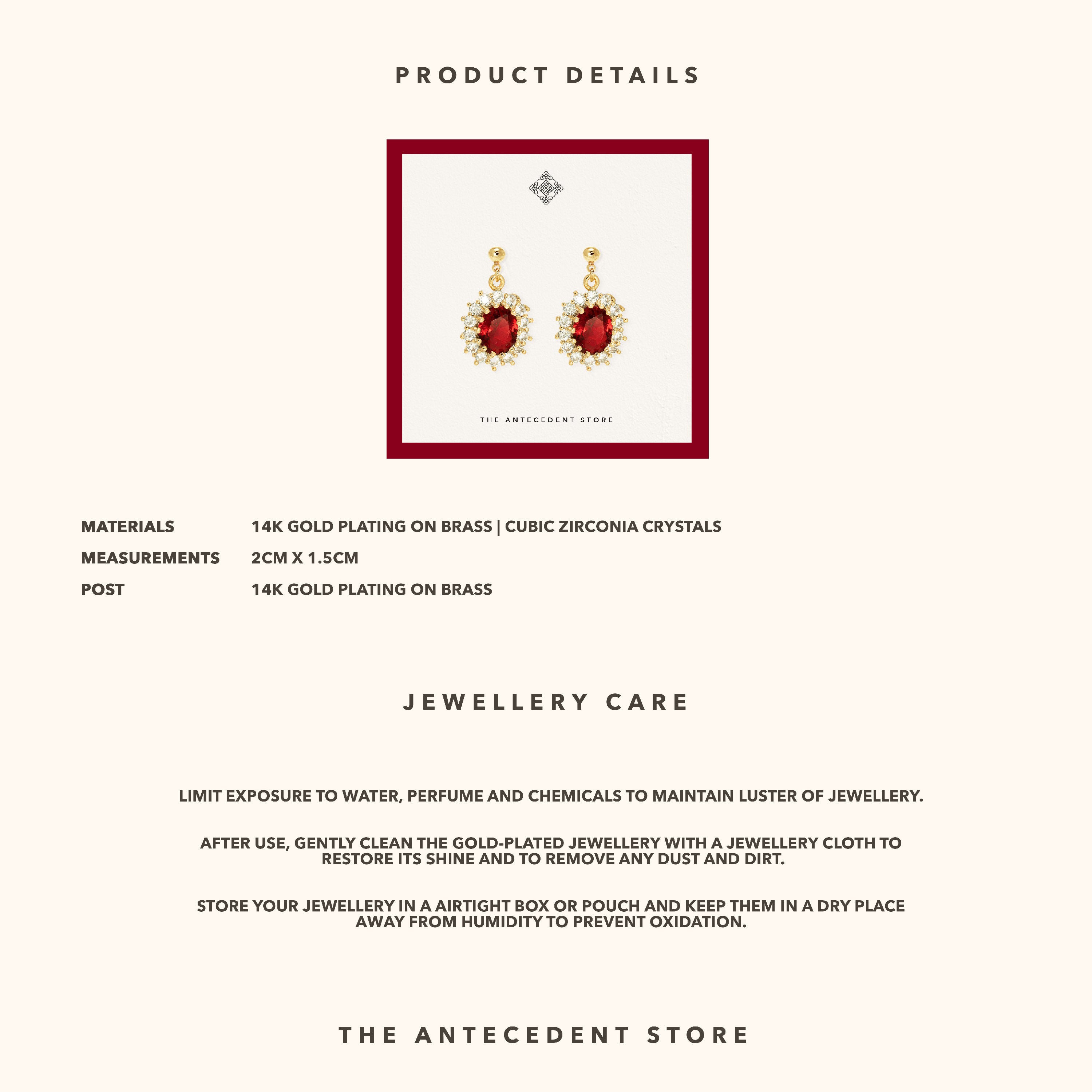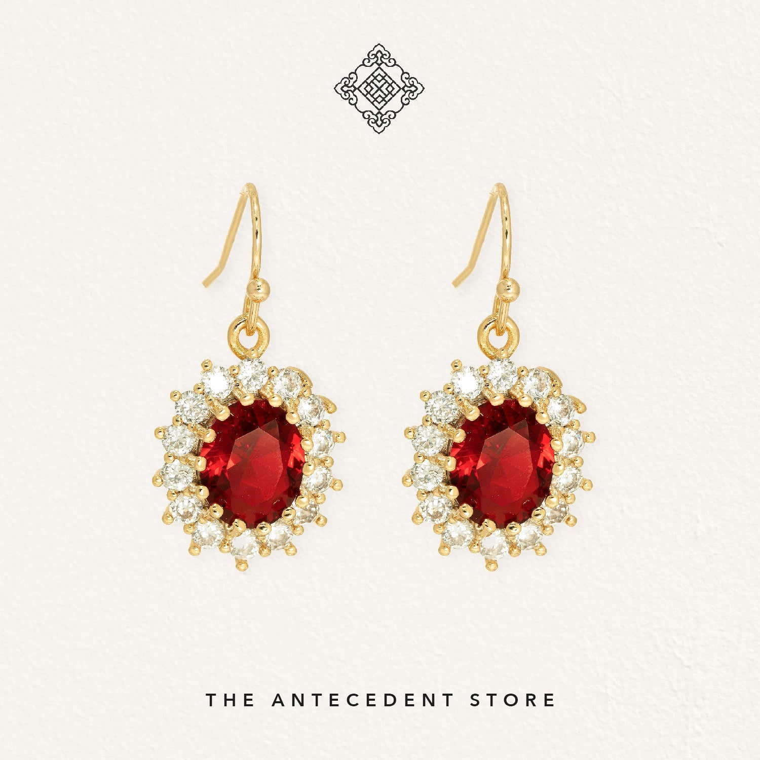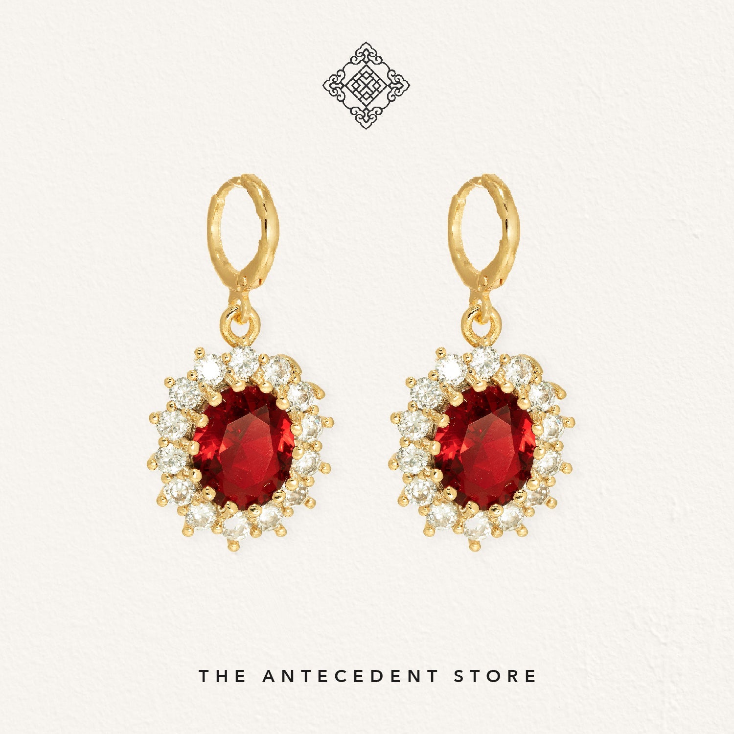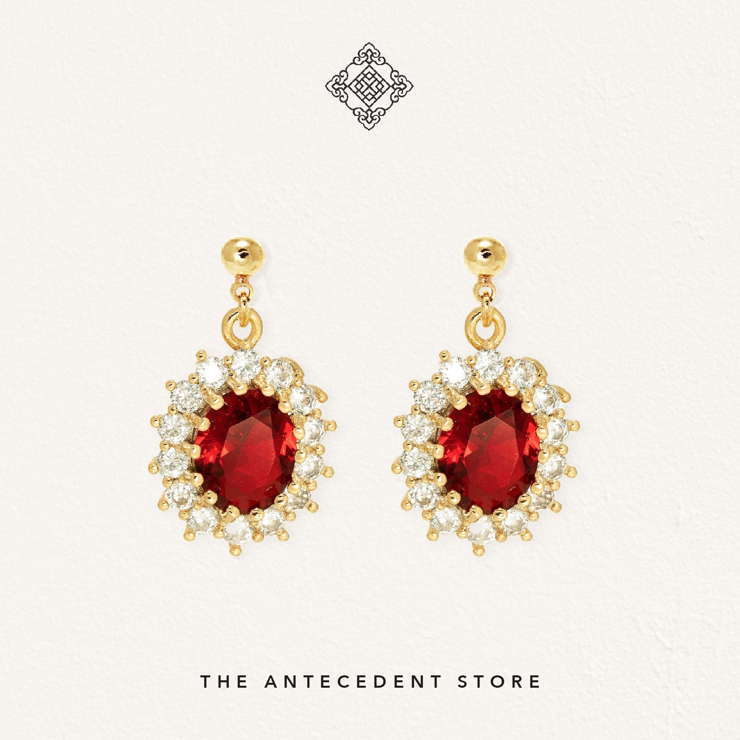 THE ANTECEDENT STORE | Red Ruby Earrings With Cubic Zirconia Crystals