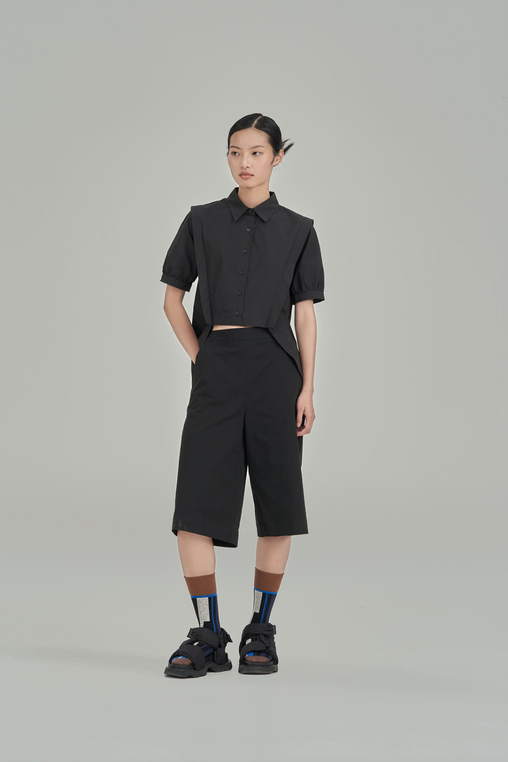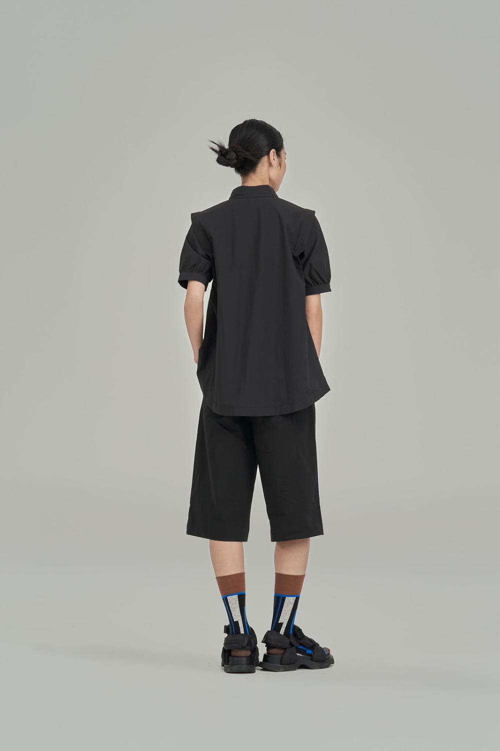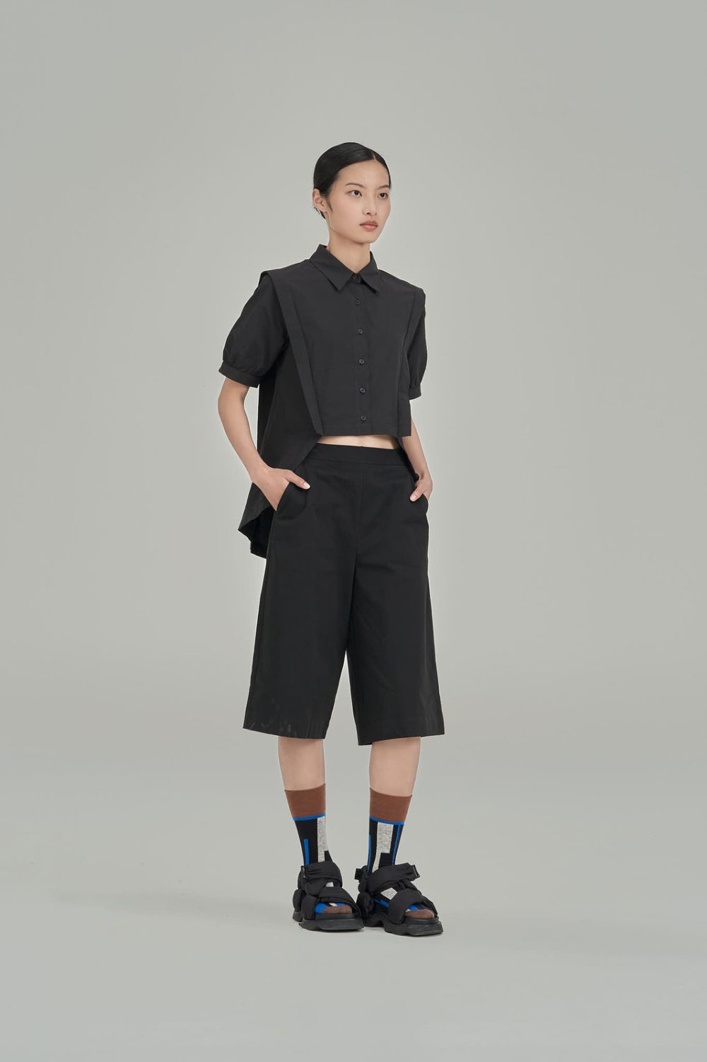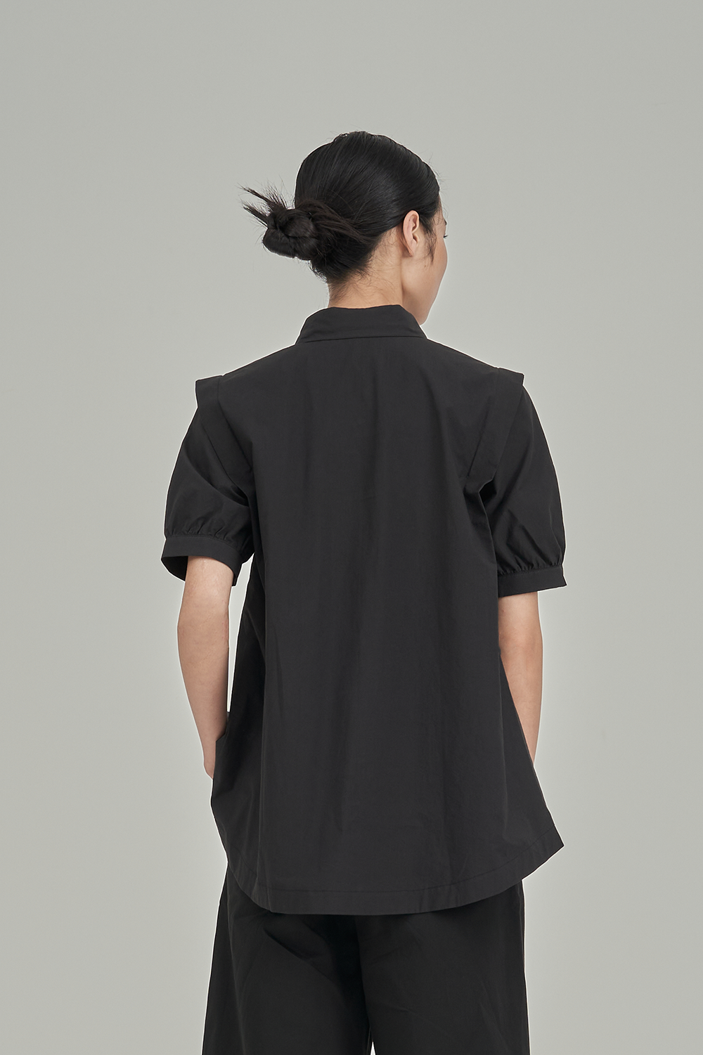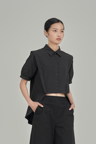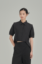 The SABRINAGOH Rhea Shirt redefines modern elegance with its artful blend of structure and ease, crafted from pure 100% cotton. A cropped front and flared back create a striking silhouette, while subtle puffed sleeves ending at the elbow lend a refined, contemporary touch.Effortlessly versatile, the Rhea Shirt transitions from casual outings to special occasions. Pair it with tailored trousers for a polished look or style with denim for relaxed sophistication, making it a seamless addition to your existing wardrobe.