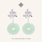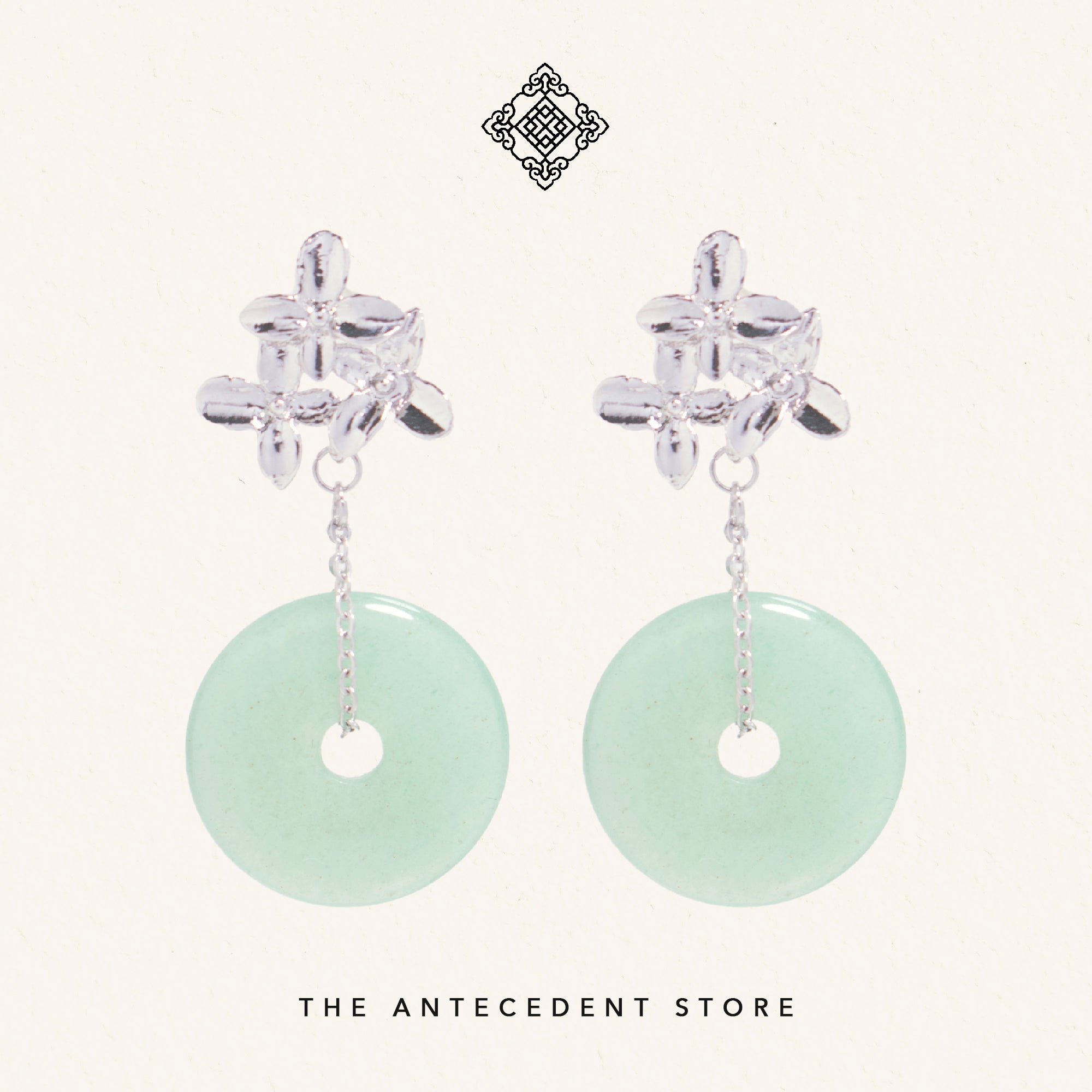 Elevate your jewellery collection with the Silver Floral Green Aventurine Donut Earrings by THE ANTECEDENT STORE, featuring the traditional 平安扣 shape. These earrings blend natural green aventurine stones with delicate floral accents, offering a refined symbol of abundance, safety, and peace.Perfect for both everyday elegance and special occasions, their versatile design complements a range of outfits, from casual ensembles to sophisticated evening wear. They pair beautifully with both modern and classic accessories you already own.