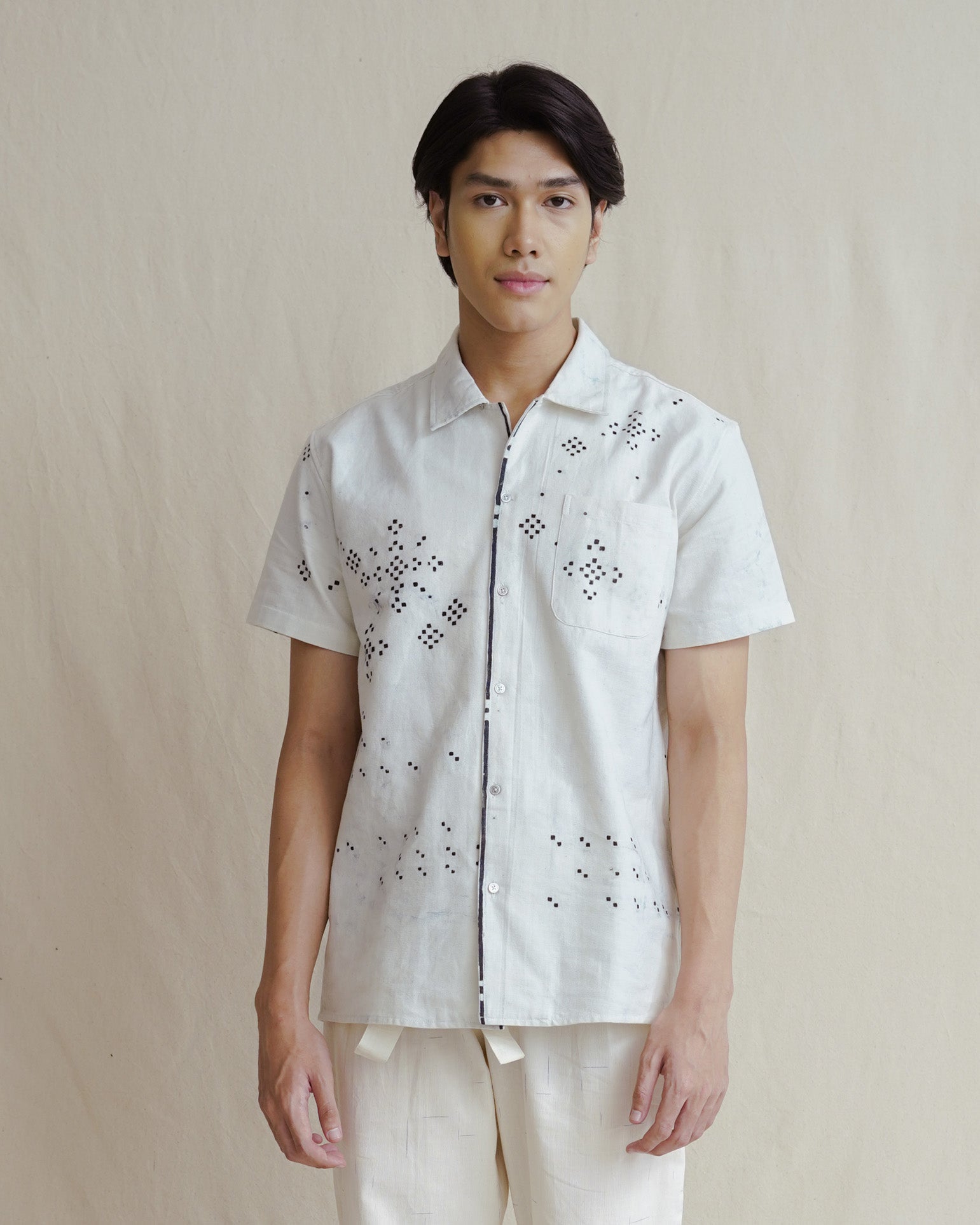 Meticulously handmade in Indonesia, each shirt features mother-of-pearl buttons and recycled polyester threads, ensuring both quality and durability. Gentle care will help preserve its artisanal details and natural dyes.