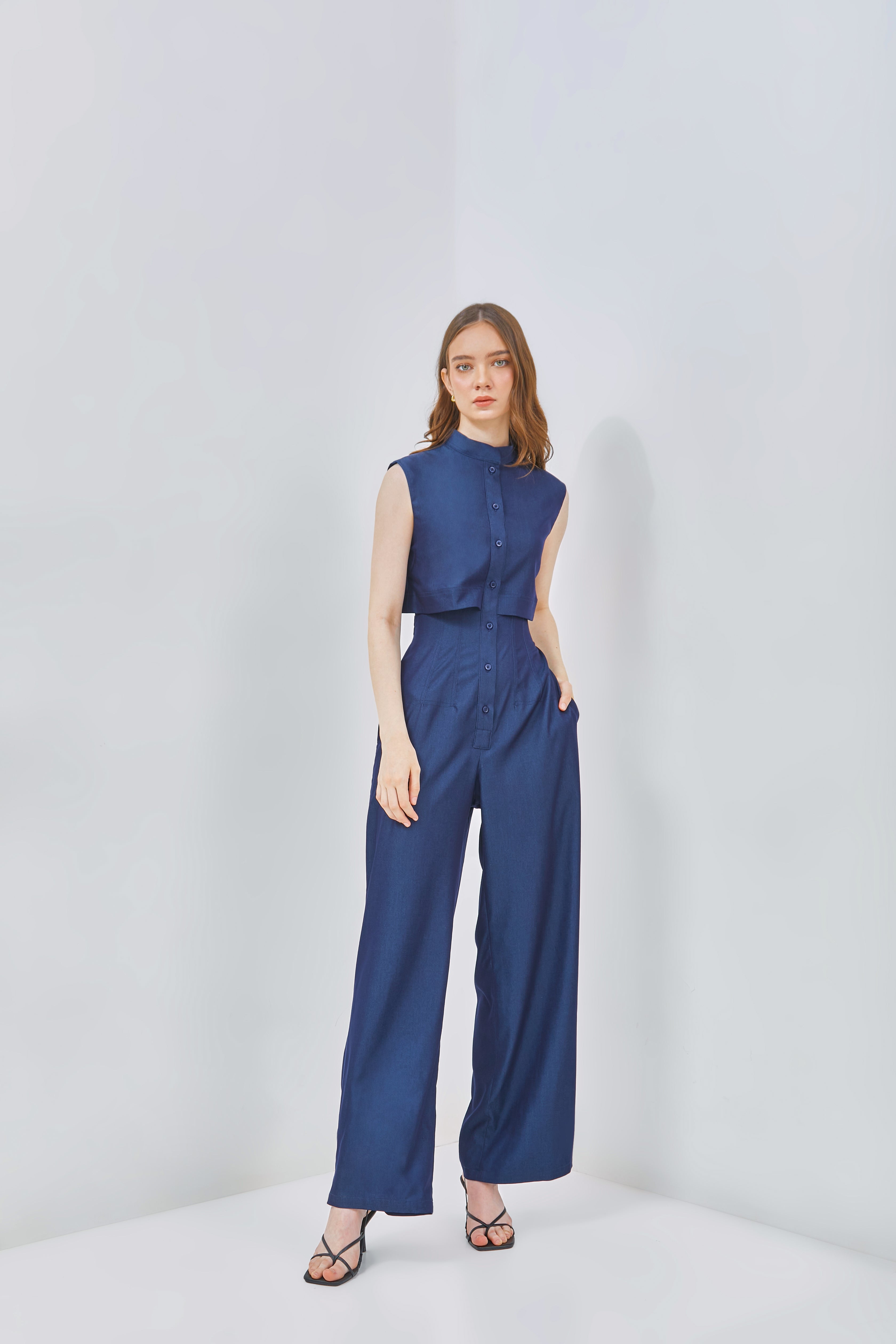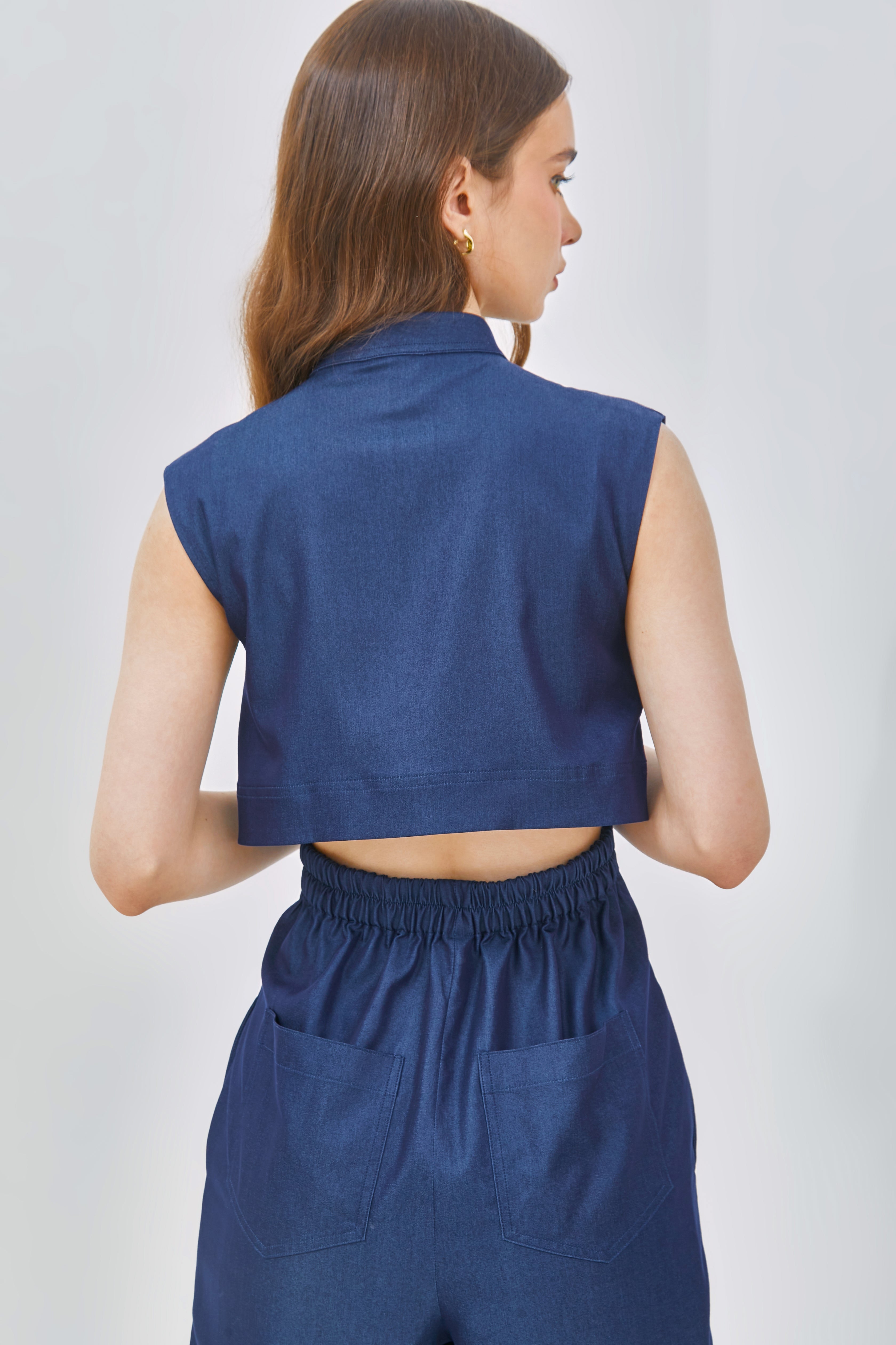 CAELI ECO LUXE | Tencel Denim Romper With Open Back