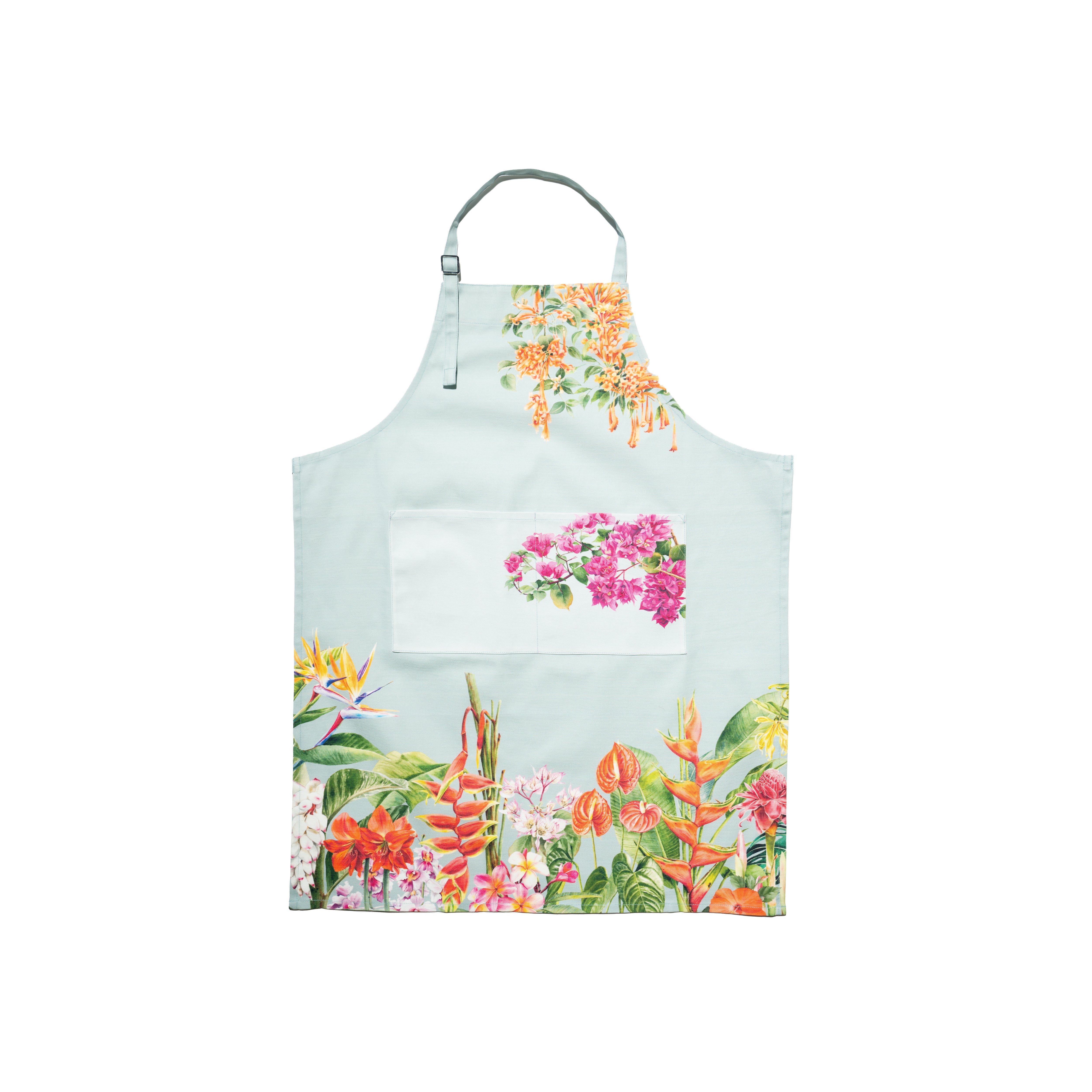 Bring a touch of island elegance to your kitchen with the SINGLAPA Tropical Flowers Apron. Crafted from premium canvas cotton, this apron features vibrant, hand-painted prints of Bougainvillea, Hibiscus, Strelitzia, and more, capturing the lush beauty of tropical blooms.Perfect for both culinary enthusiasts and casual cooks, this apron transitions seamlessly from indoor meal prep to outdoor barbecues. Its lively design complements a variety of kitchen styles and pairs beautifully with your favourite kitchen accessories.